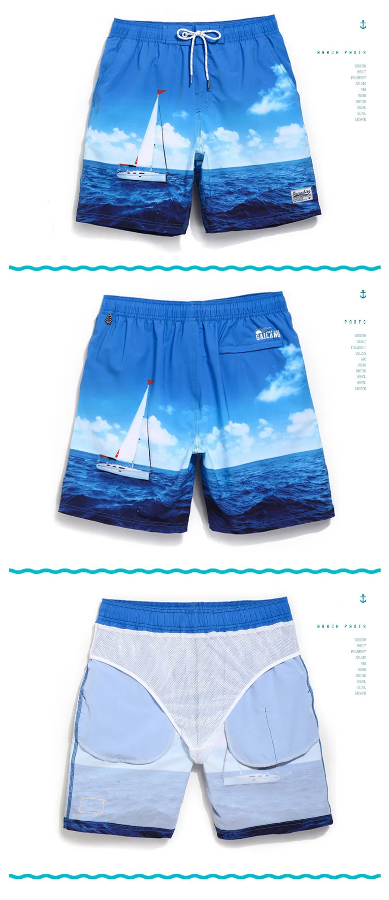 Gailang Brand Men’s Beach Shorts Board Boxer Trunks Men Bermuda Swimwear Swimsuits Boxers Plus Size Quick Dry Trunks