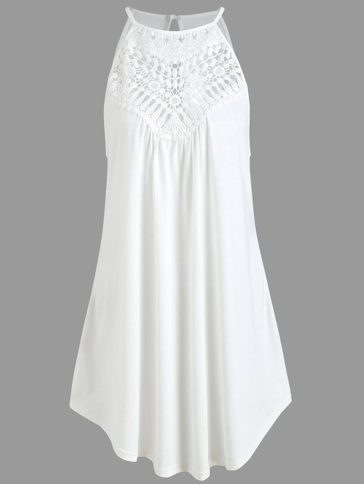 Gamiss Crochet Panel Helter Neck Swing White Sexy Tank Top Long Tank Top 2018 Summer Tops Women Haut Femme Ladies Clothing