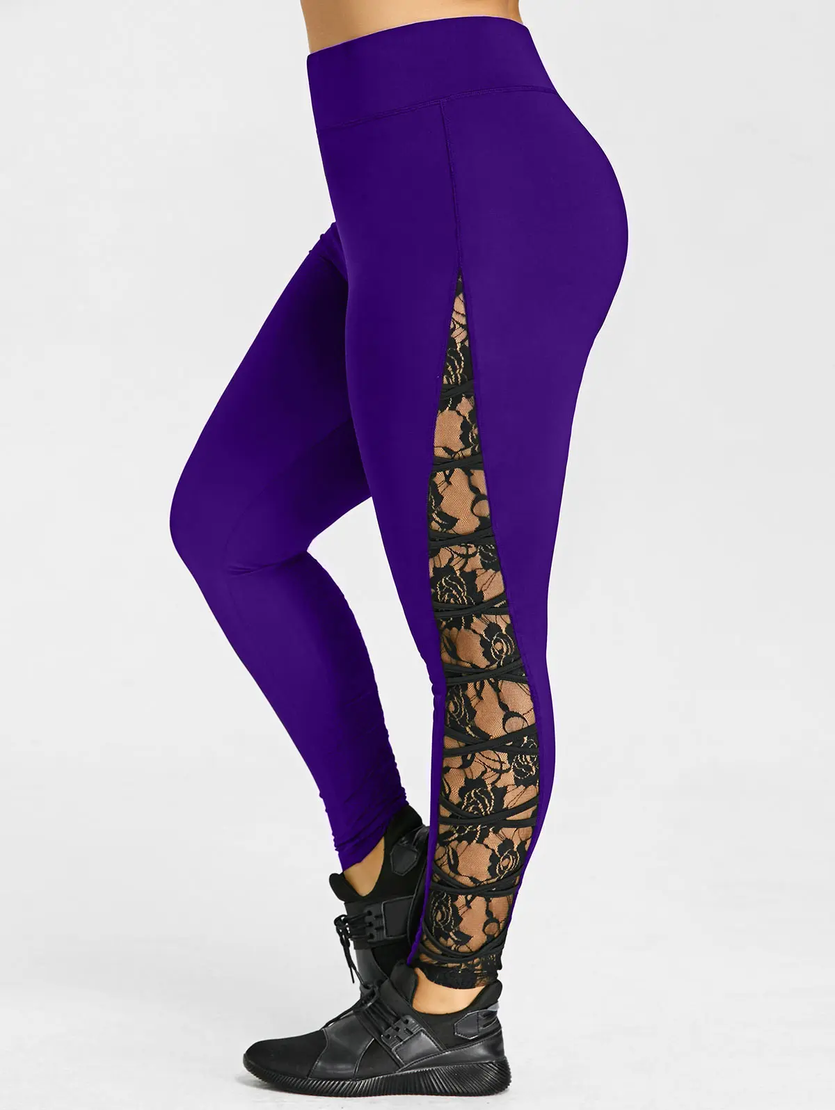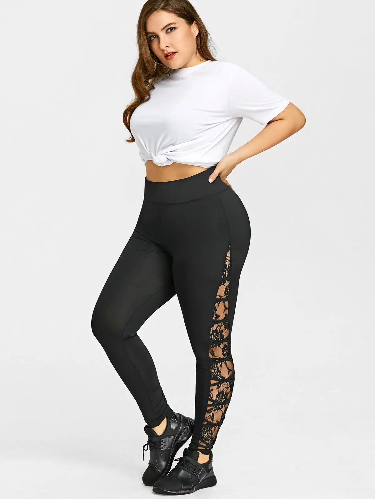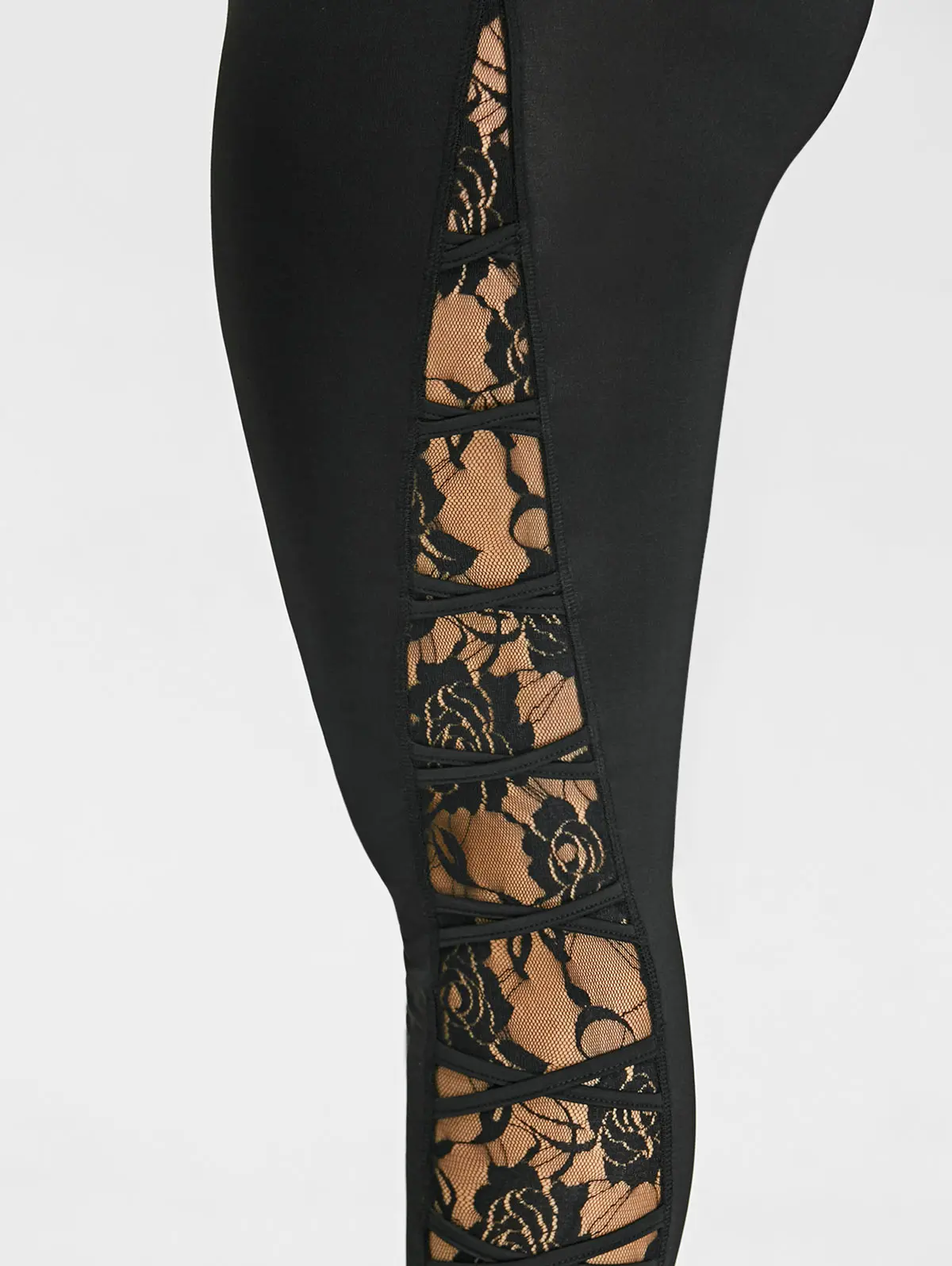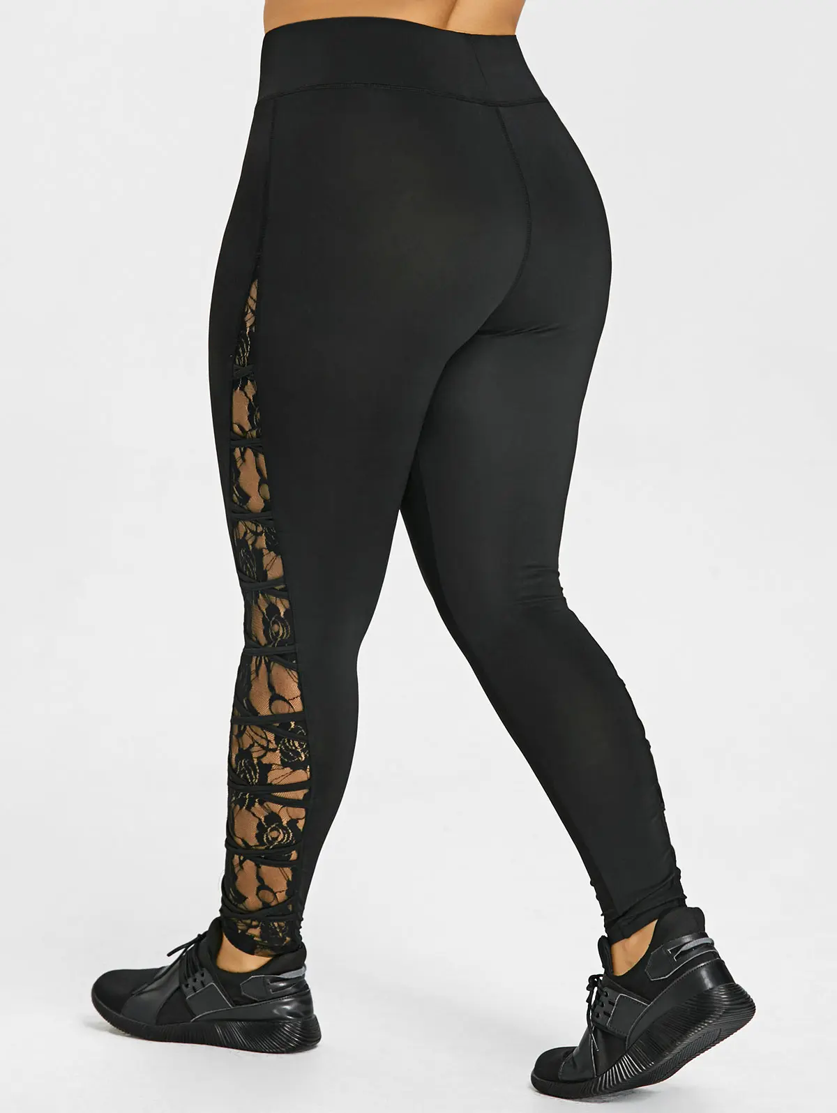 Gamiss High Elastic Waist Leggings Women Sexy Criss Cross Plus Size Lace Panel Leggings Female Workout 2018 Summer Trousers 5XL