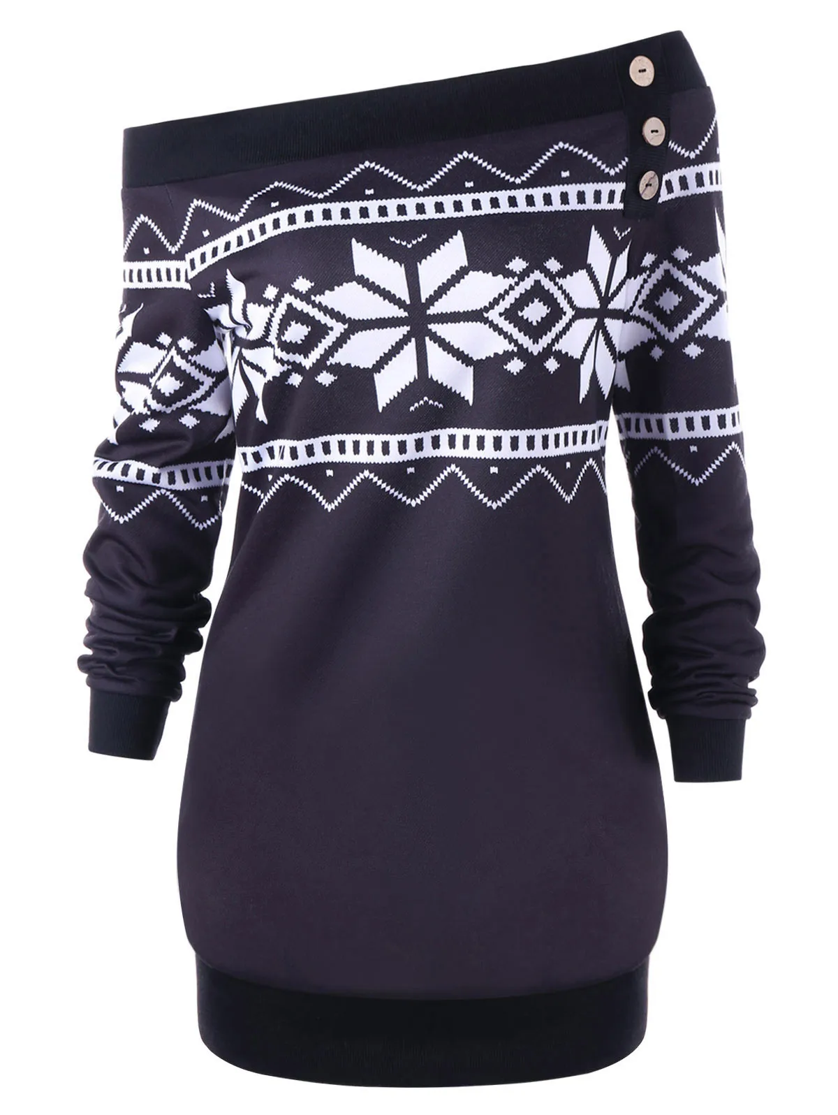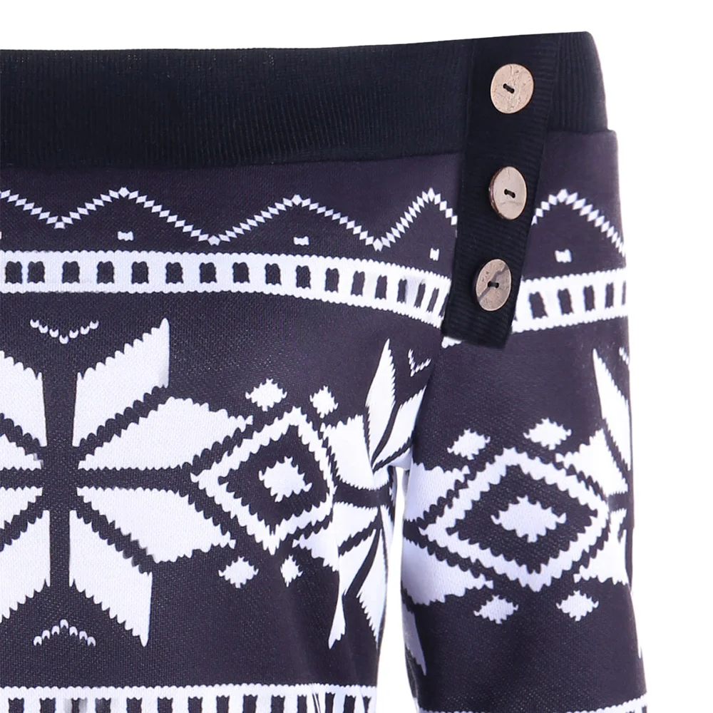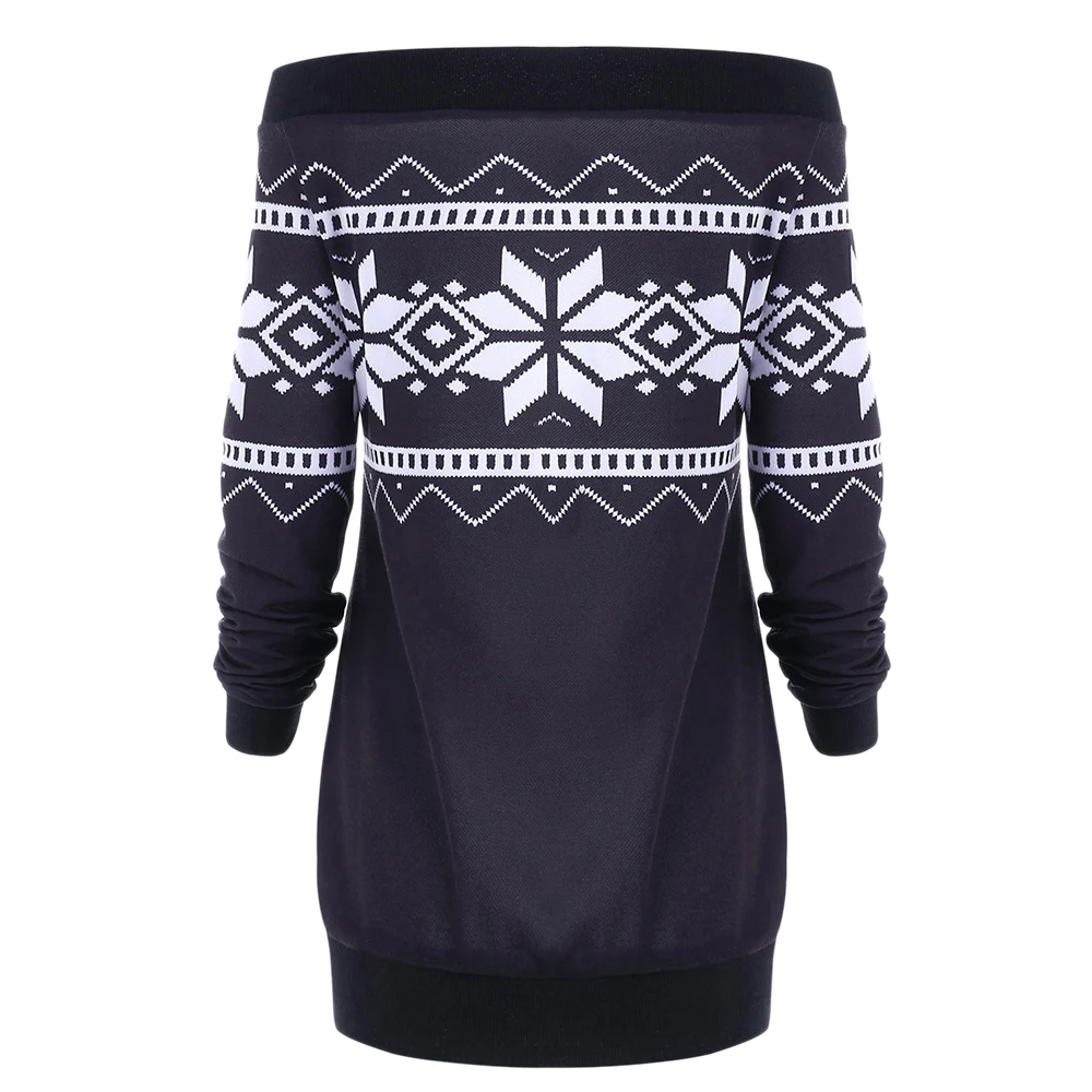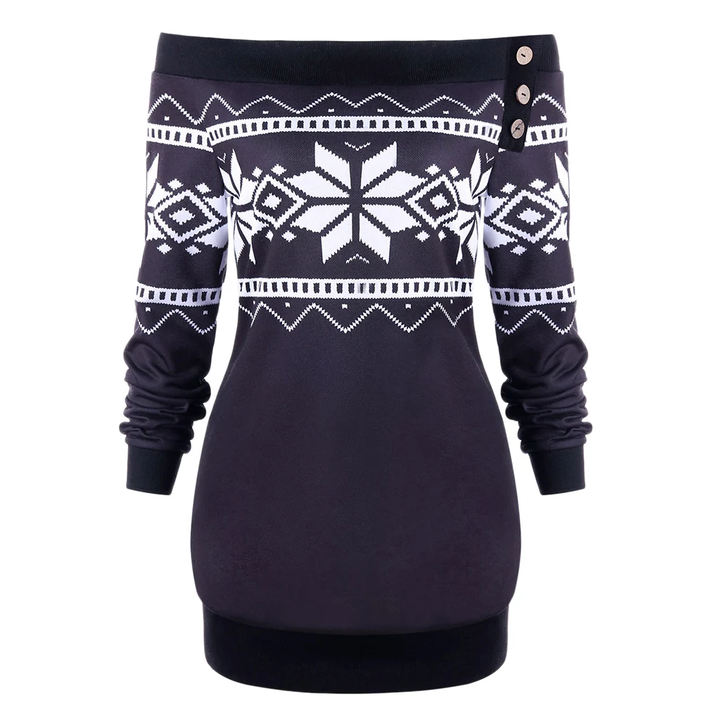 Gamiss Women Clothing Plus Size XL-5XL Skew Neck Snowflake Geometric Pullover Autumn Sweatshirt Casual Long Sleeve Female Tops