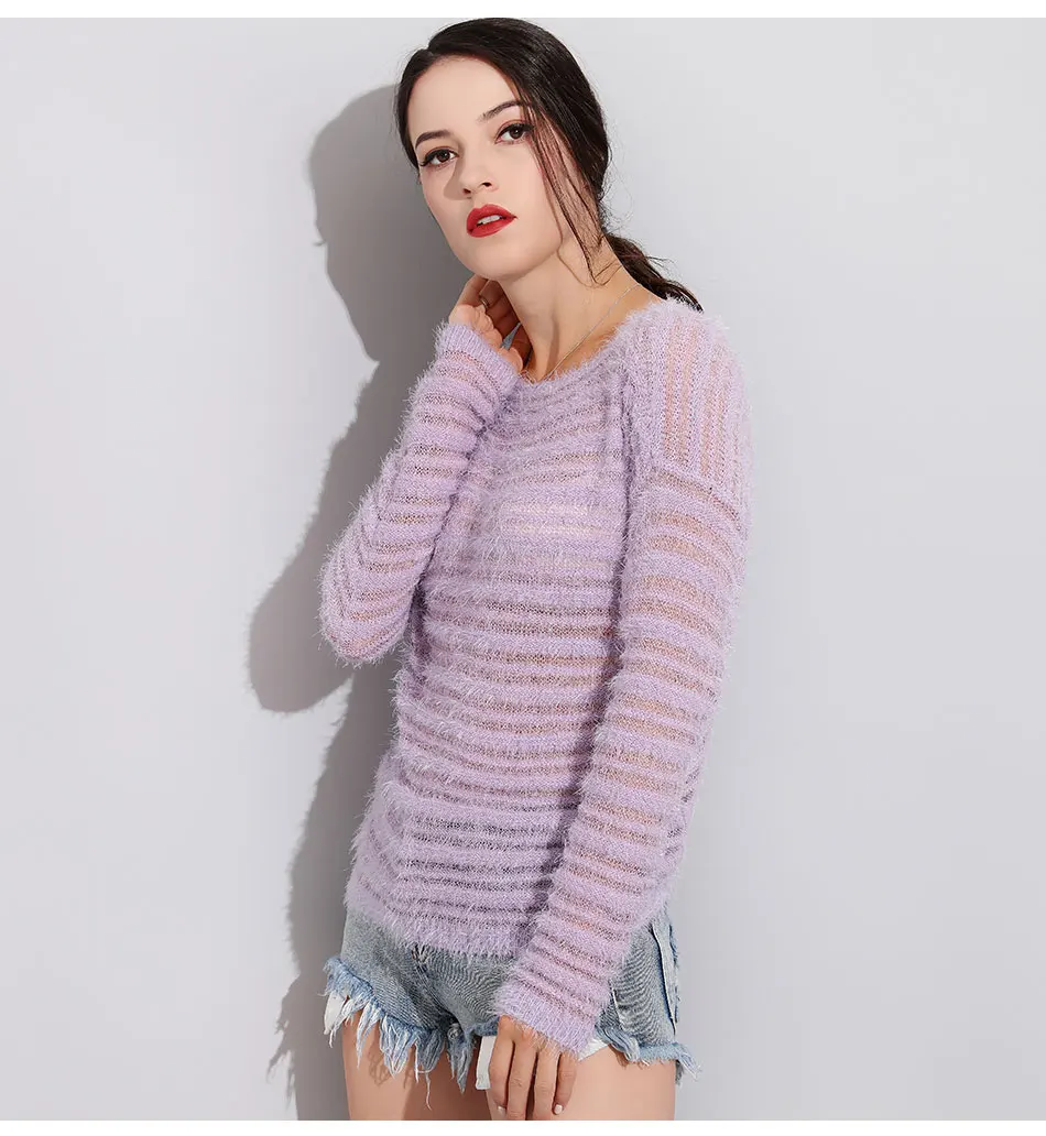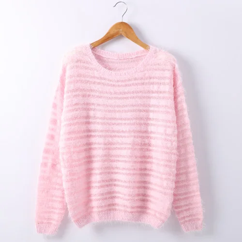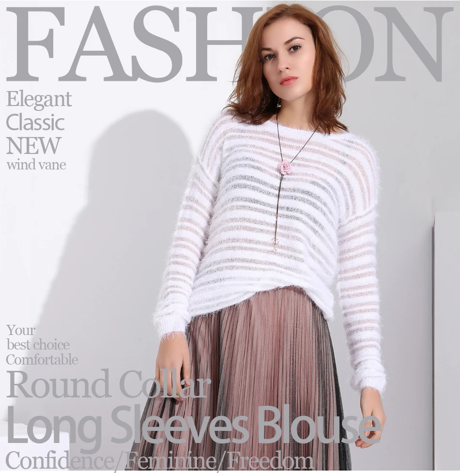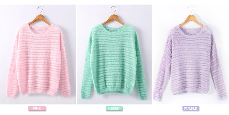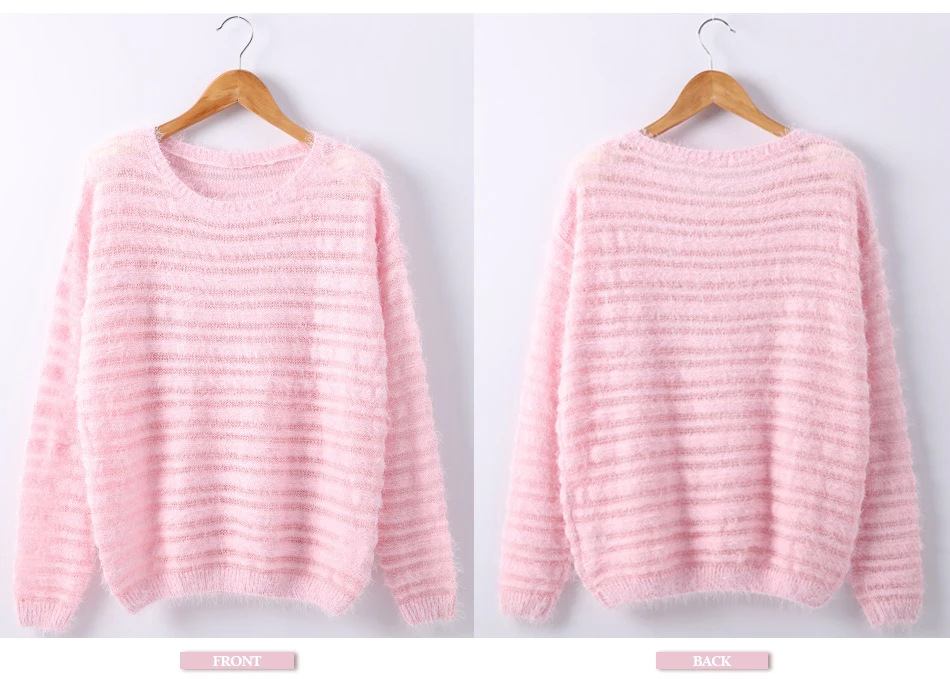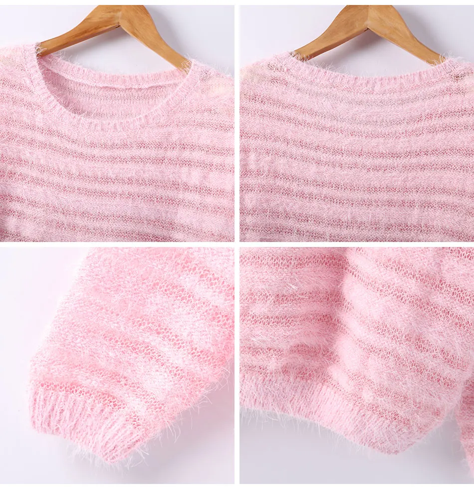 Garemay Mohair Pullover Sweater Woman Knitted Sweaters Long Sleeve Loose O-Neck Hedging Female Sweater Pullover Pull Femme