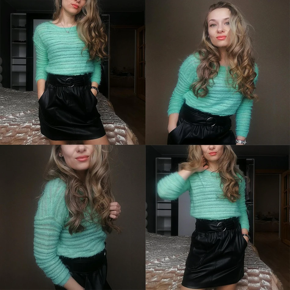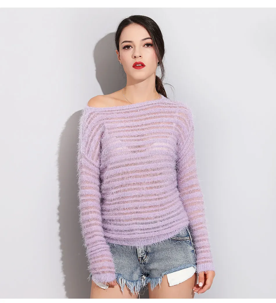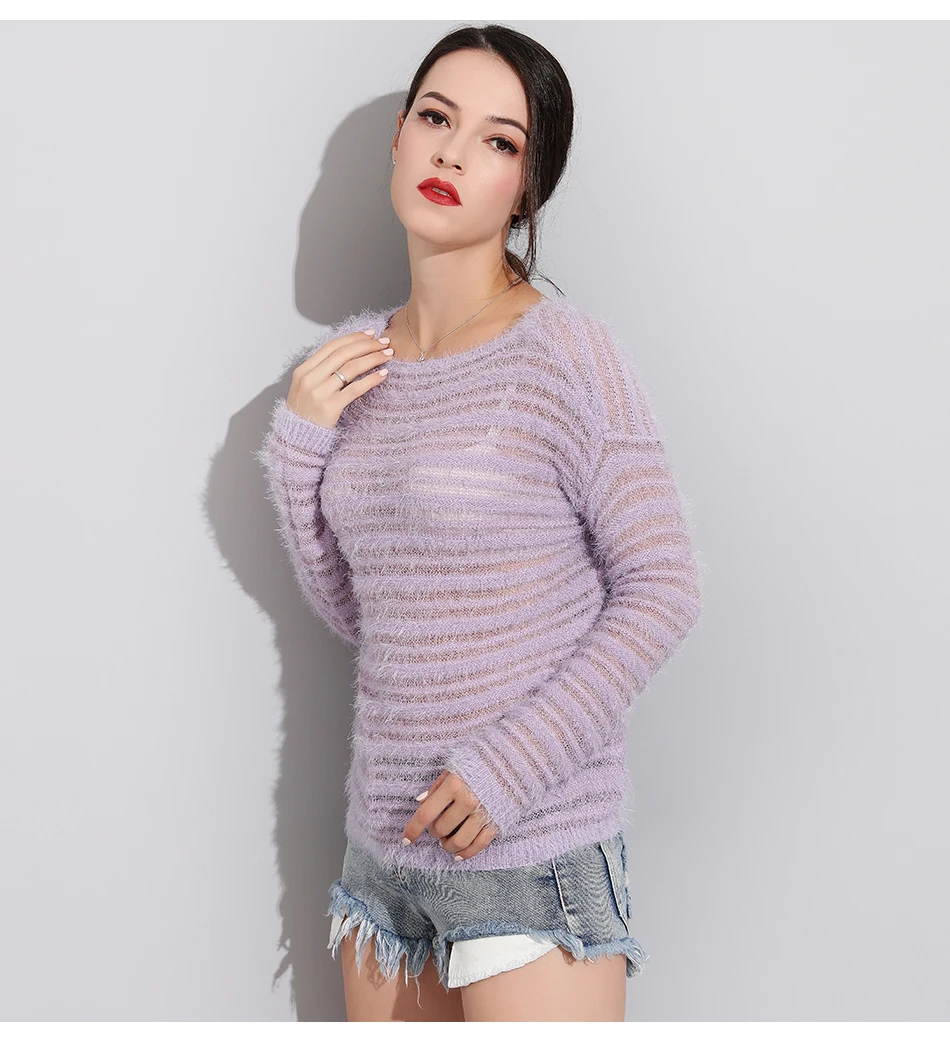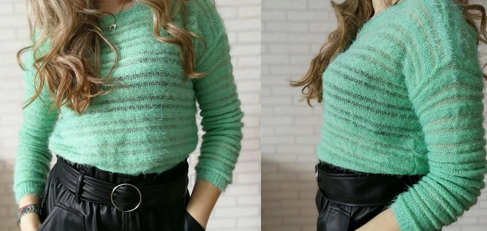 Garemay Mohair Pullover Sweater Woman Knitted Sweaters Long Sleeve Loose O-Neck Hedging Female Sweater Pullover Pull Femme