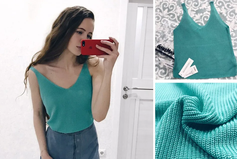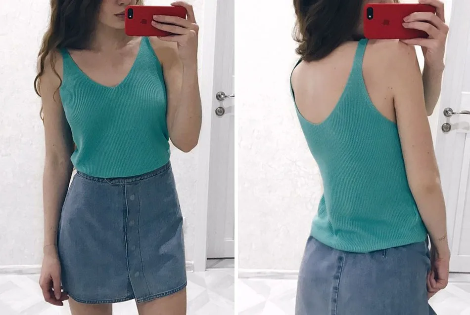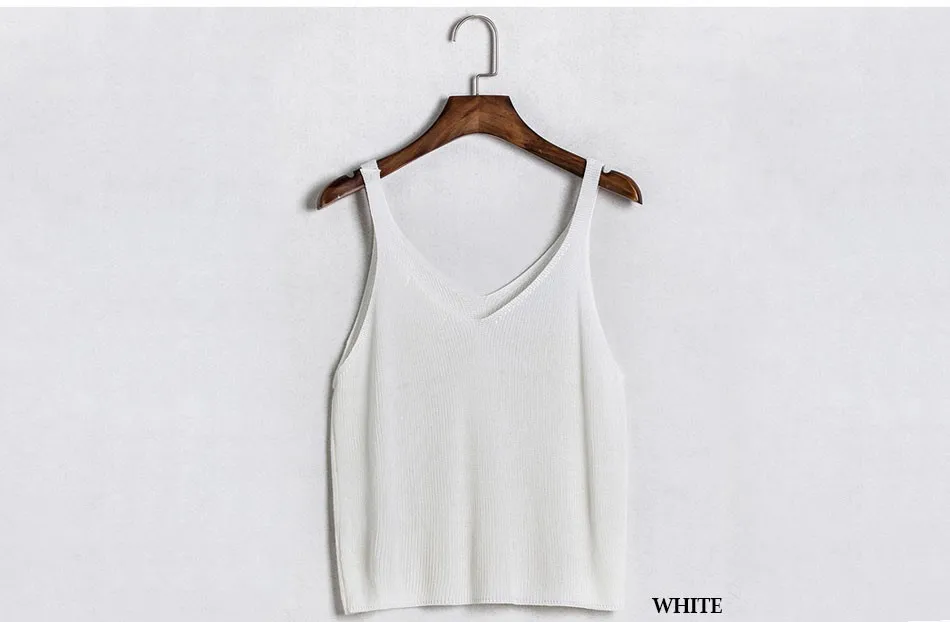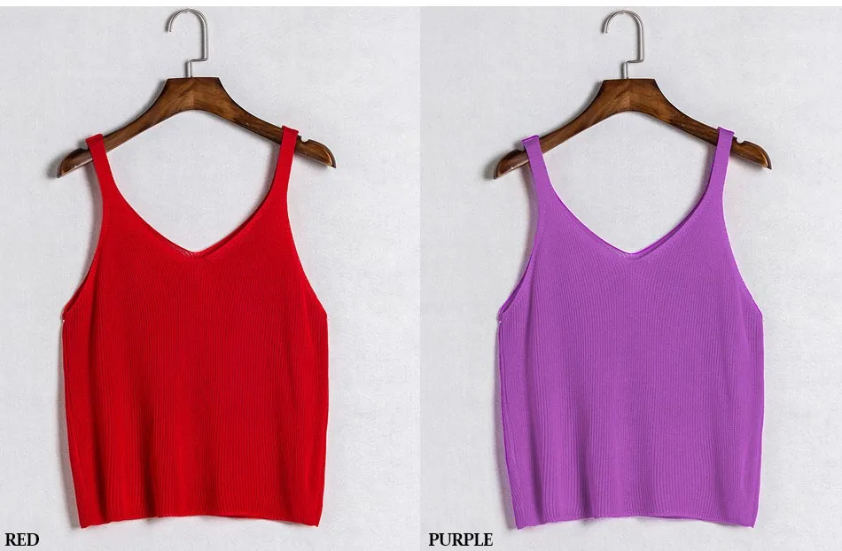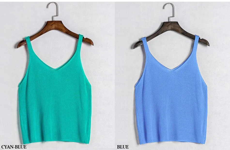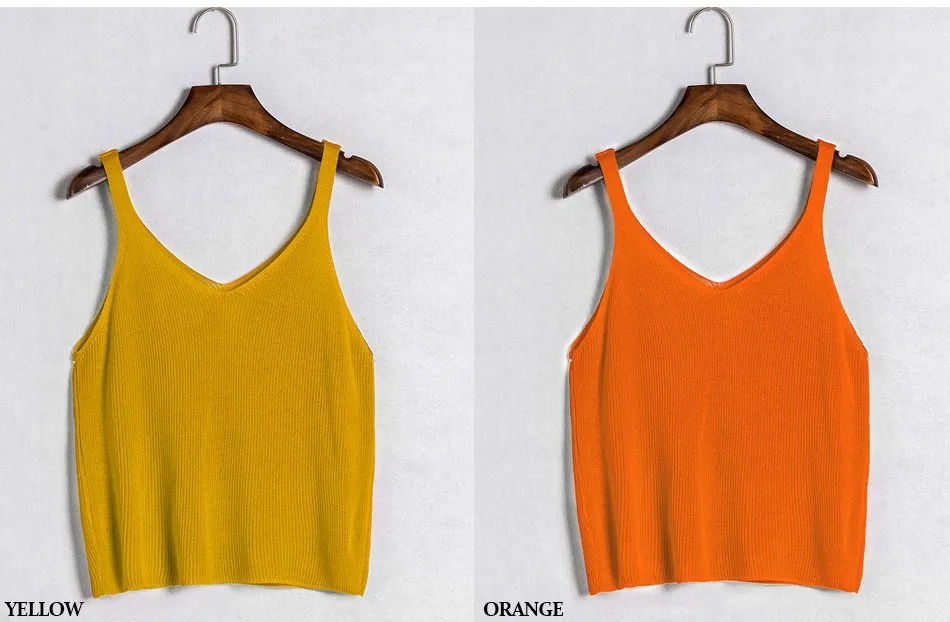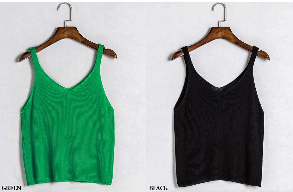 GAREMAY Tank Tops Women Summer Sexy Knitted Top V neck Canotta Donna Cami Casual Cropped Halter Top Short Camisetas Mujer 1636