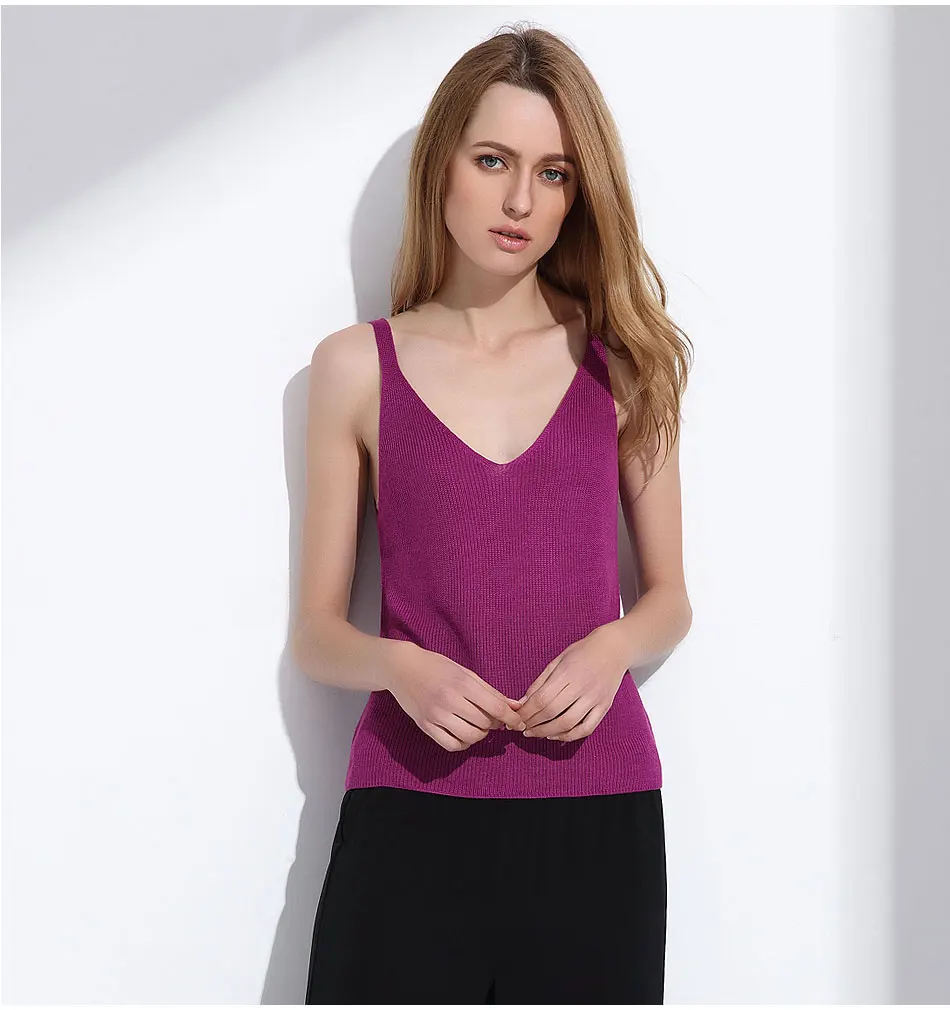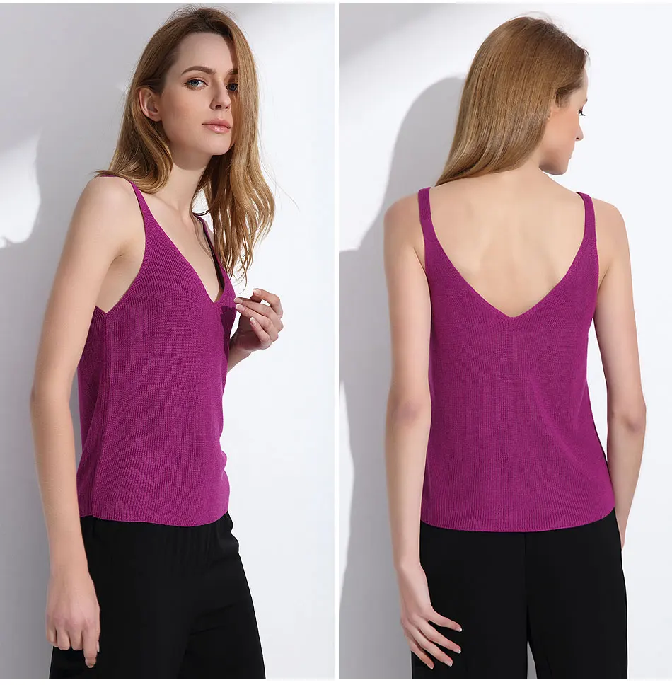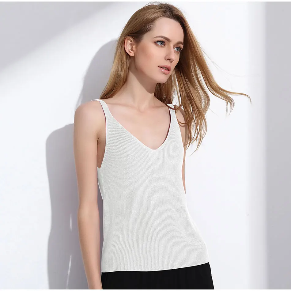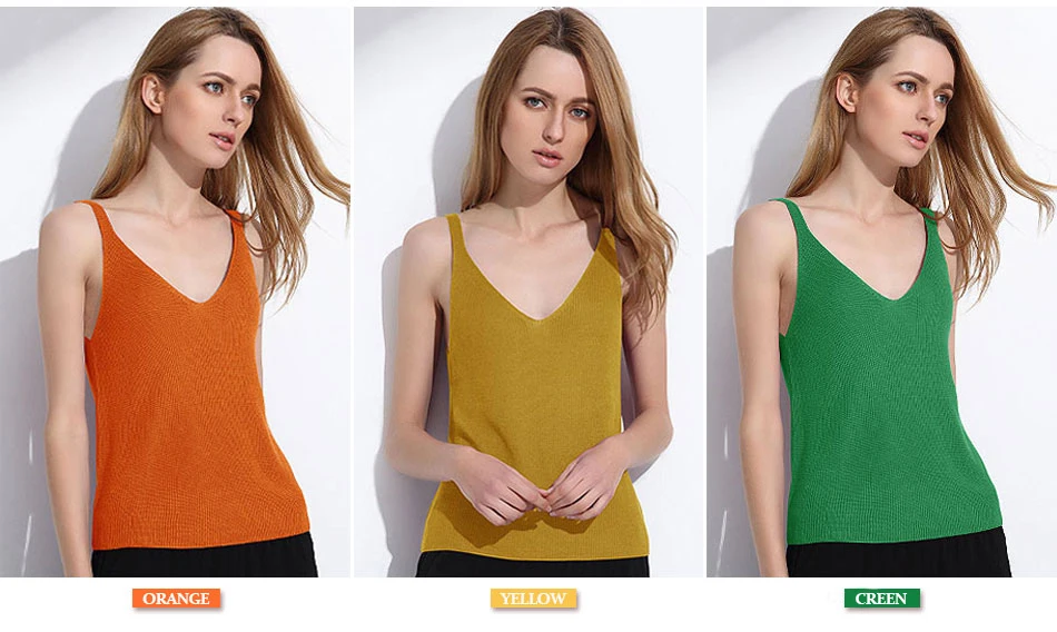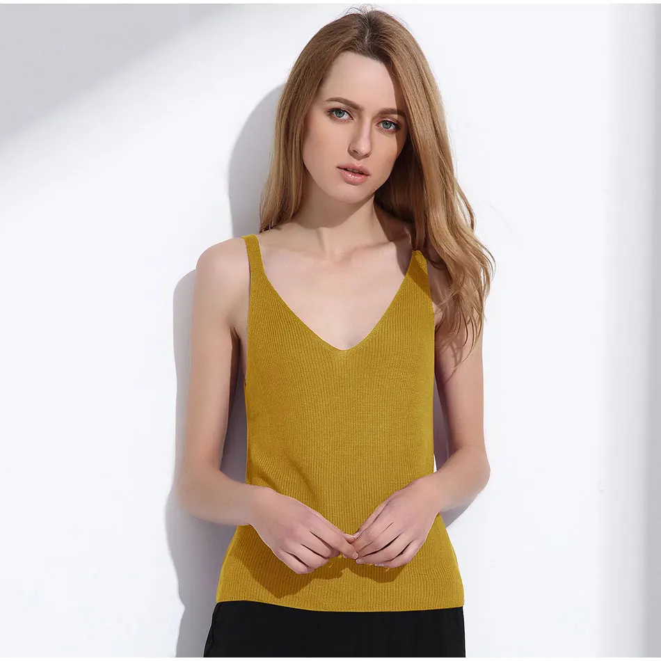 GAREMAY Tank Tops Women Summer Sexy Knitted Top V neck Canotta Donna Cami Casual Cropped Halter Top Short Camisetas Mujer 1636