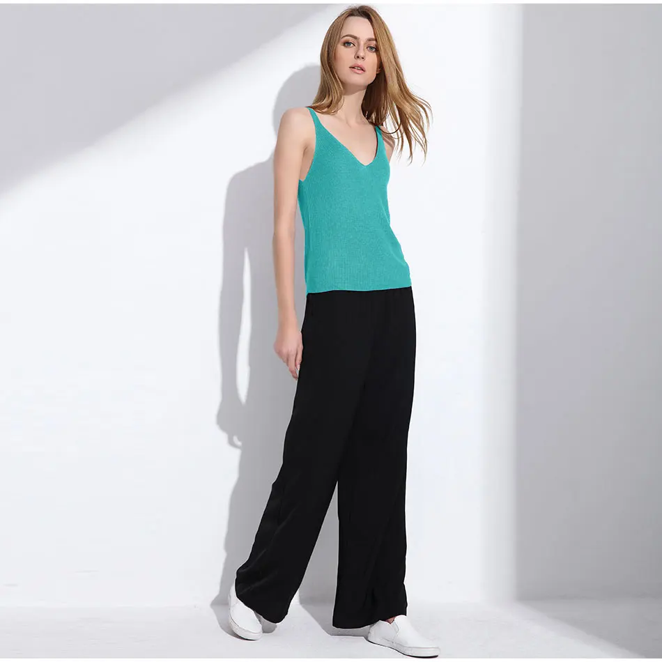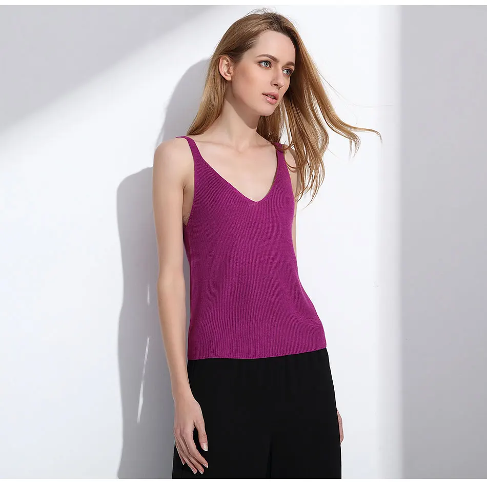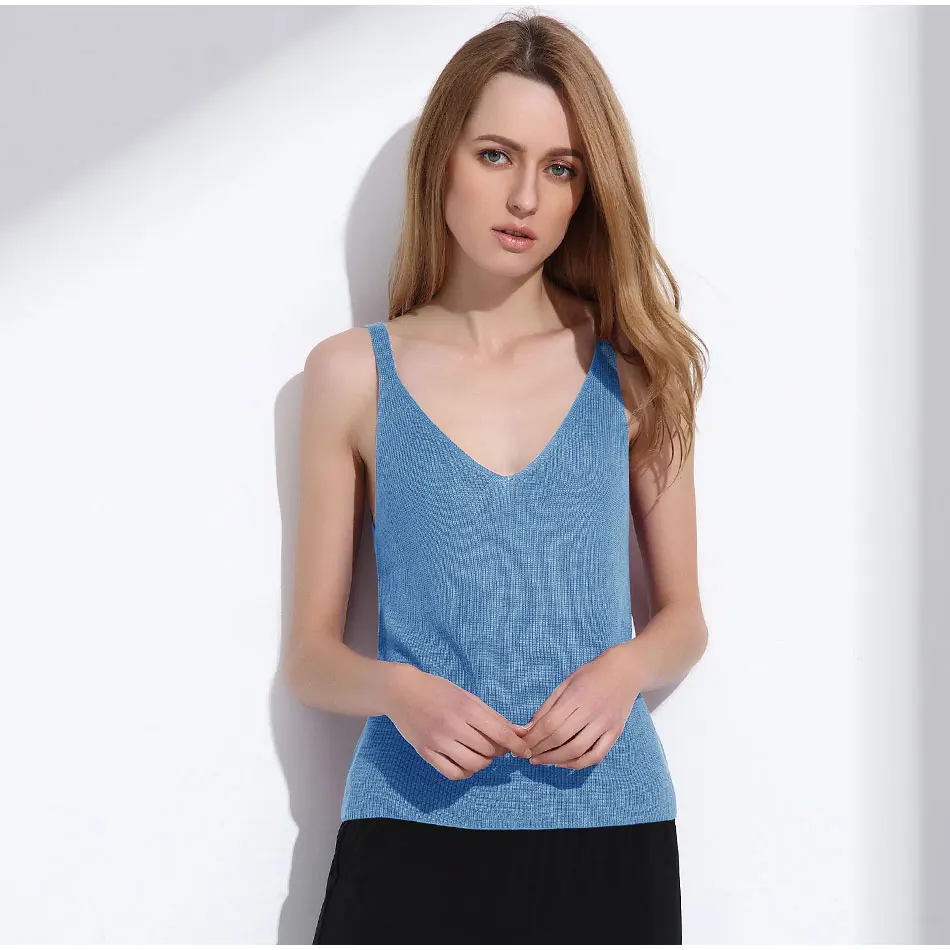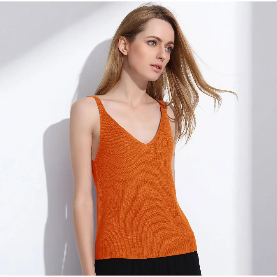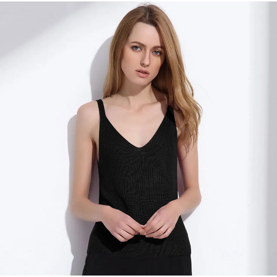 GAREMAY Tank Tops Women Summer Sexy Knitted Top V neck Canotta Donna Cami Casual Cropped Halter Top Short Camisetas Mujer 1636