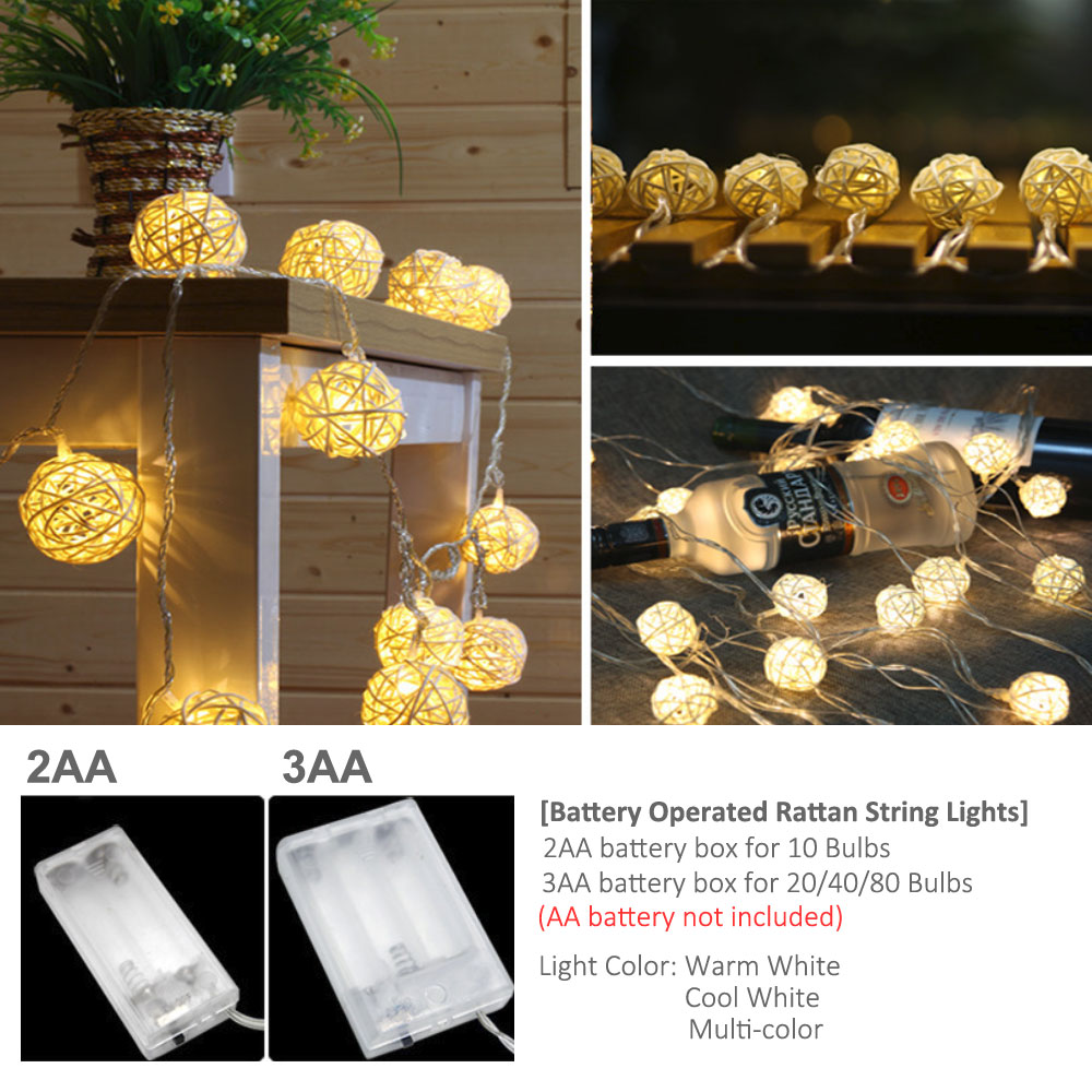Garland LED Fairy String Lights Battery Operated Xmas Wedding Party Decor Lamp Rattan Sepak Takraw Balls LED Christmas Lights