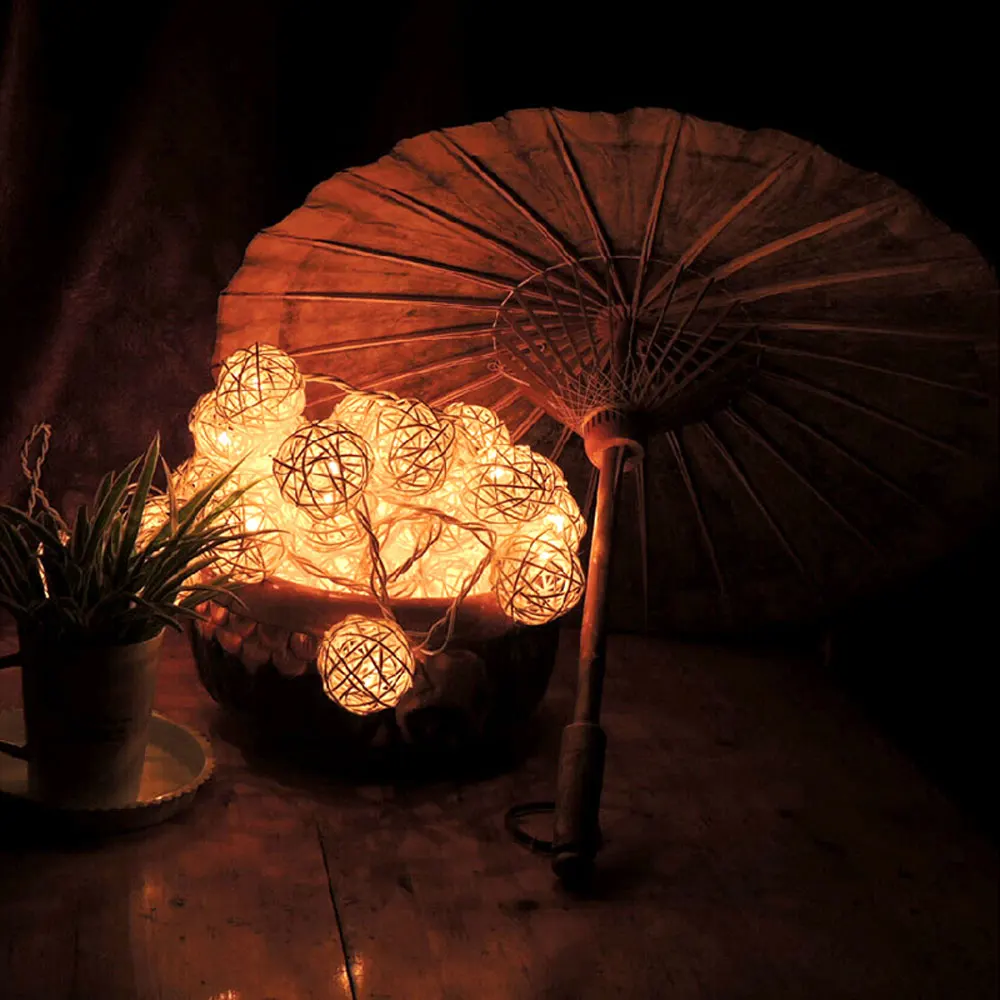 Garland LED Fairy String Lights Battery Operated Xmas Wedding Party Decor Lamp Rattan Sepak Takraw Balls LED Christmas Lights