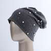 Geebro Brand Women’s Beanie Hat Casual Polyester Shine Pearls&Rhinestones Beanies For Women Skull Beanie Hats Bonnet For Female