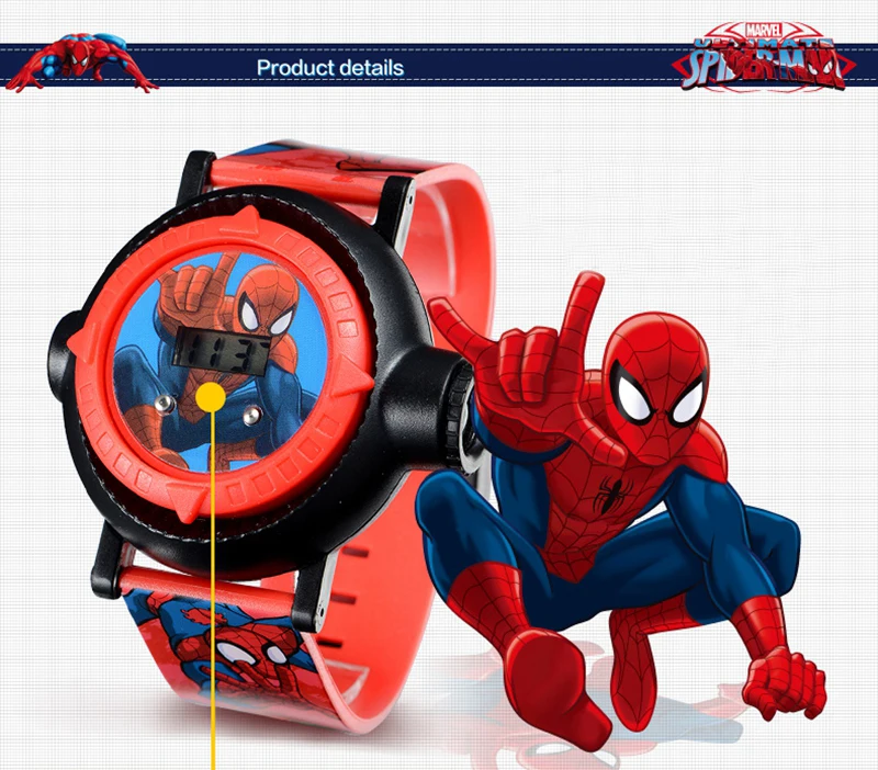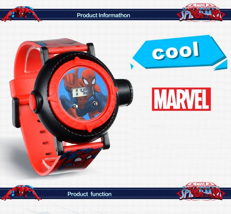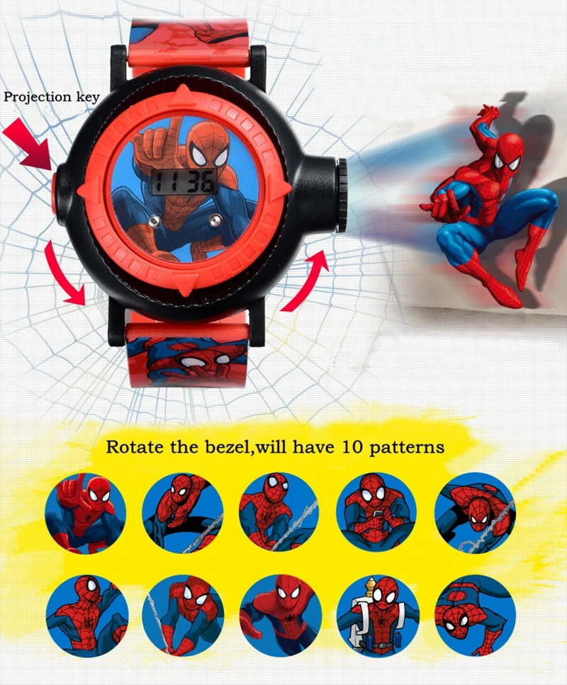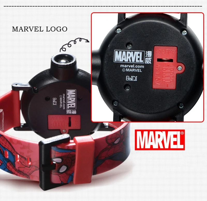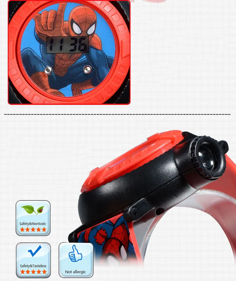 Genuine MARVEL Spider Man Projection LED Digital Watches Children Cool Cartoon Watch Kid Birthday Gift Disney Boy Girl Clock Toy