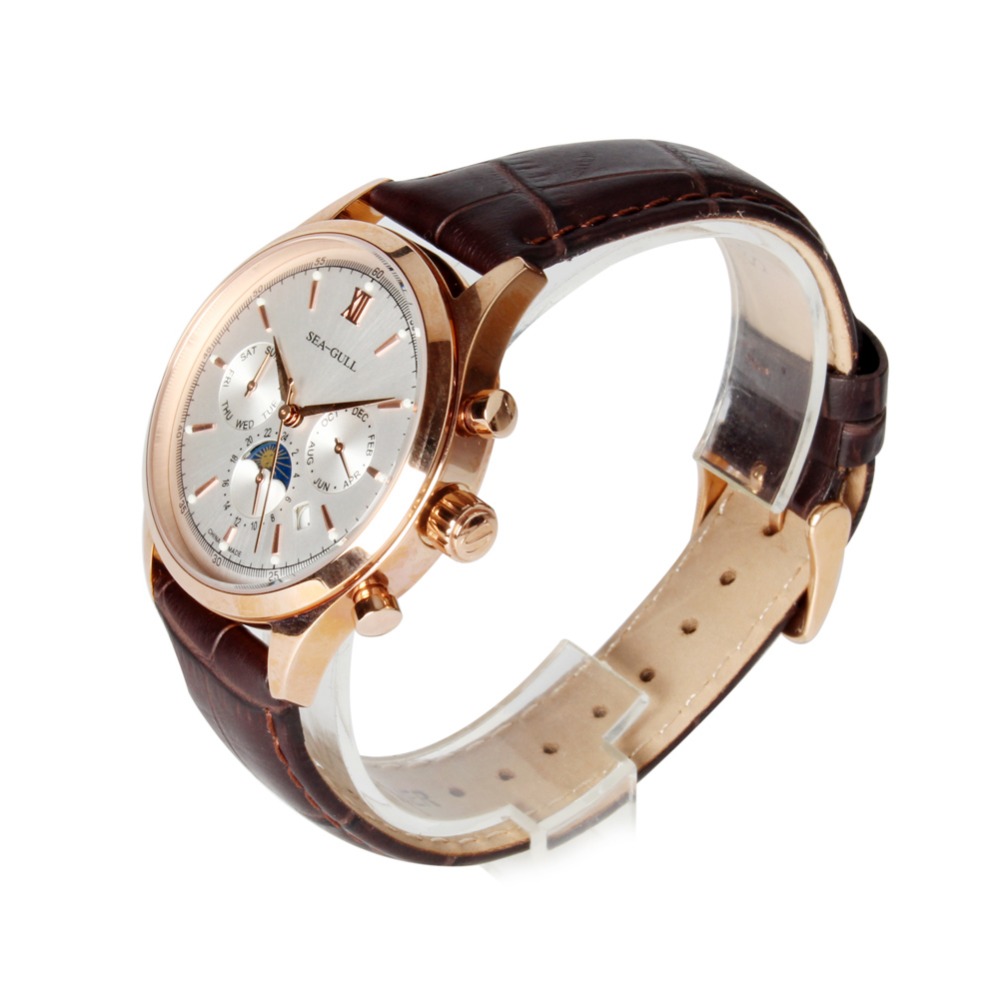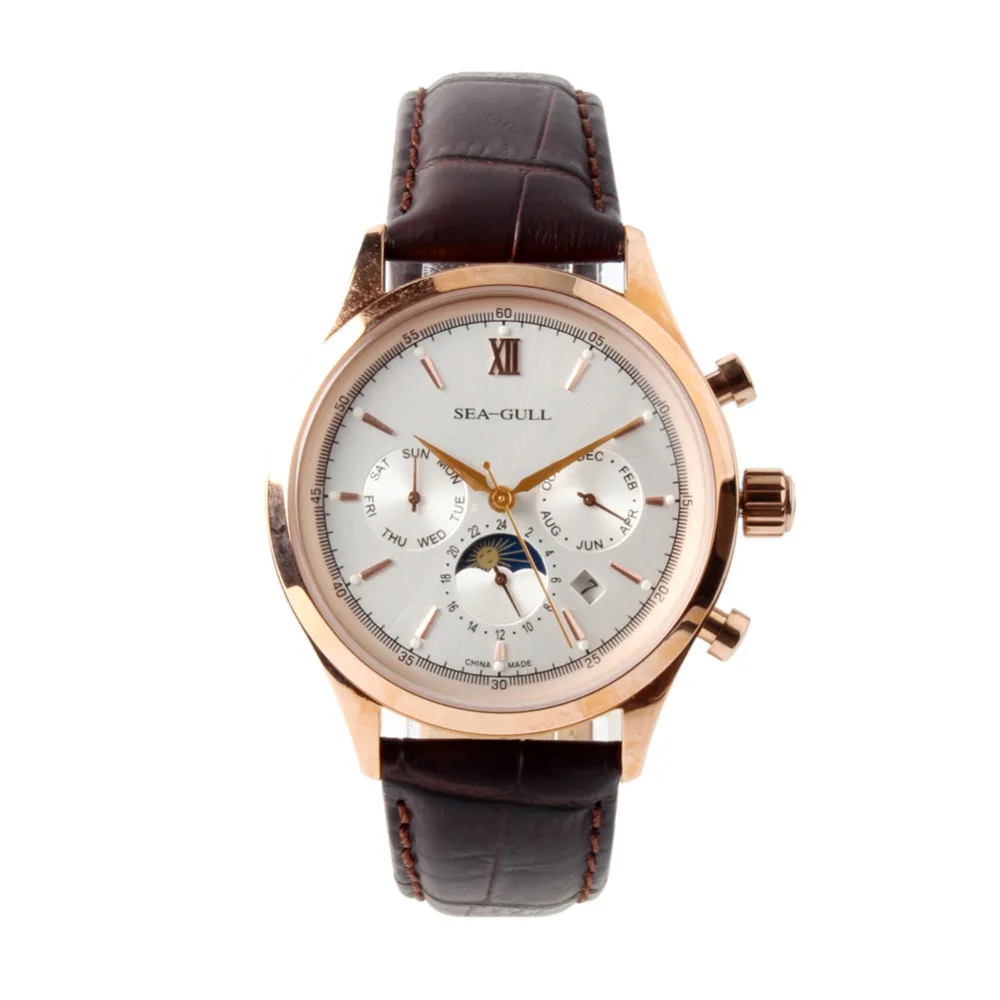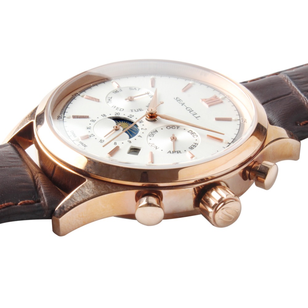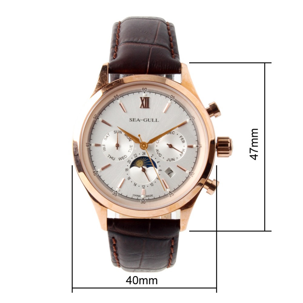 Genuine Seagull Full Complete Calendar 24 Hours Display Rose Gold Hands Exhibition Back Automatic Men’s Watch Sea-gull D2869SG