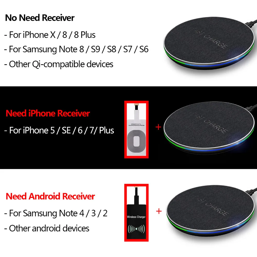 GETIHU 10W Qi Wireless Charger Fast For iPhone 8 Plus X Wireless Charging Pad For Samsung S8 Note 8 QC Wirless Charger for Phone