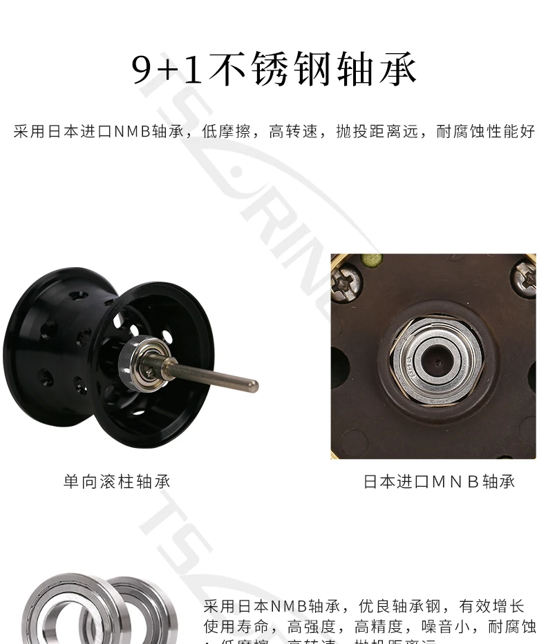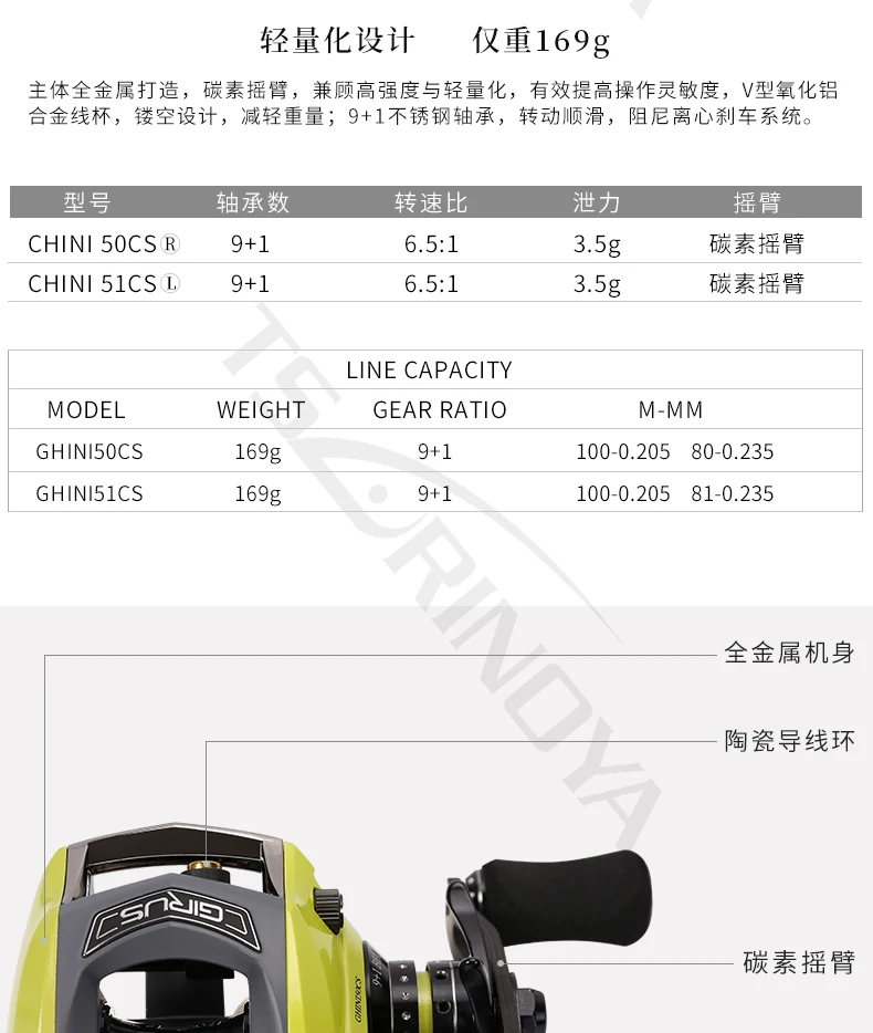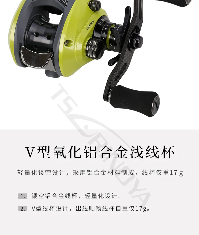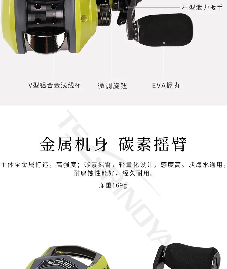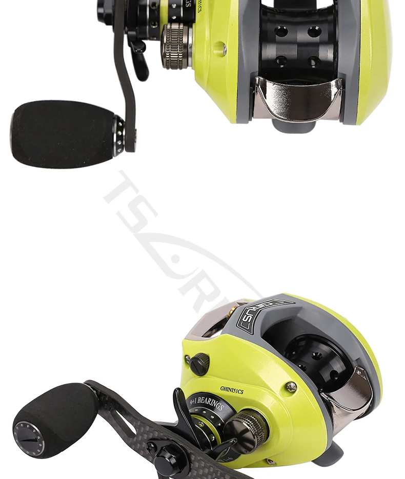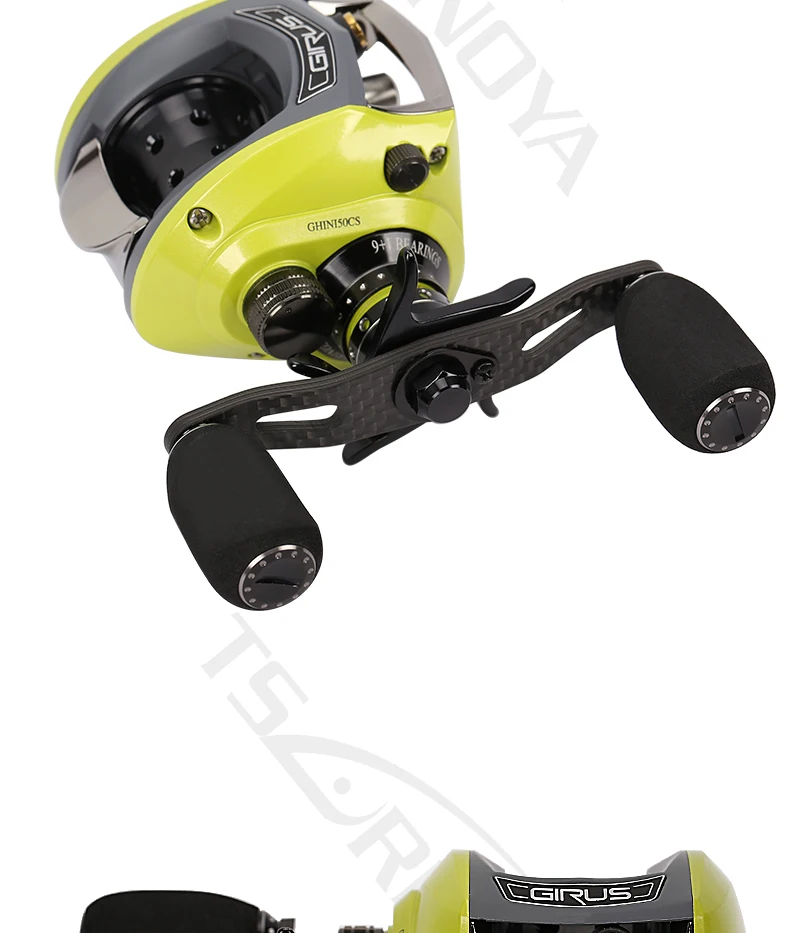GHINI full metal body carbon rocker 6.6:1 water drop wheel left hand right hand 9 + 1BB Fishing Reel-Baitcast Reel