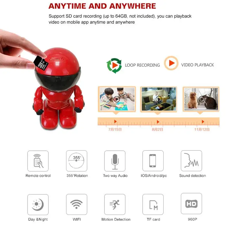 Features:support voice intercom,APP remote monitoring,night vision function, video playback etc.