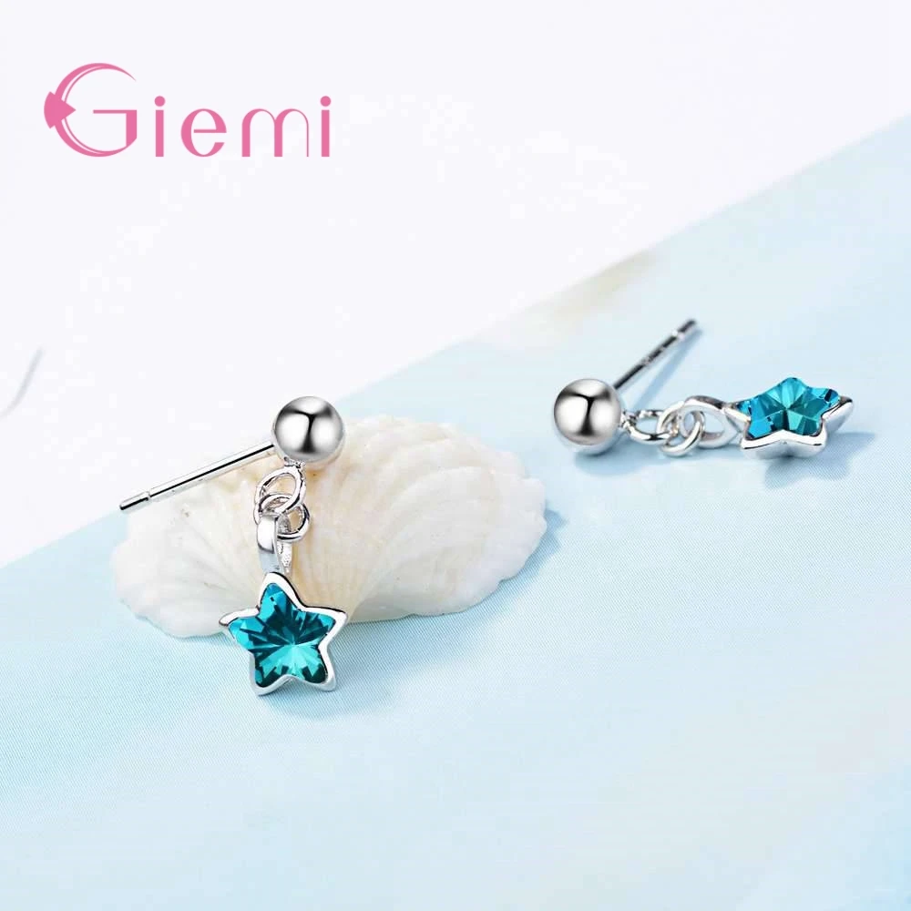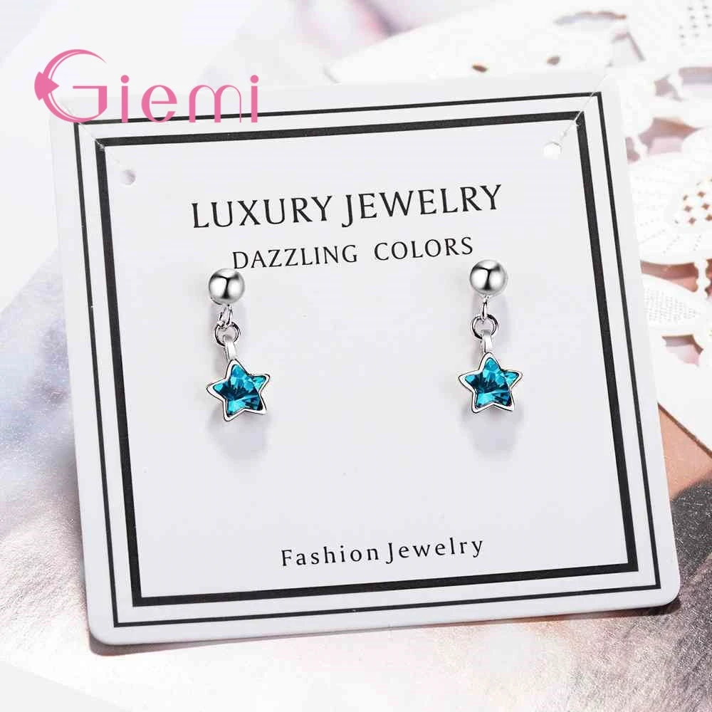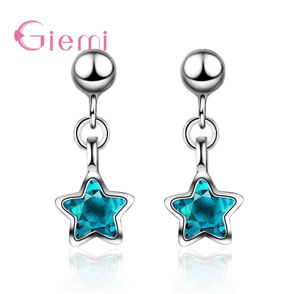 Giemi Big Promotion Fashion Women Girls 925 Sterling Silver Cute Star Pendant Earrings For Party Engagement Jewelry Wholesale
