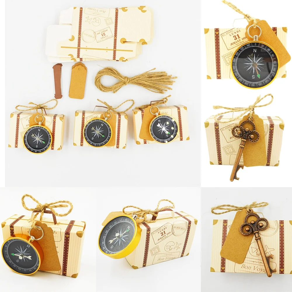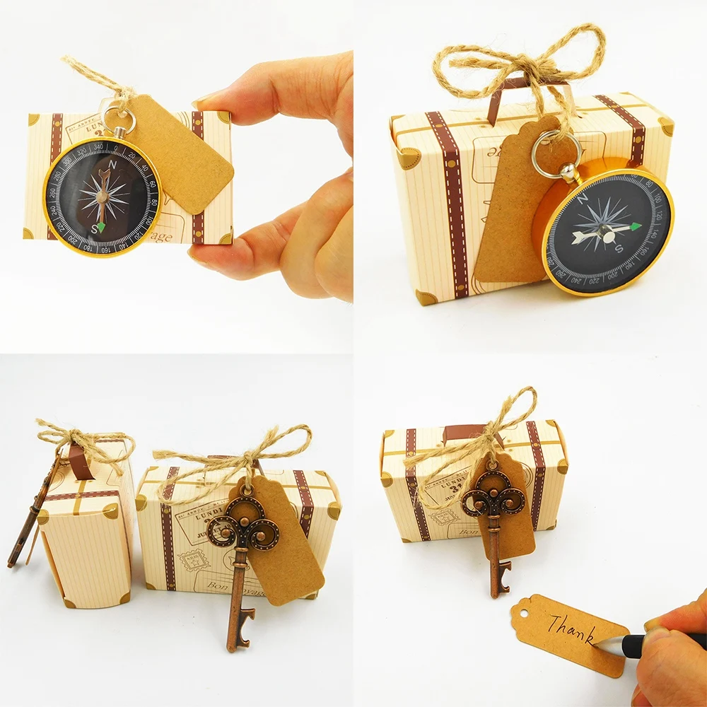 Gift Box Wedding Favors and Gifts Candy Box with Travel Compass Souvenirs for Guests Party DIY Decoration Accessories