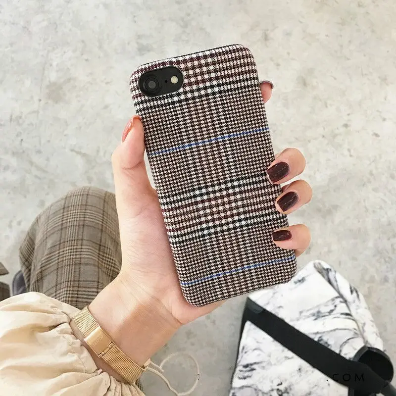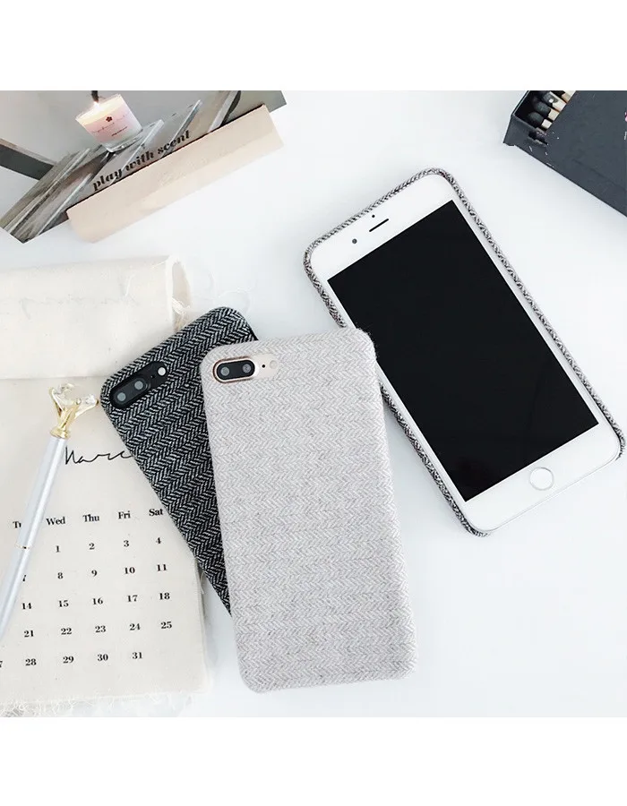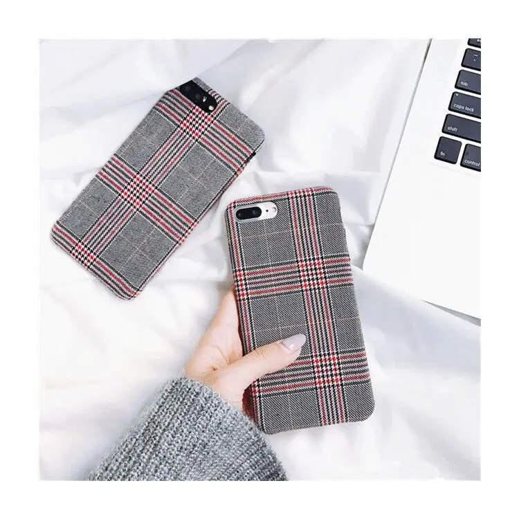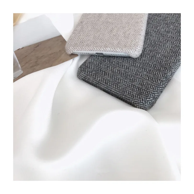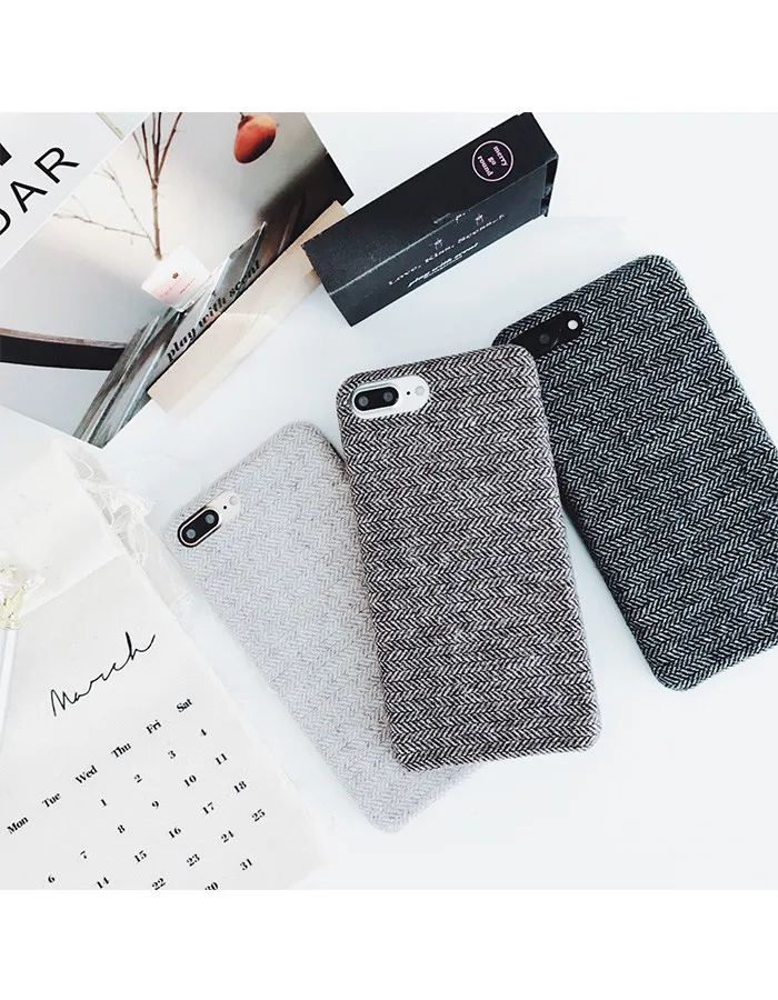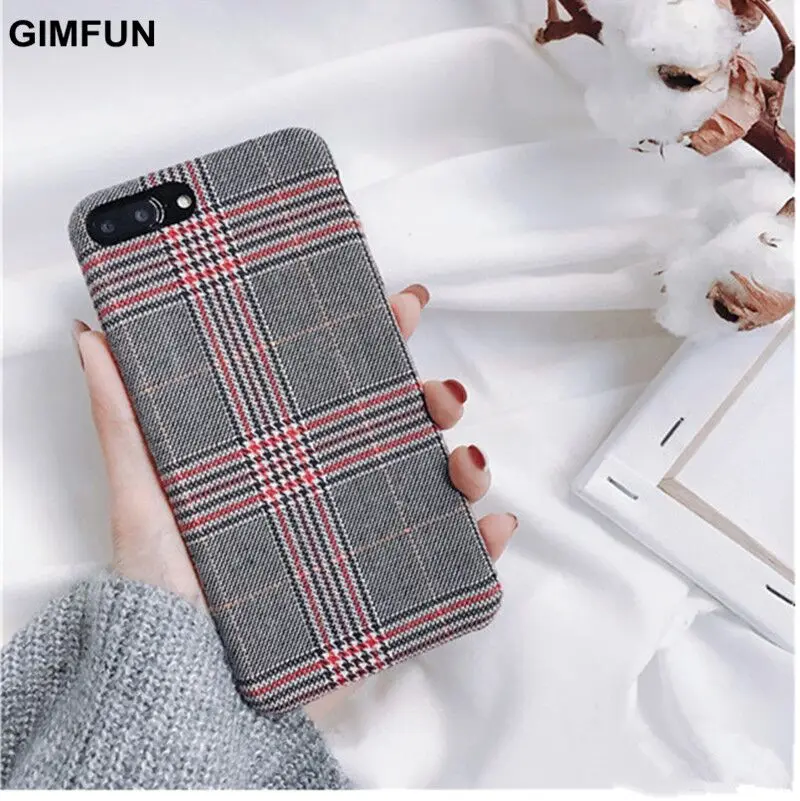 Gimfun Autumn Warm Cloth Fabric Plush Phone Case Simple Plaid Soft Tpu Case for Iphone 7 7plus 6 6s 8 plus X XS XSMAX XR Back Cover