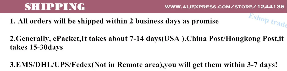 Packages from our warehouse in China will be shipped by ePacket or EMS depending on the weight and size of the product. Packages shipped from our US warehouse are shipped through USPS.