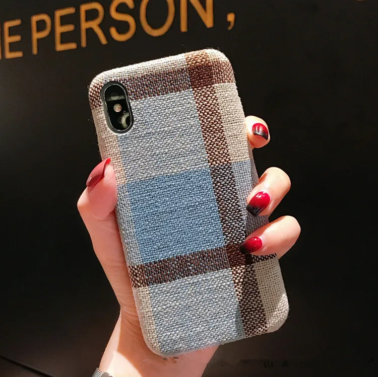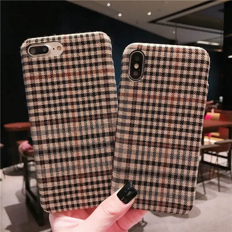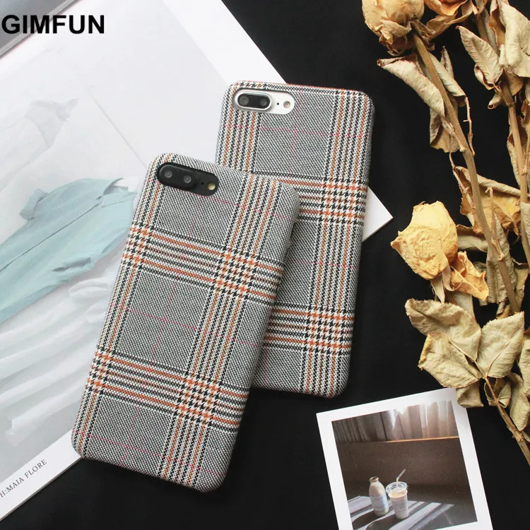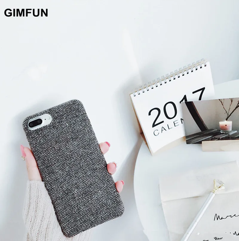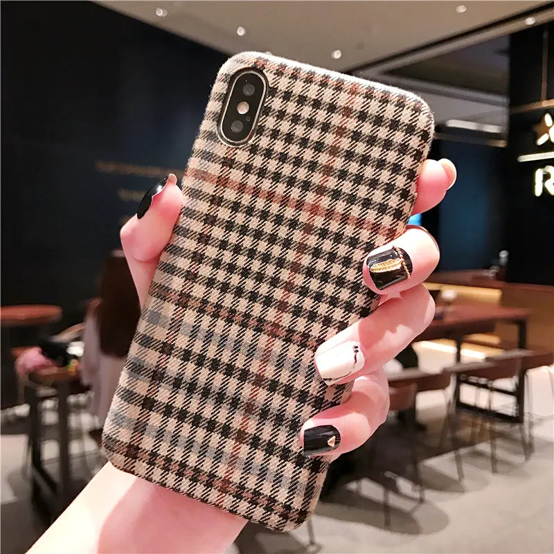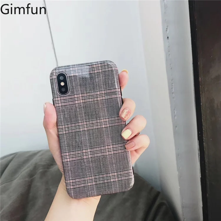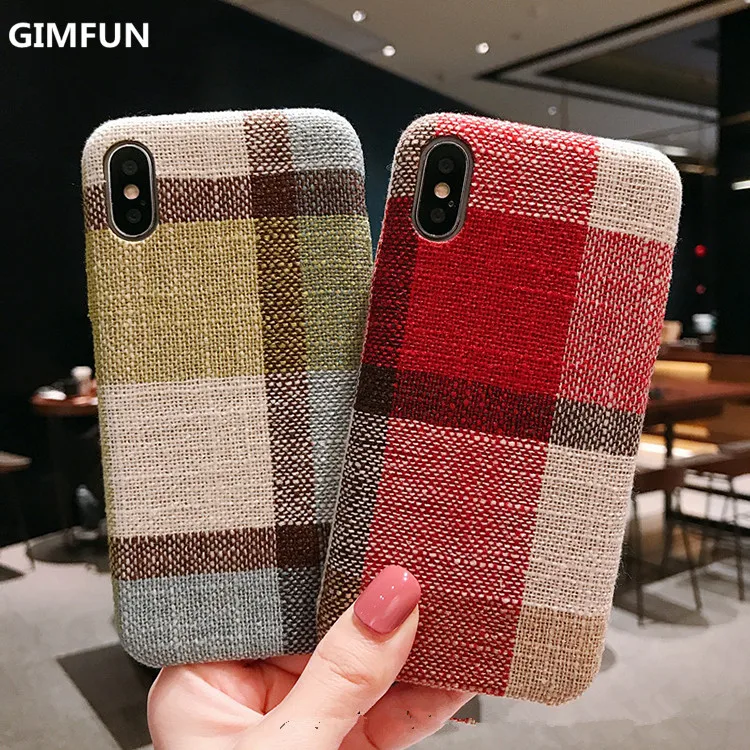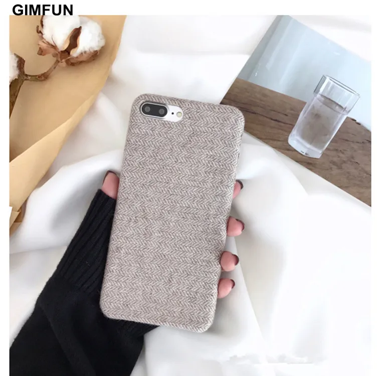 Gimfun Autumn Warm Cloth Fabric Plush Phone Case Simple Plaid Soft Tpu Case for Iphone 7 7plus 6 6s 8 plus X XS XSMAX XR Back Cover