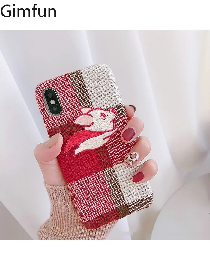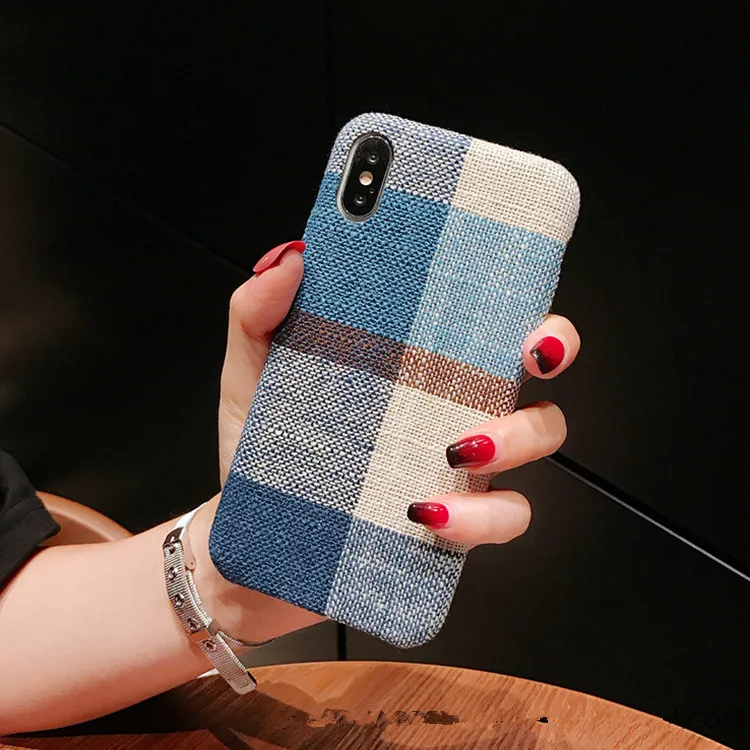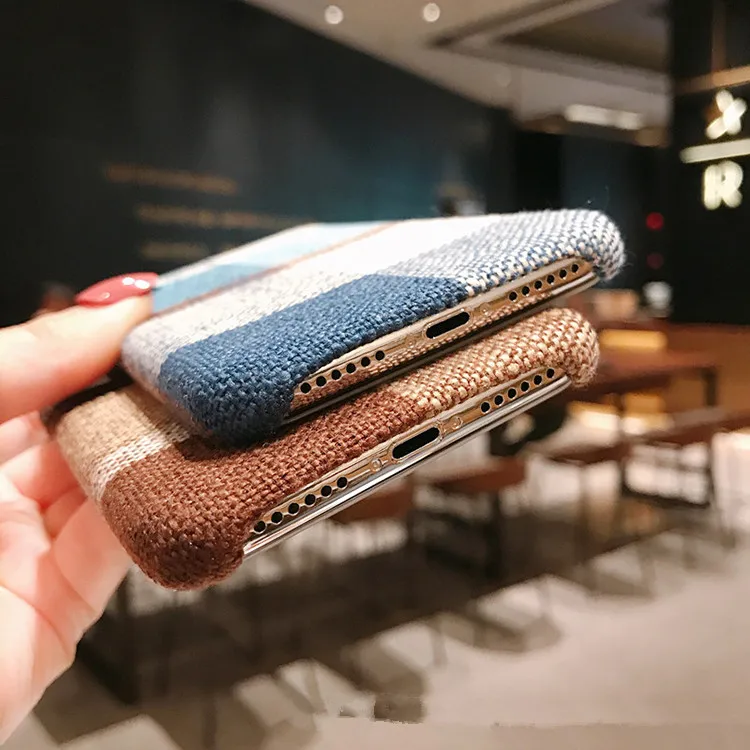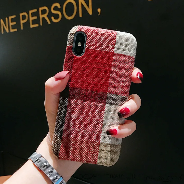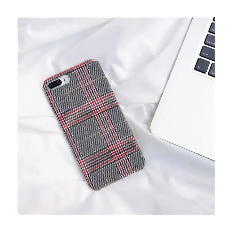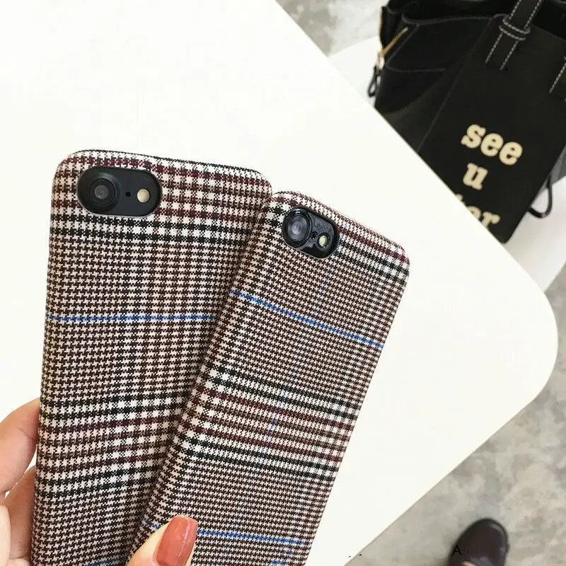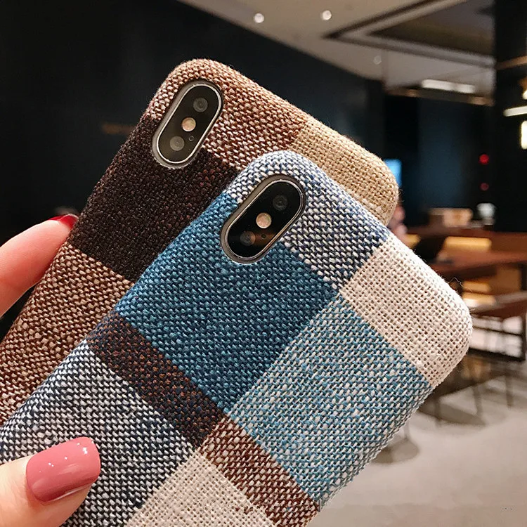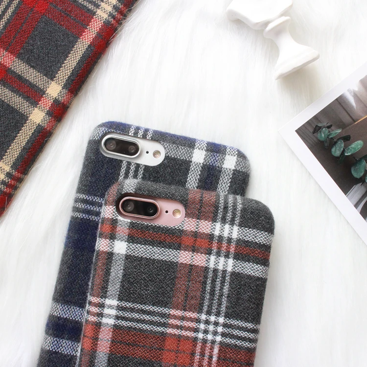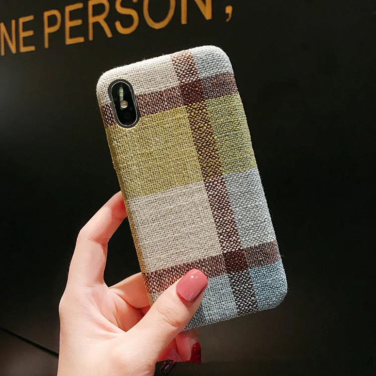 Gimfun Autumn Warm Cloth Fabric Plush Phone Case Simple Plaid Soft Tpu Case for Iphone 7 7plus 6 6s 8 plus X XS XSMAX XR Back Cover