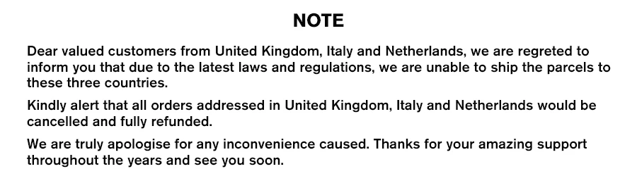 We are not responsible for any custom fees once the items have shipped. By purchasing our products, you consent that one or more packages may be shipped to you and may get custom fees when they arrive in your country.