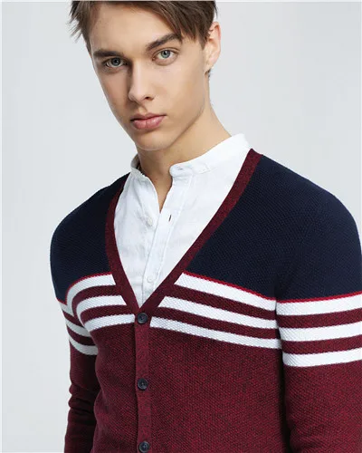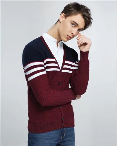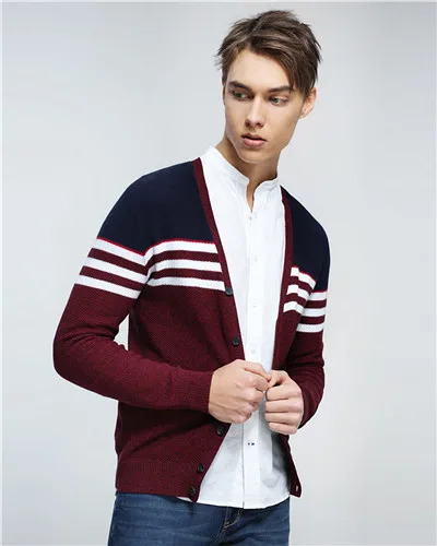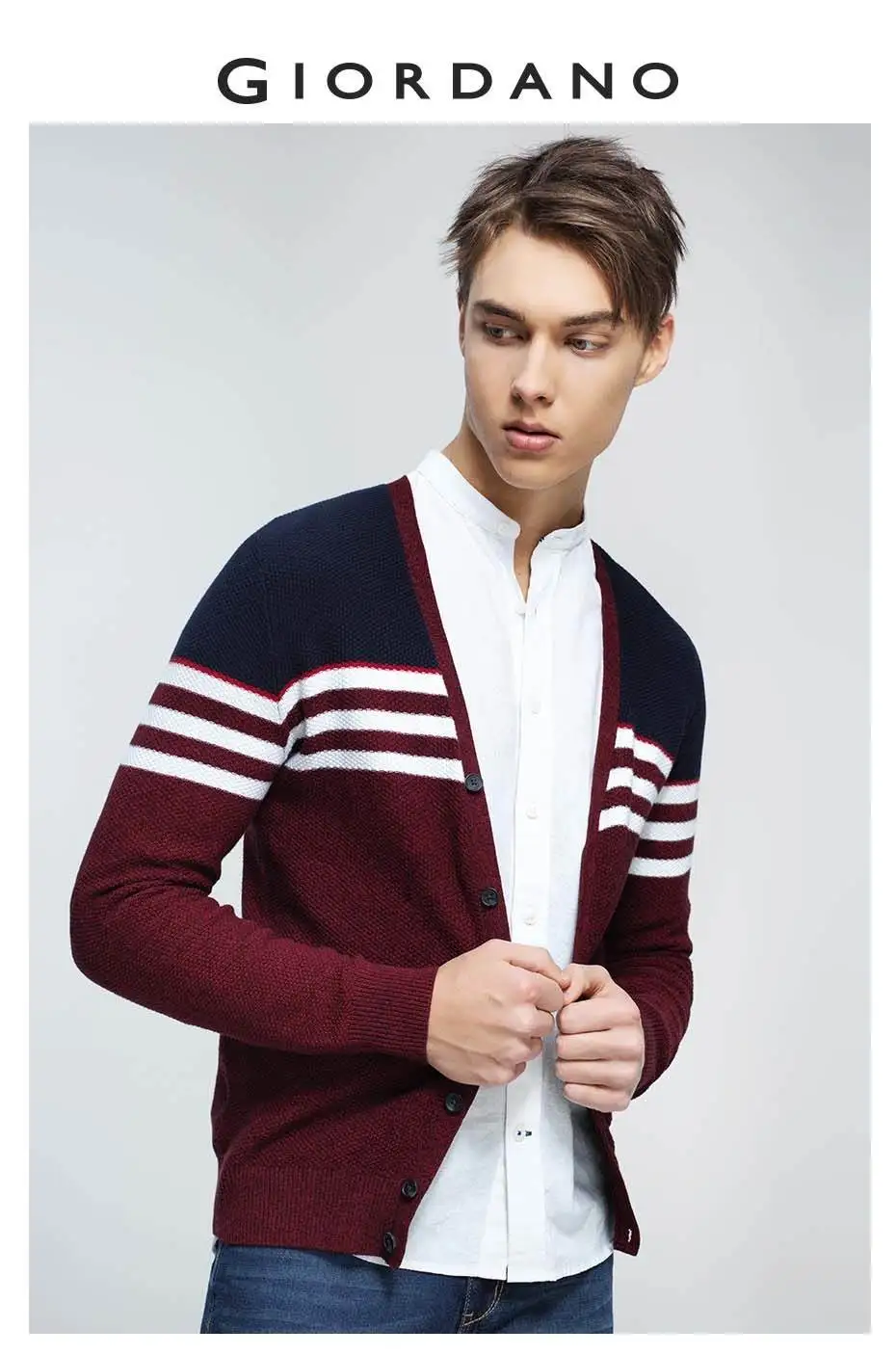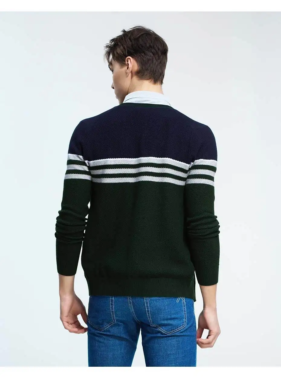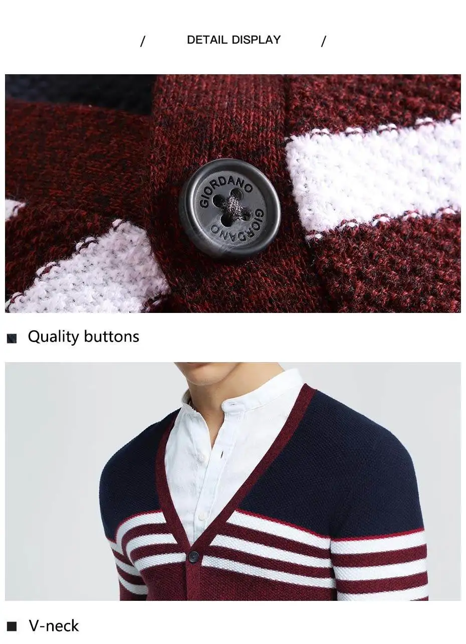 Giordano Men Sweater Combed Cotton V Neck Cardigan Stripes Jacquard Ribbed Crewneck Warm Sweaters Homme Uomo Maglione Brand