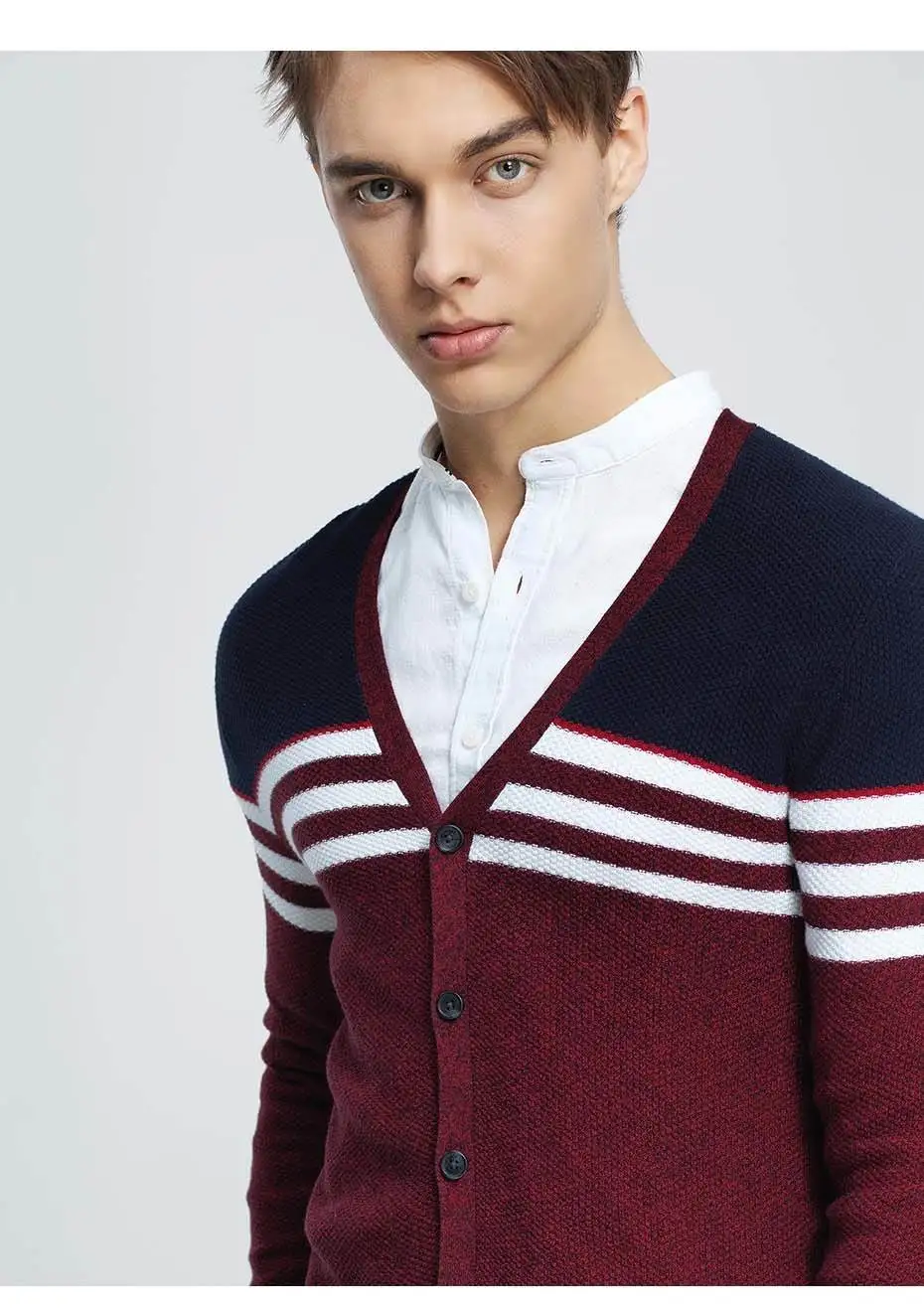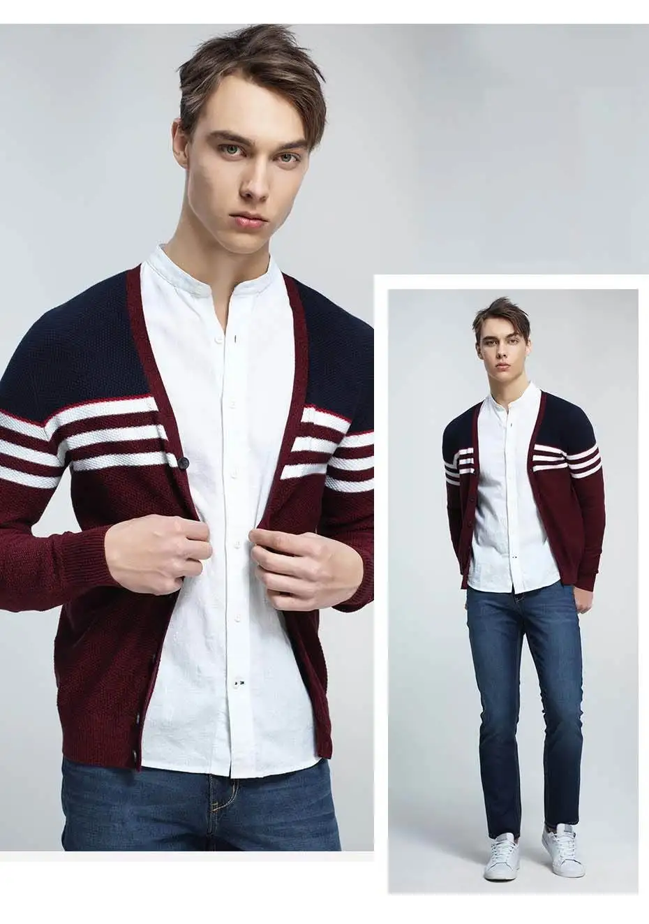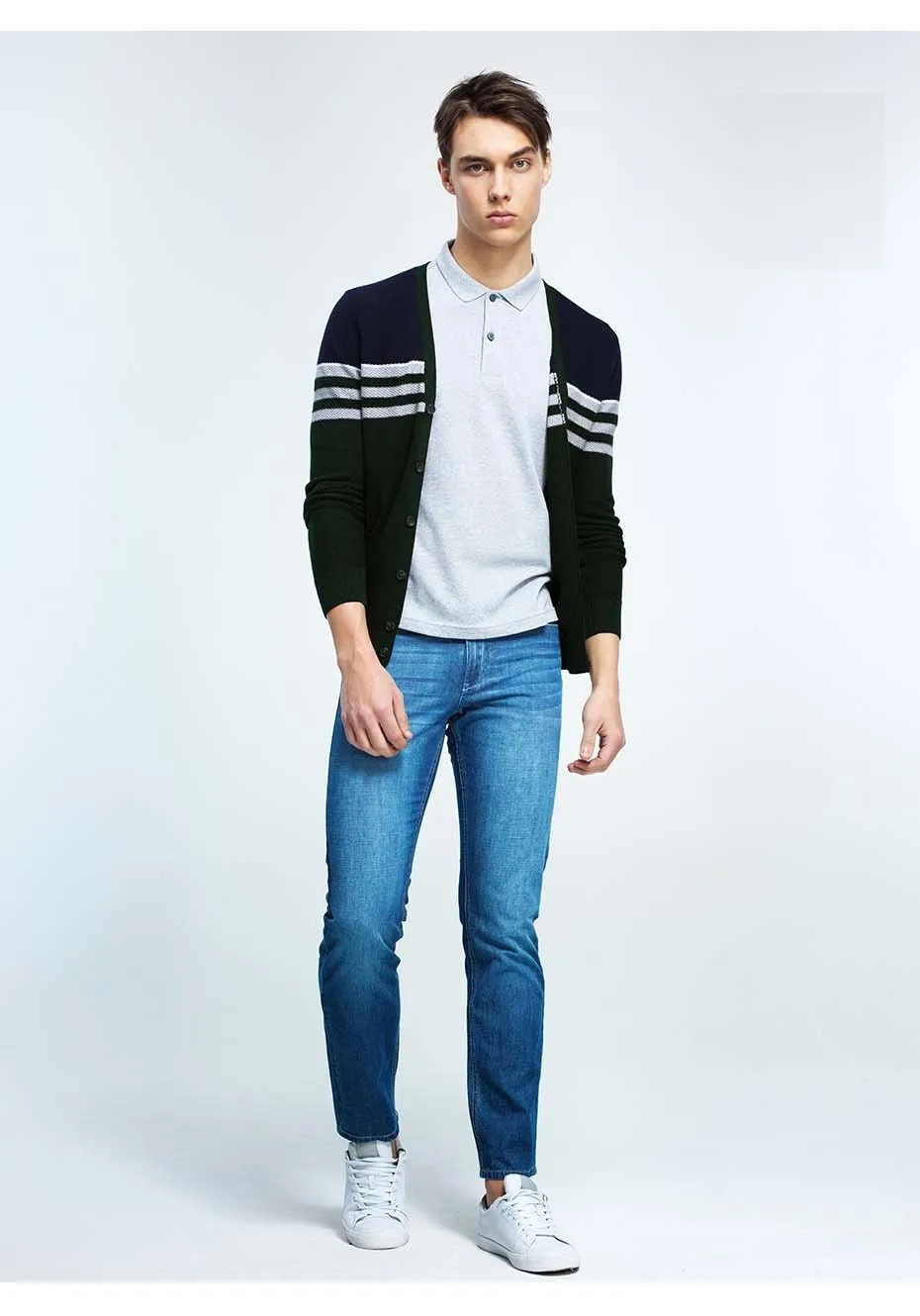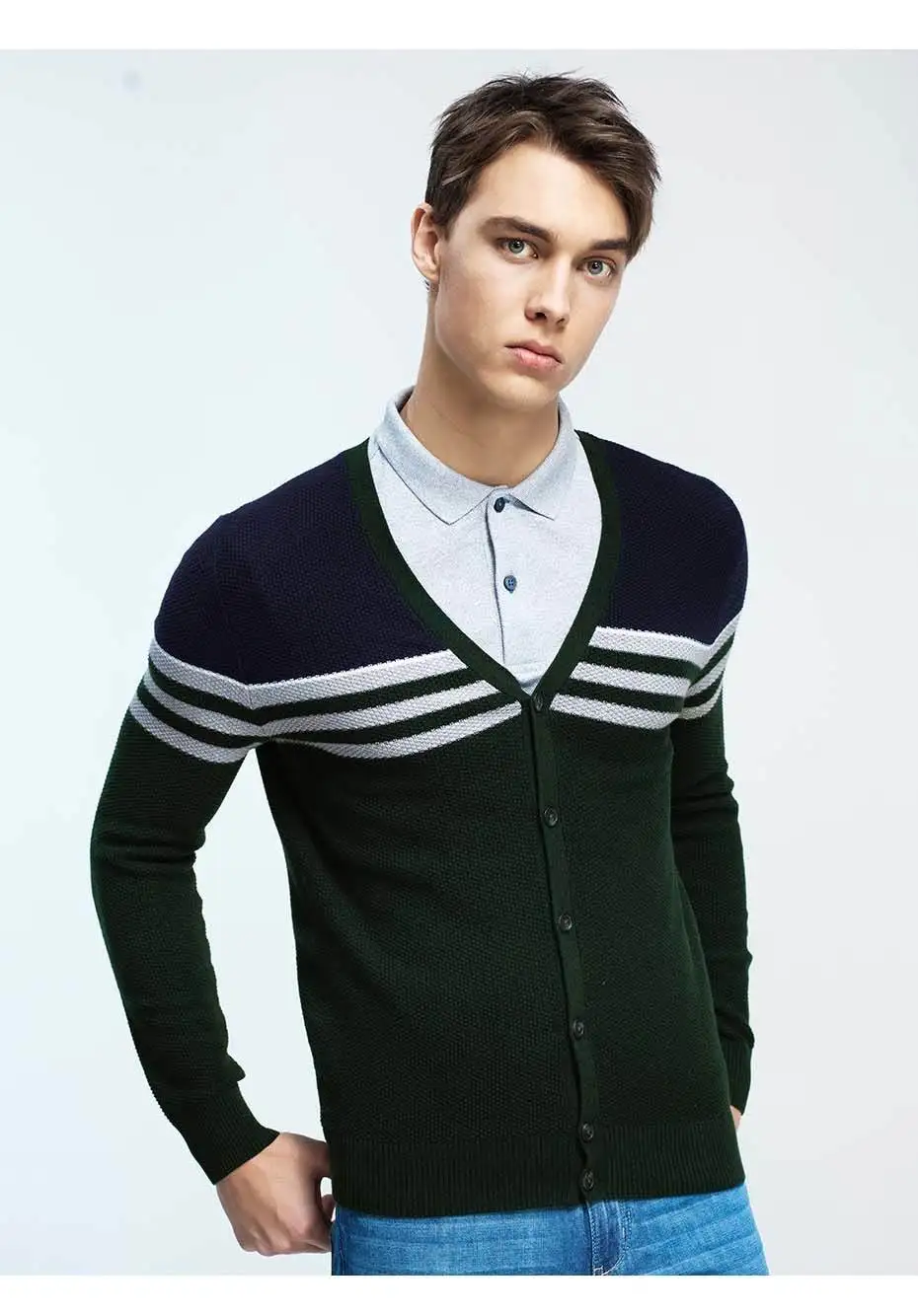 Giordano Men Sweater Combed Cotton V Neck Cardigan Stripes Jacquard Ribbed Crewneck Warm Sweaters Homme Uomo Maglione Brand