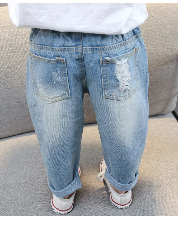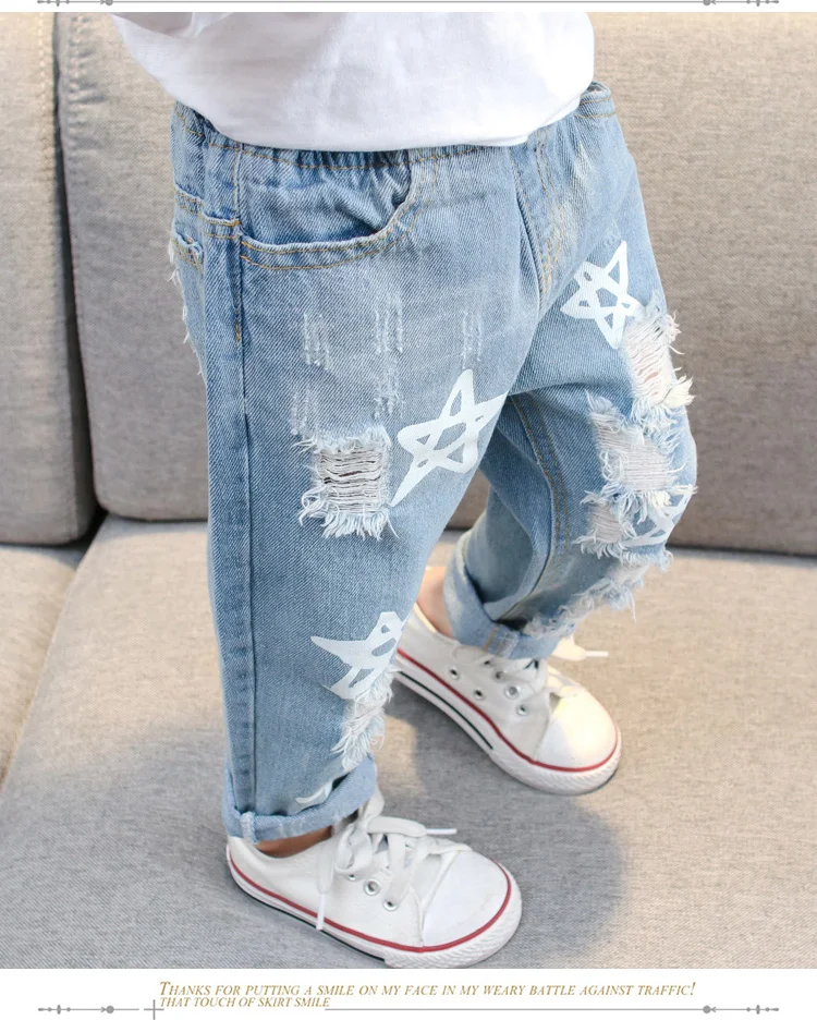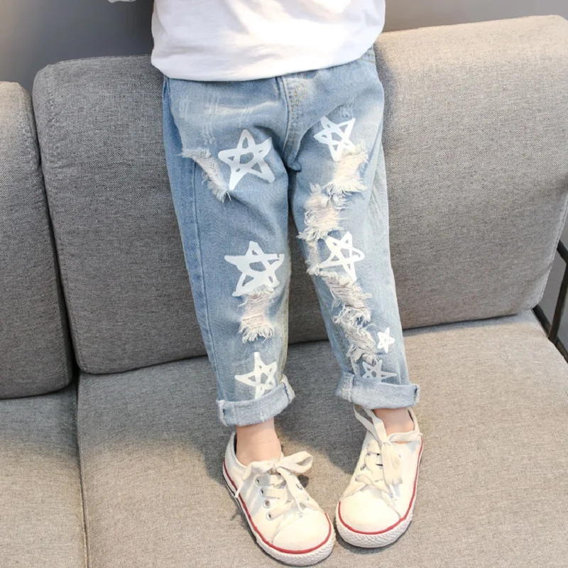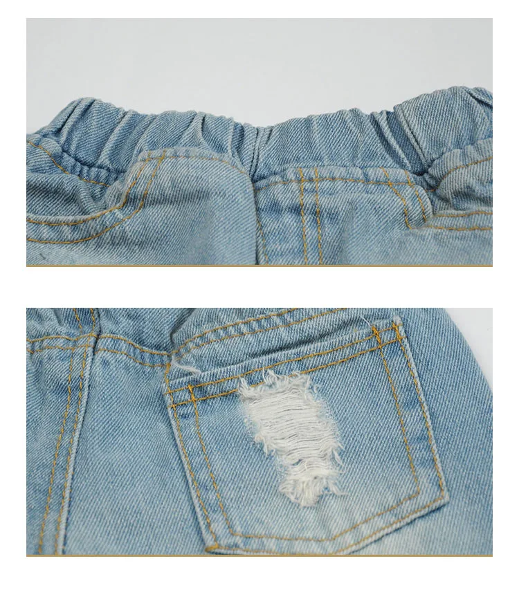 Girl Clothing Jeans Elastic Waist Cotton Baby Children Fashion Broken Hole Kids Jeans for Girls Ripped Jeans For Girls Jeans