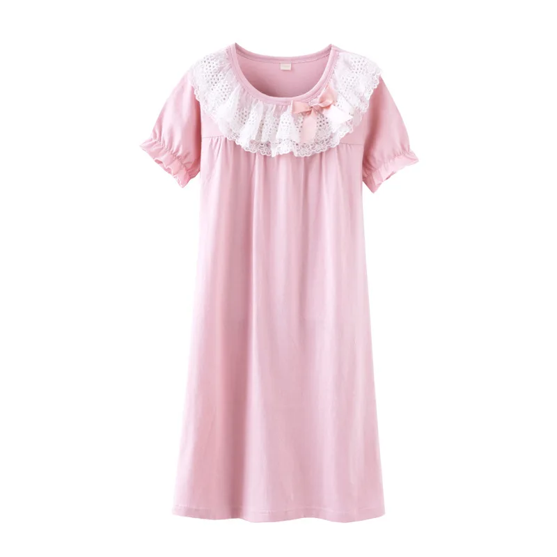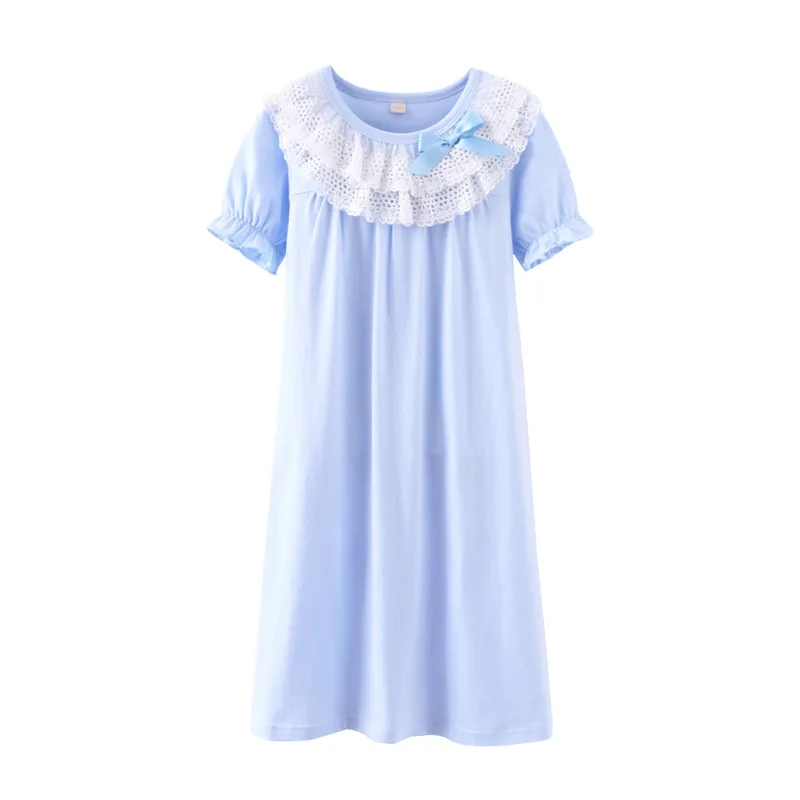 Girl Night Gowns Pajamas Summer Girl’s Nightgowns Sleepwear Dress Lace Sleepwear for Girl Soft Pjs (Size 14 Fit for Adult Also)