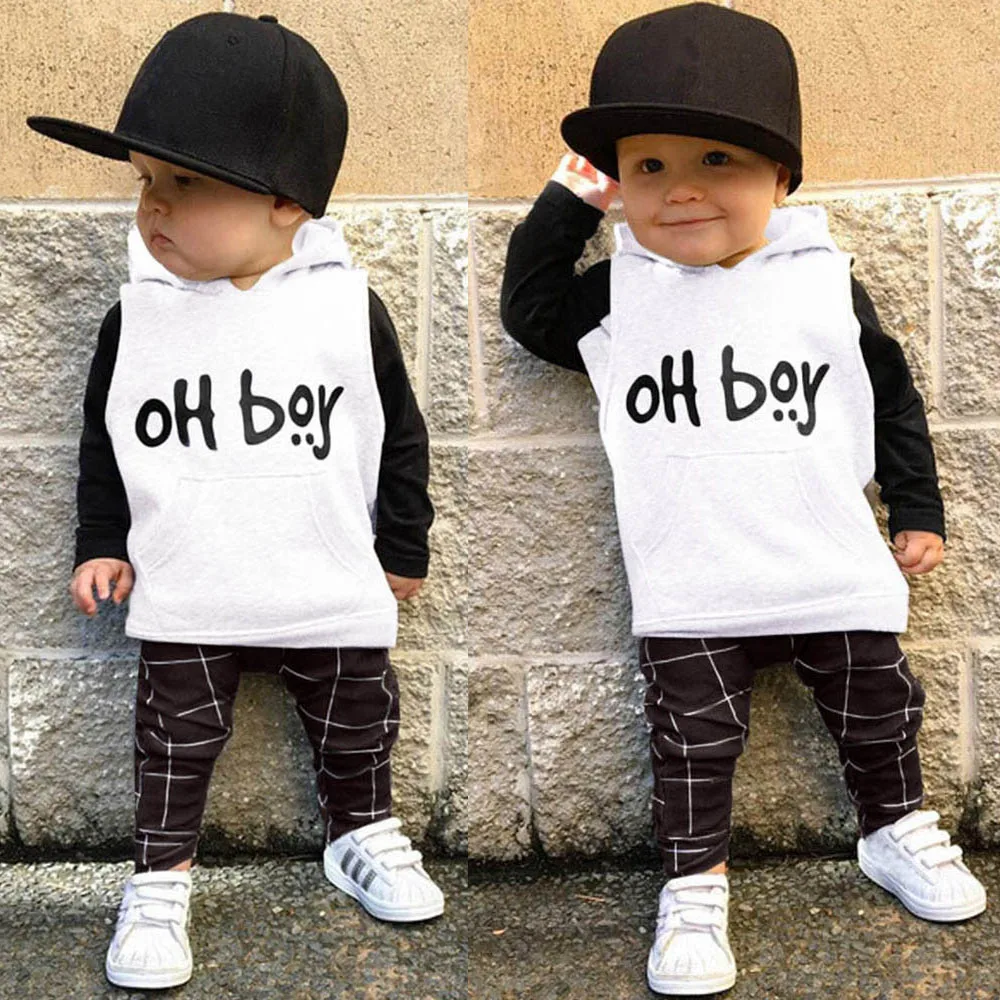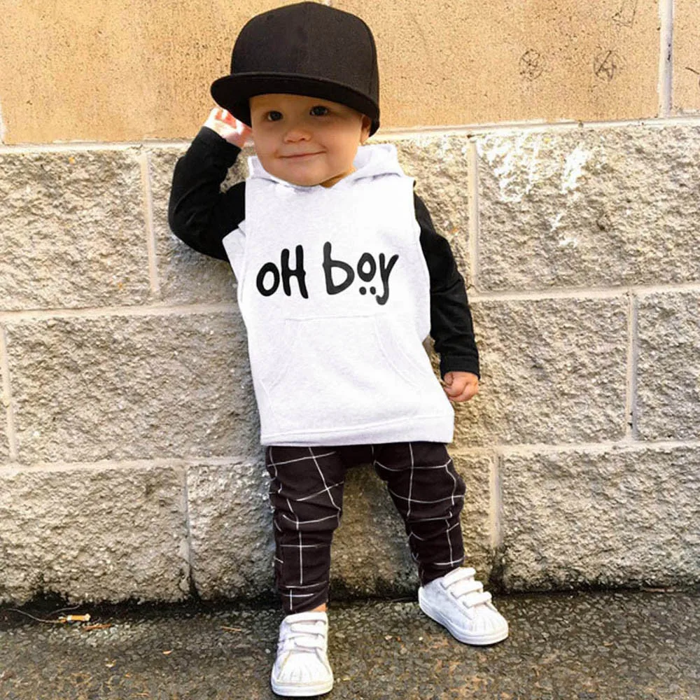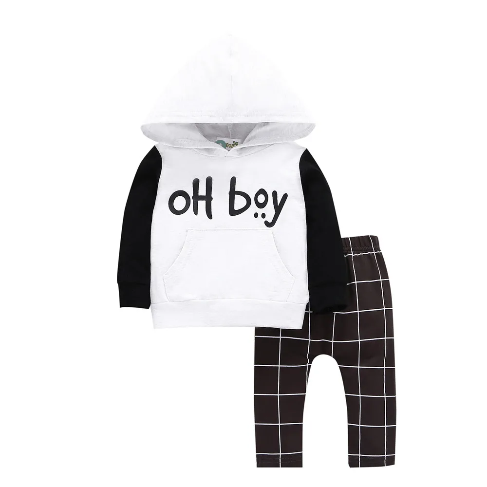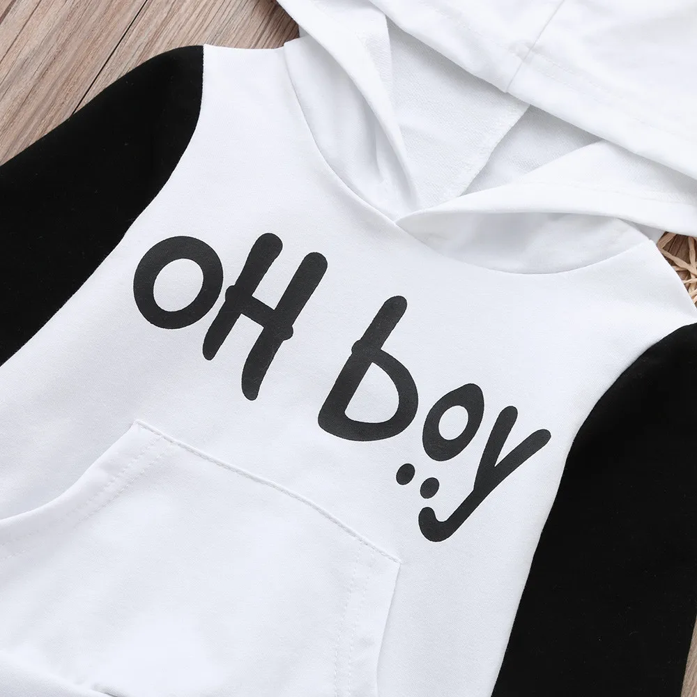 Toddler Infant Baby Girls Boys Clothes Set Letter Hooded Tops+Pants Outfits