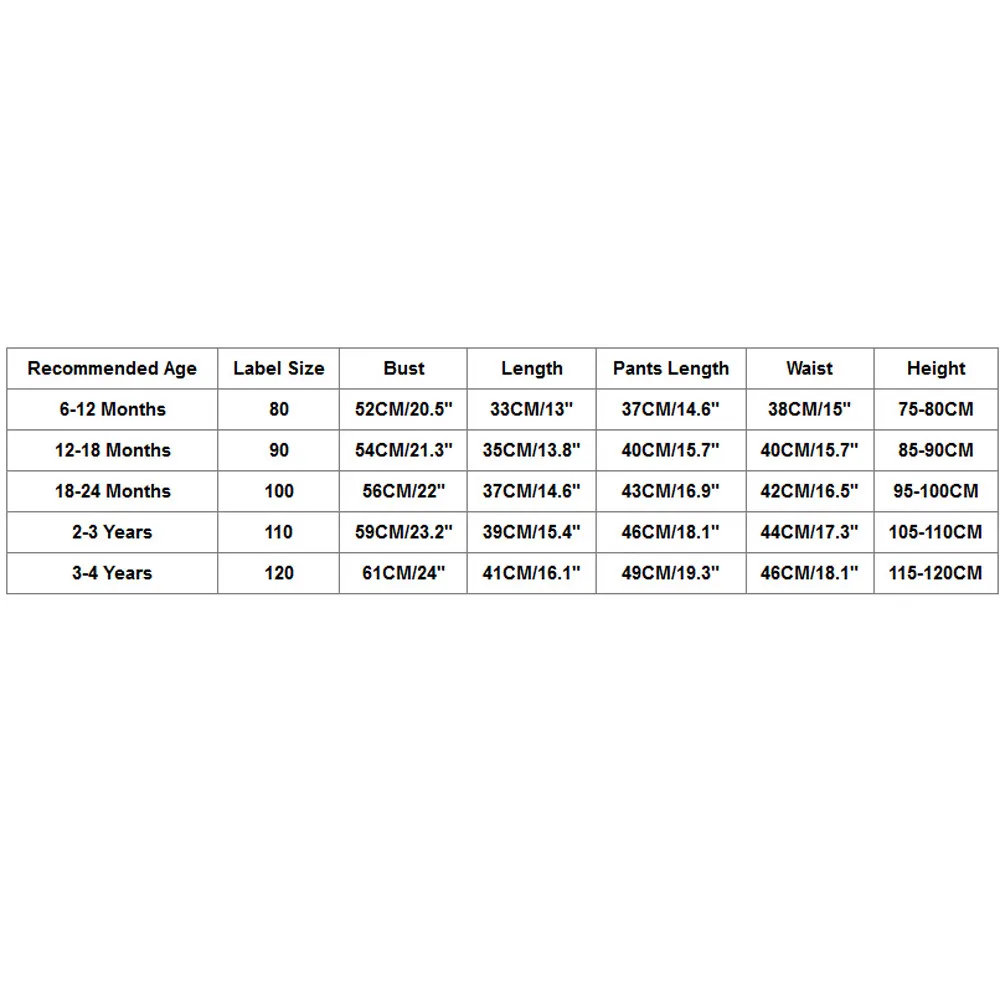 Recommended Age Label Size Bust Length Pants Length Waist Height