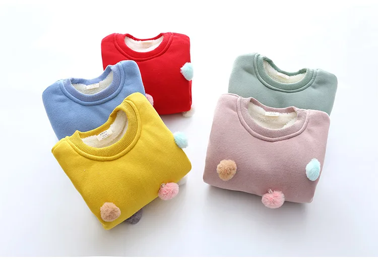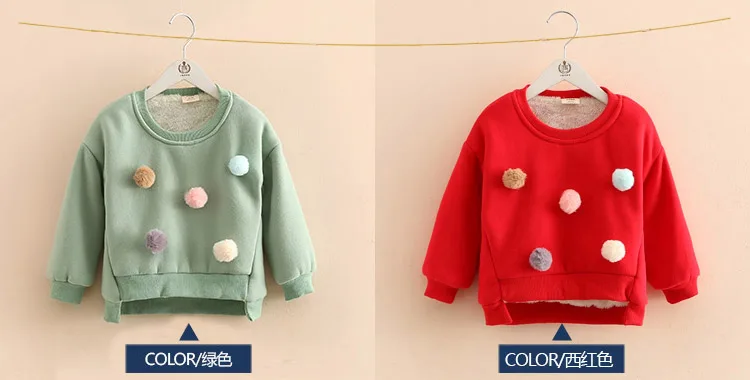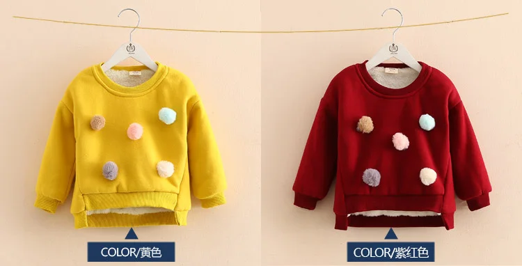Girls Hoodies New 2018 Winter Warm Colored Balls Decoration Long Sleeved Plus Vevelt Toddler Girls Hoodies And Sweatshirts