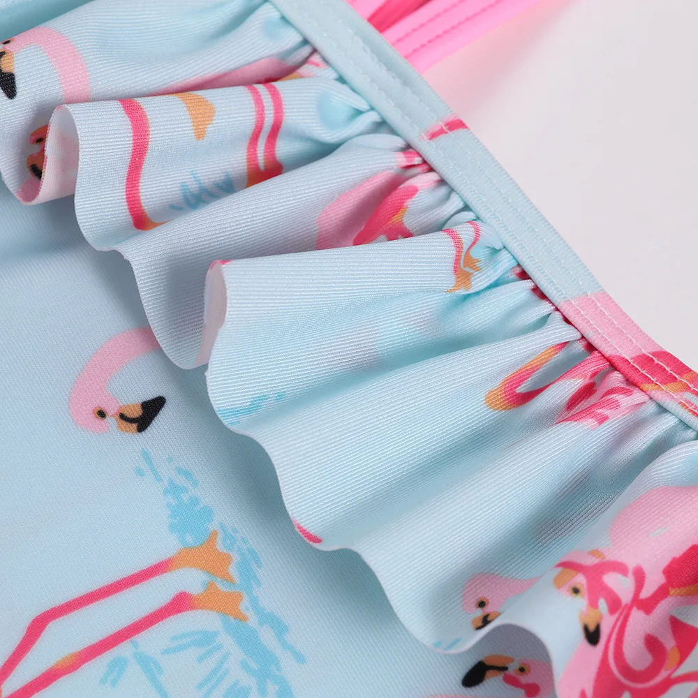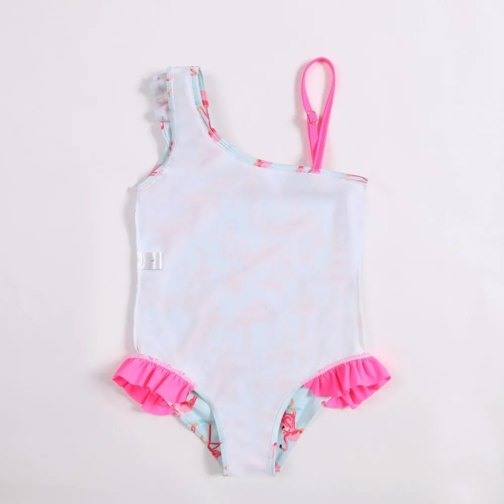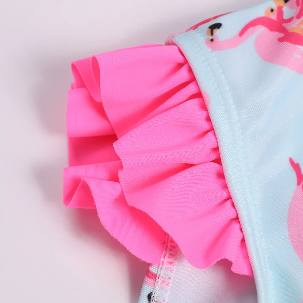 Girls Summer Swimwear Bikini One Piece Baby Swimwear Children Clothing Girls’ Swimsuit Kids Bathing Suit Ruffle Flamingo 3-8Y