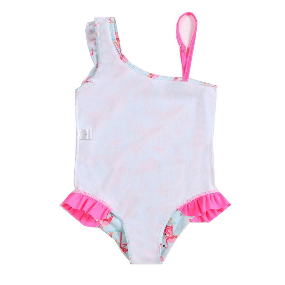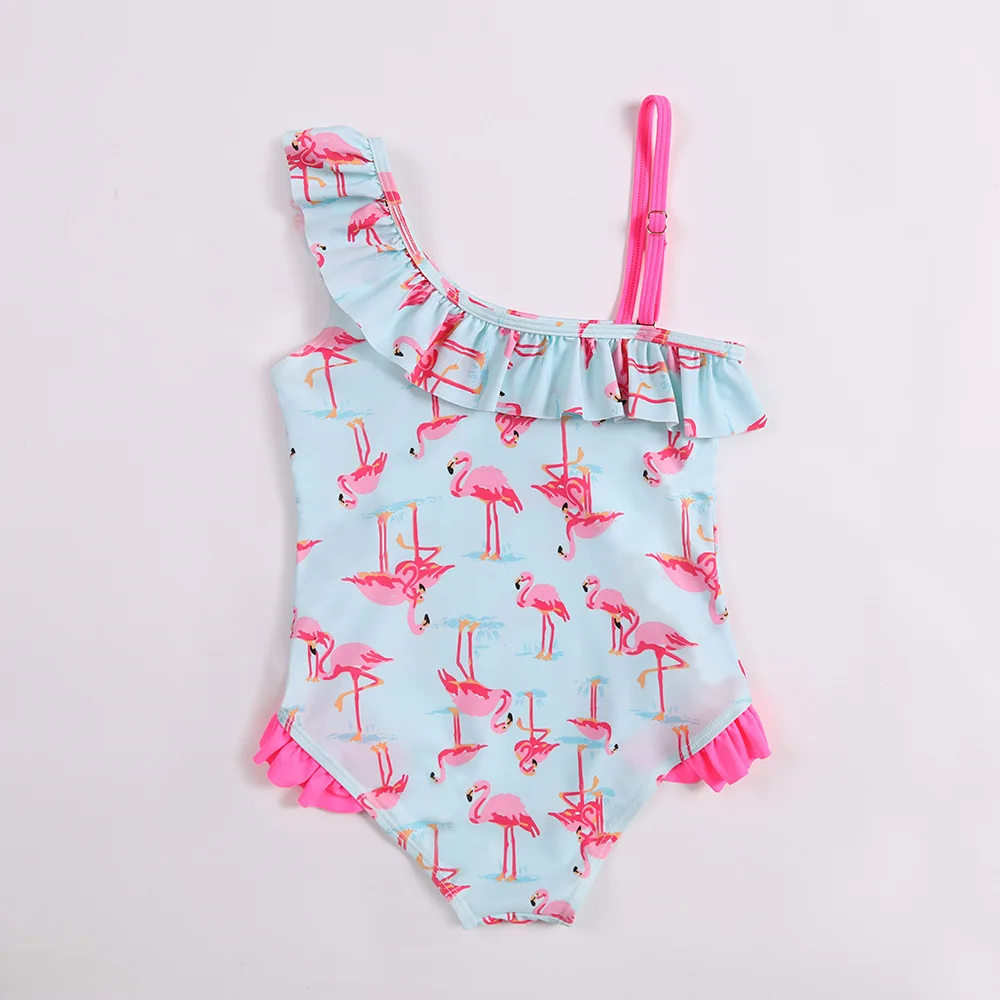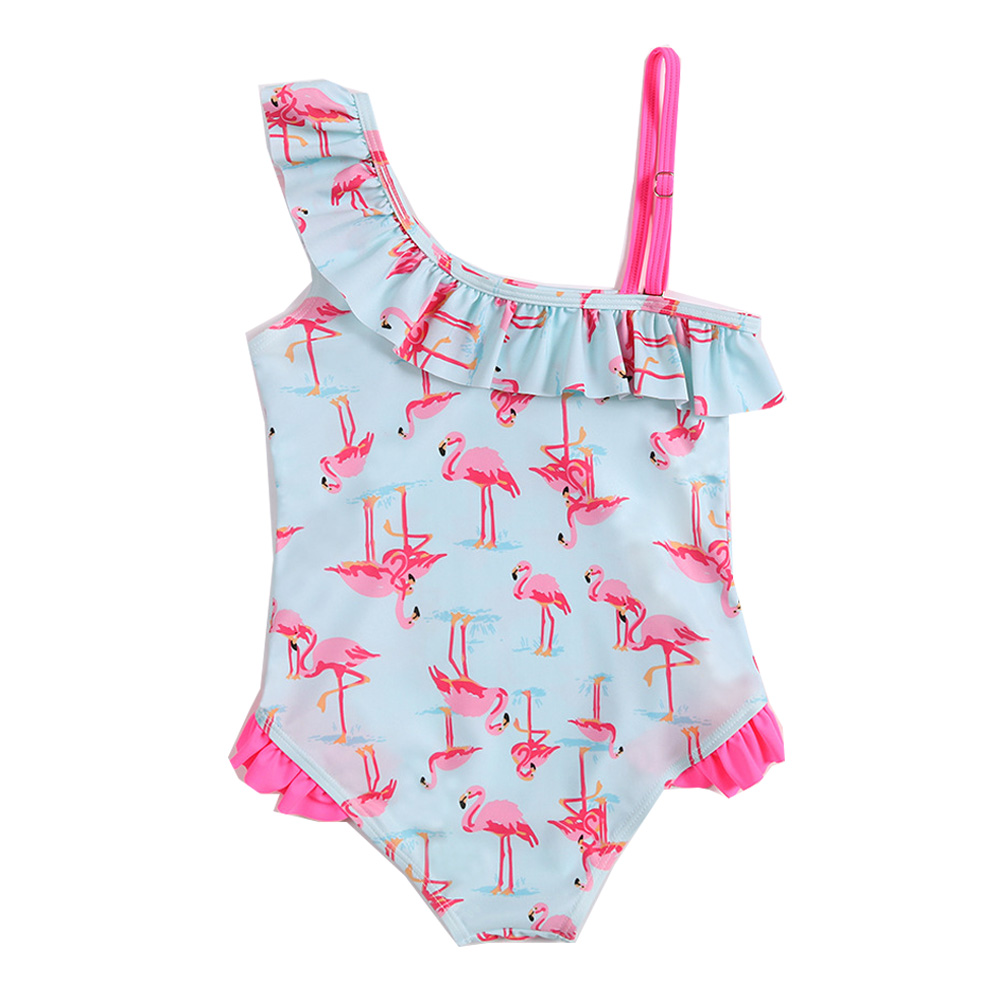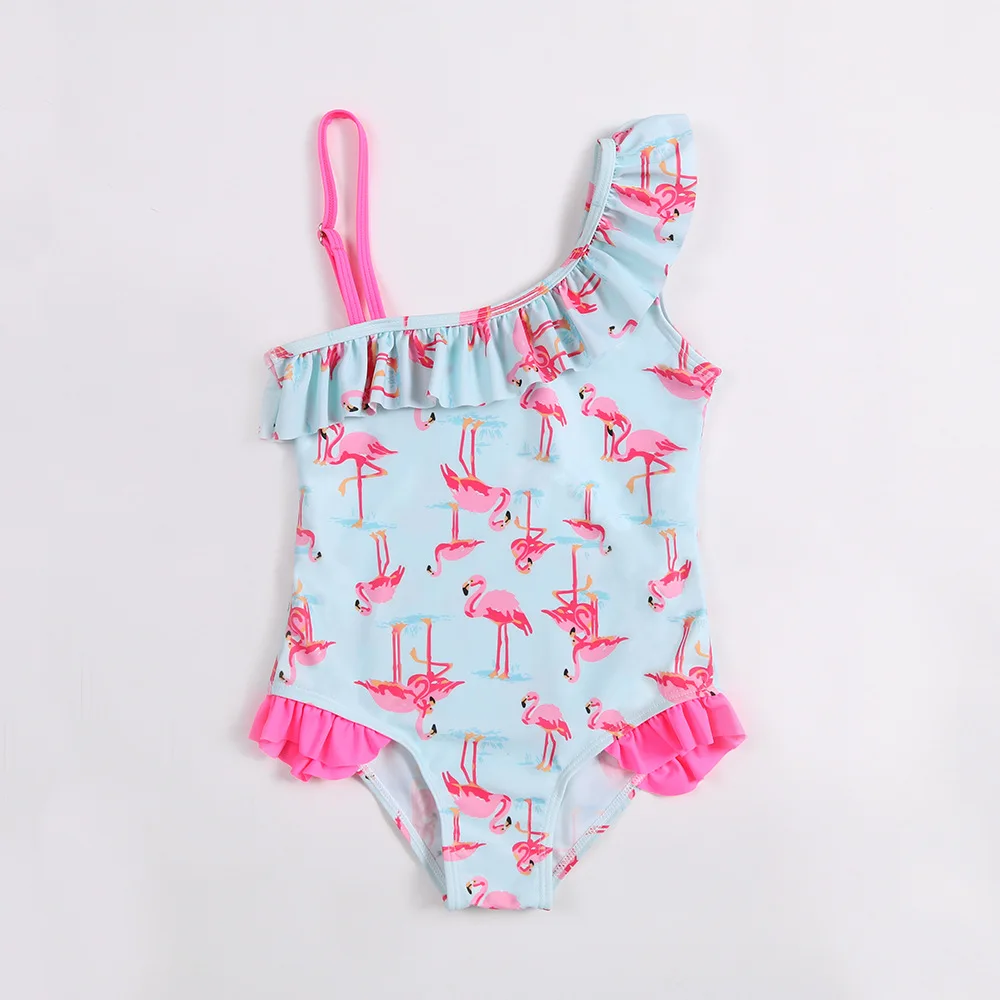 Girls Summer Swimwear Bikini One Piece Baby Swimwear Children Clothing Girls’ Swimsuit Kids Bathing Suit Ruffle Flamingo 3-8Y