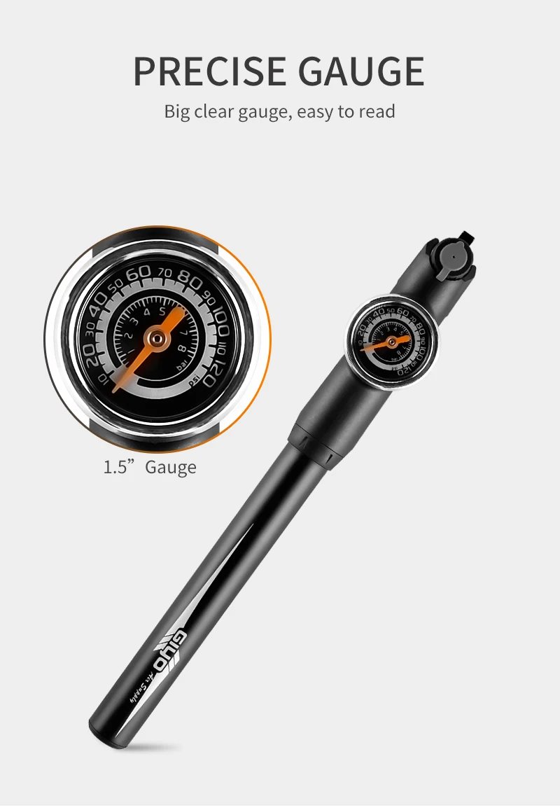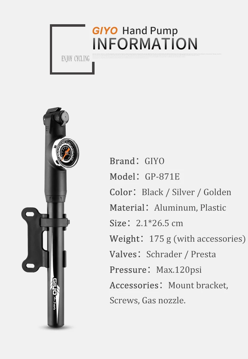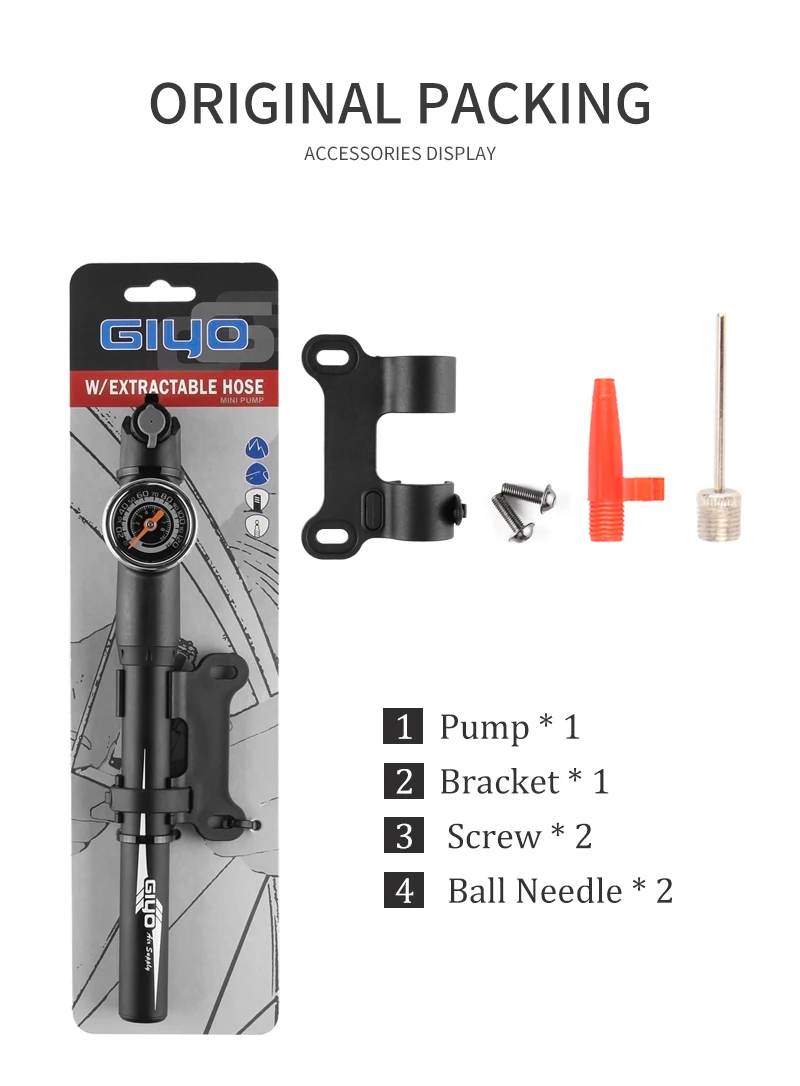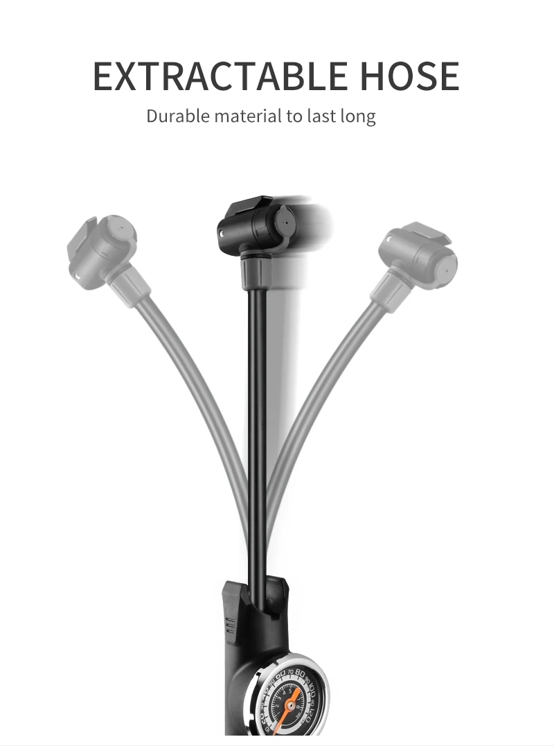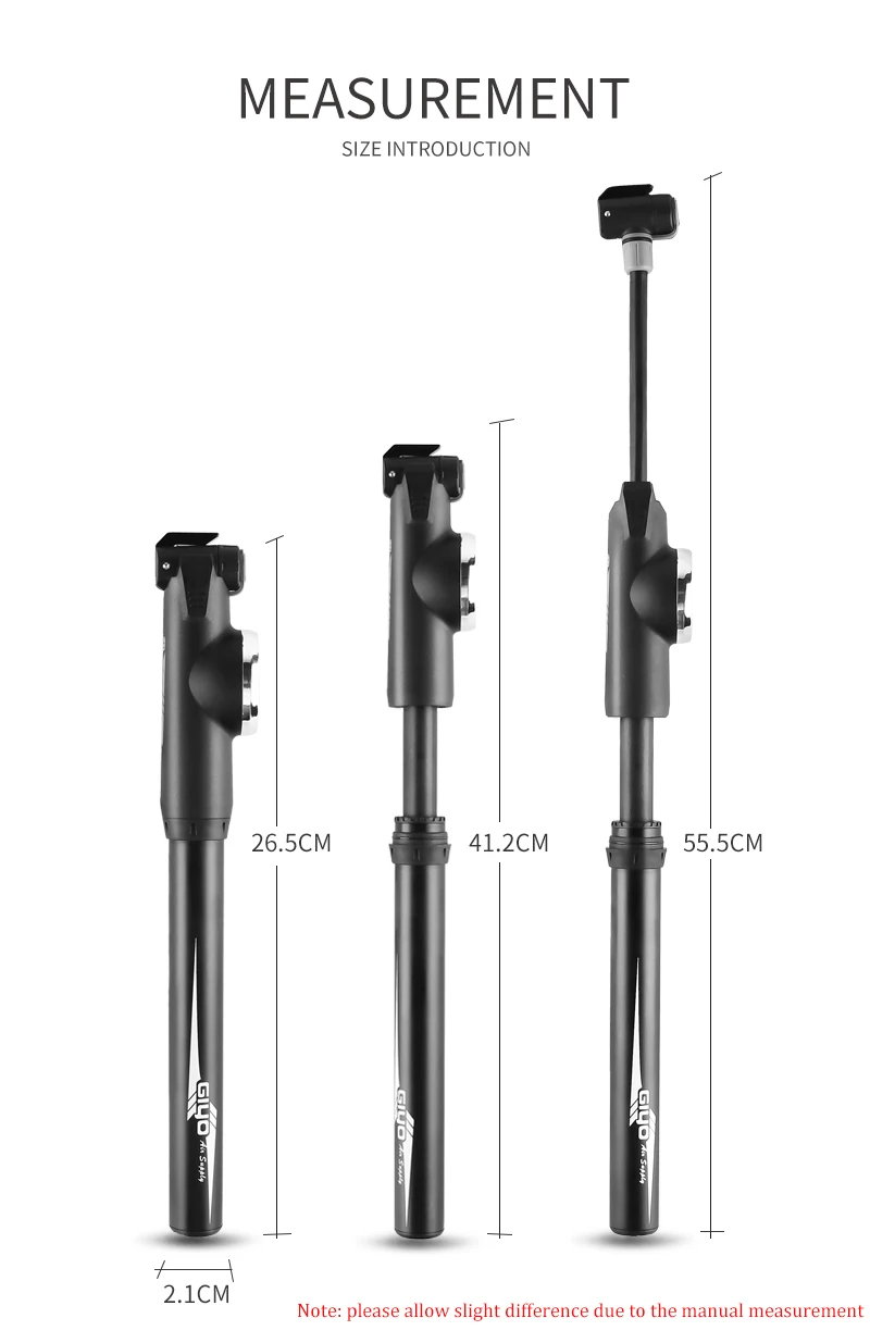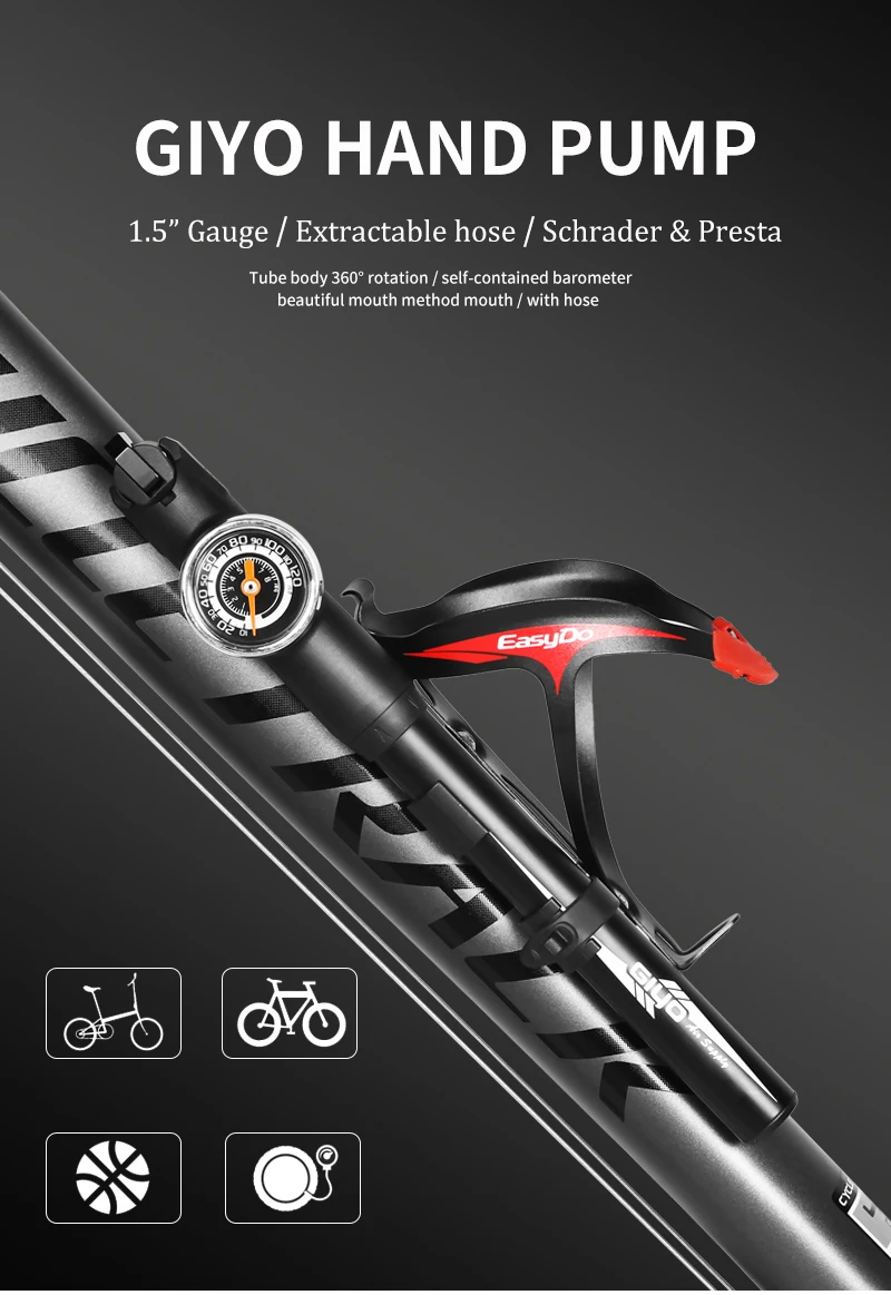 GIYO Bicycle Pumps Extractable Hose Bike Pump High Pressure Hand Pump With Gauge Ball Needle Tire Inflator Air Bike Bicycle Pump