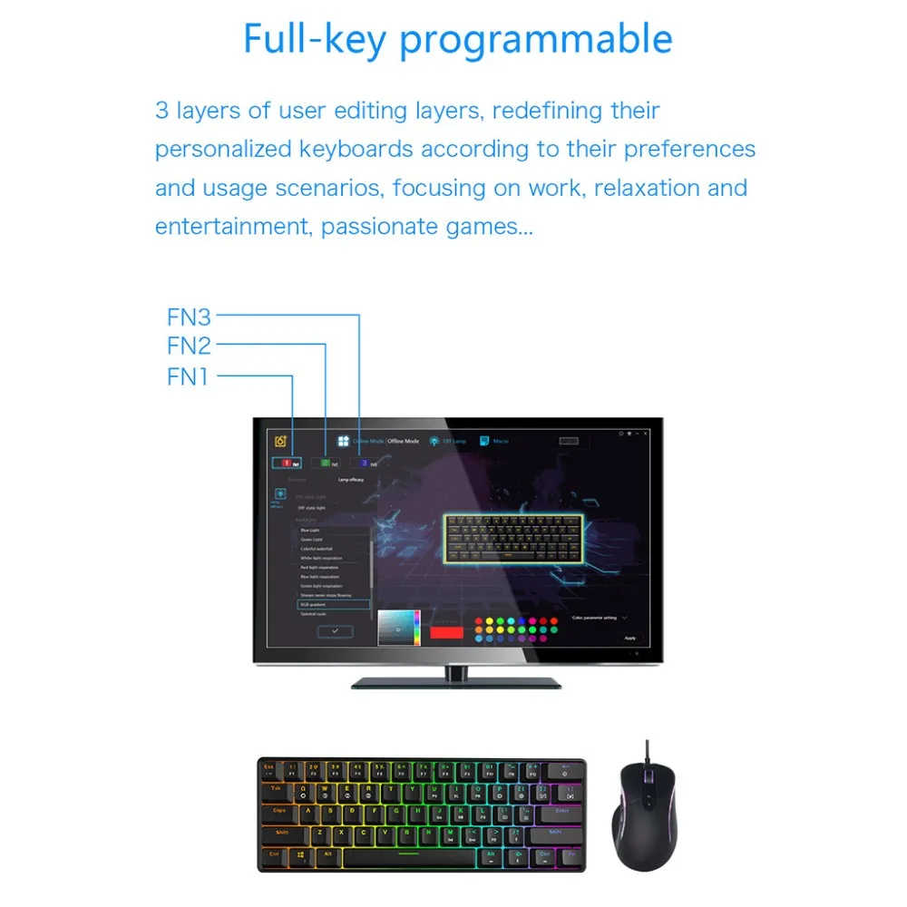 GK61 61 Key USB Wired LED Backlit Axis Gaming Mechanical Keyboard For Desktop MAY11 dropshipping