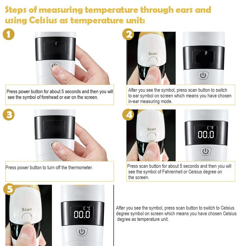 3, two measurement mode : ear mode & forehead mode