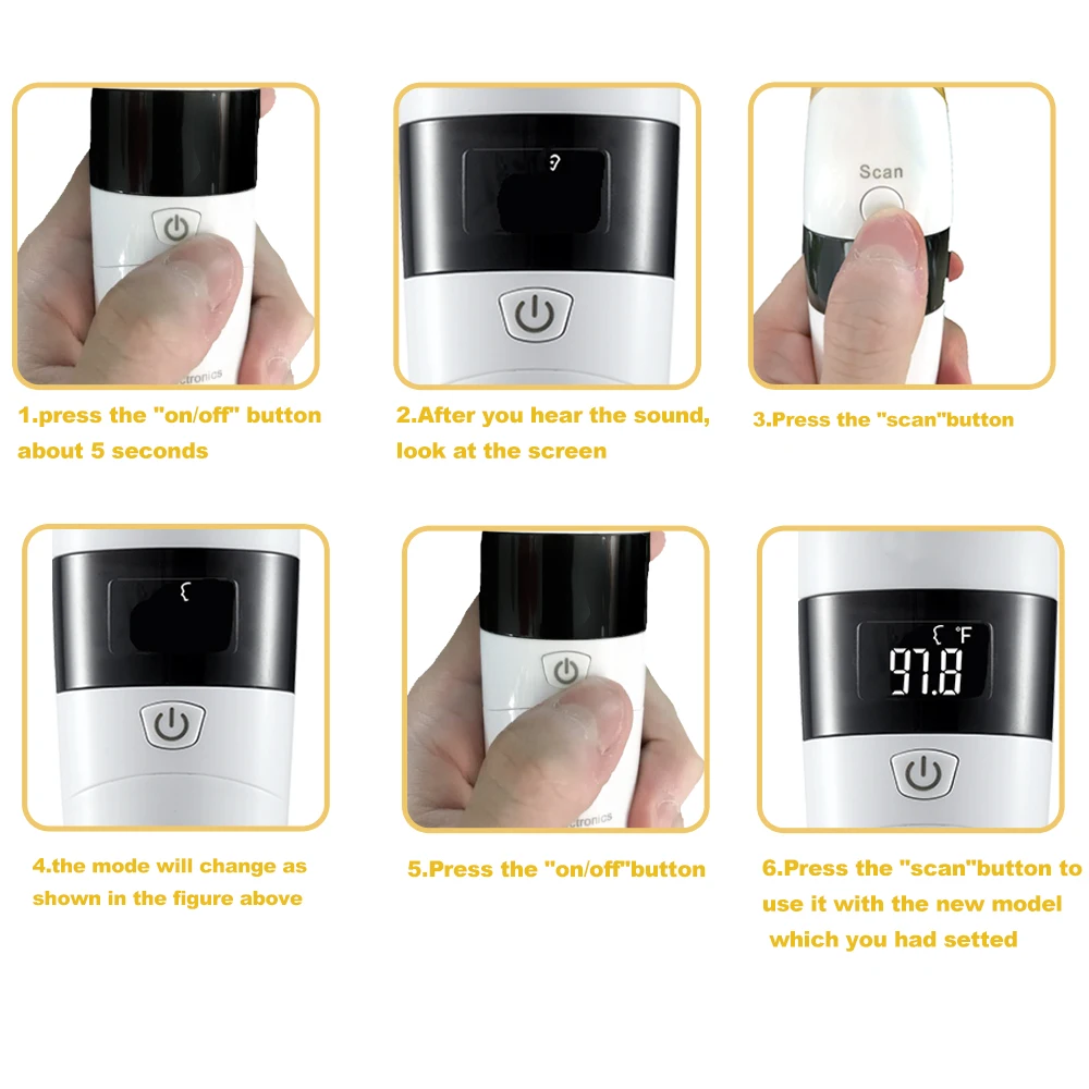 Press ” start” button for 3 second when the thermometer is power-off, until the screen is dispalyed. then press the “start” will change to °C or °F. turn on the thermometer to sart the measurment.