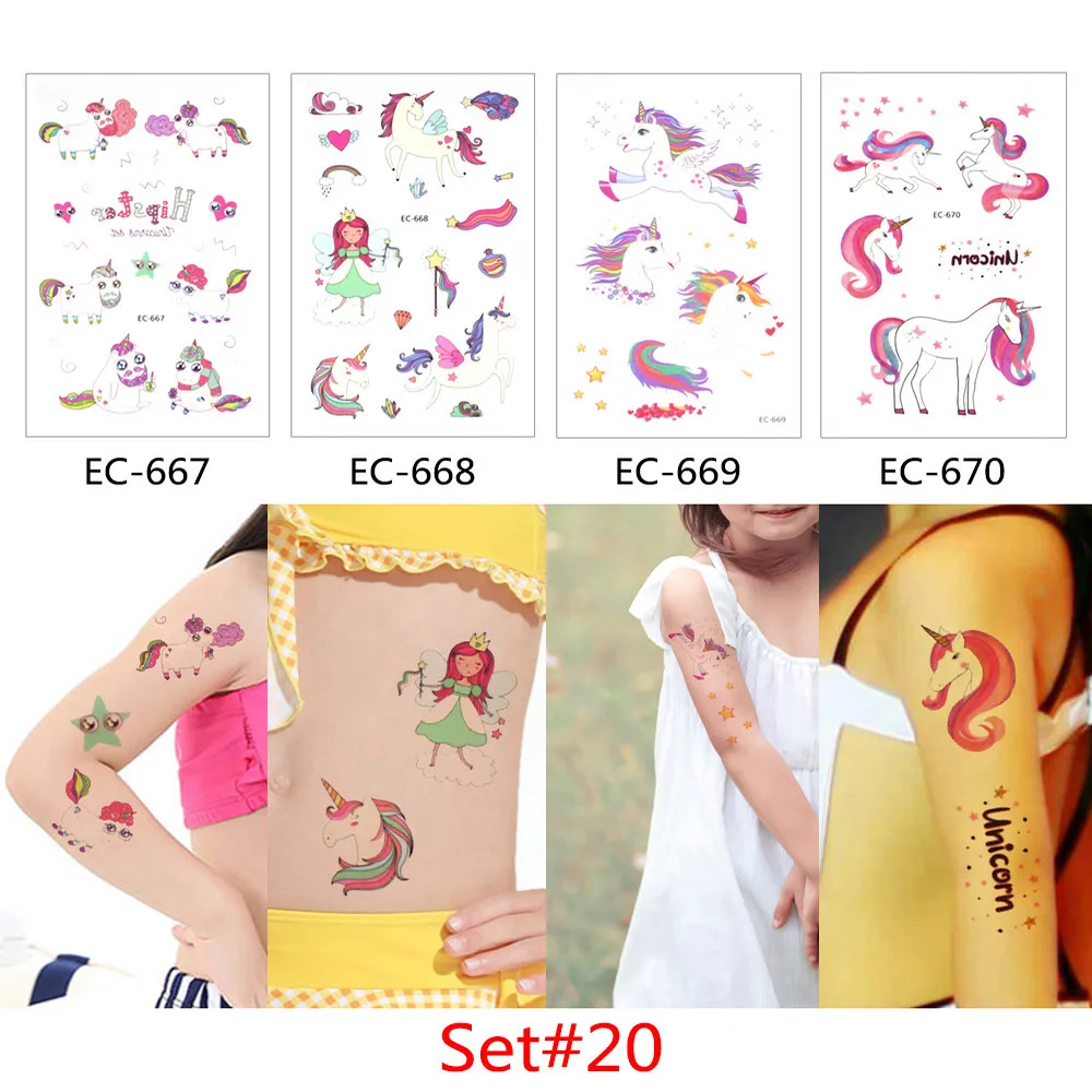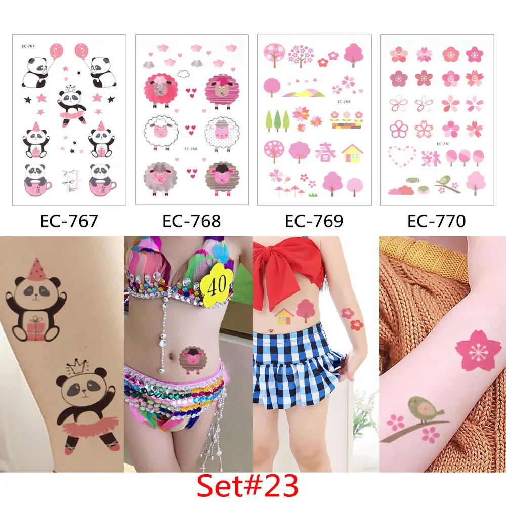 Glaryyears 4 Pieces/Set Temporary Tattoo Sticker Carton Fake Tatoo Flash Tatto Waterproof Small Body Art Children 4 Designs
