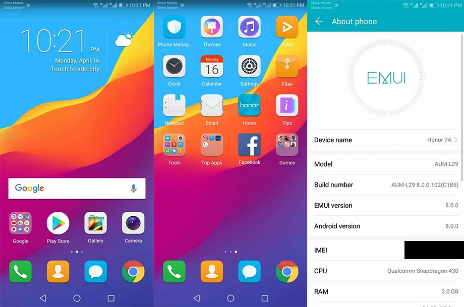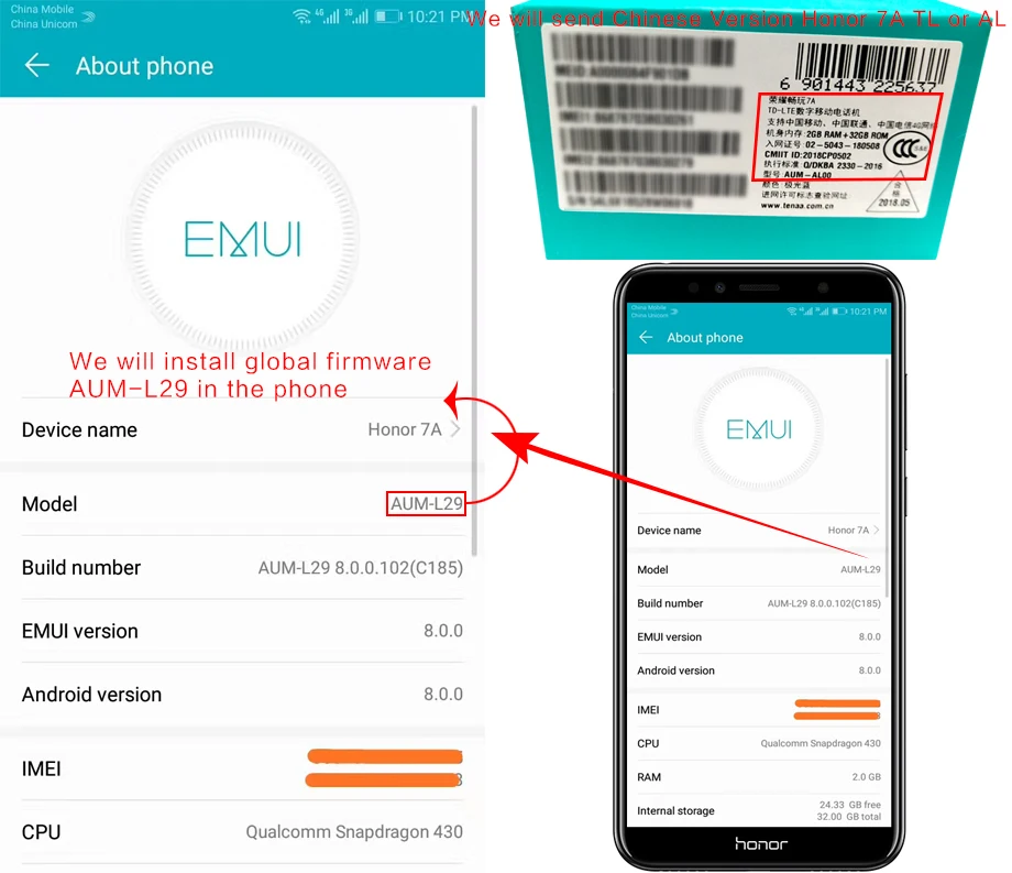 | 7. System | EMUI8.0,Android 8.0 (Global Firmware) | EMUI8.0,Android 8.0 (Global Firmware) |