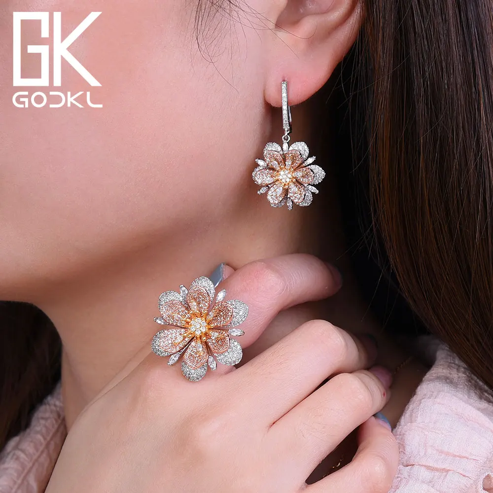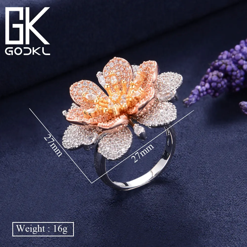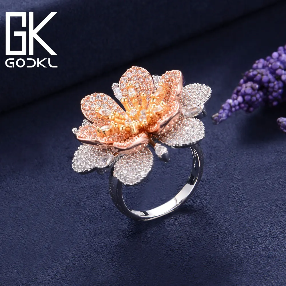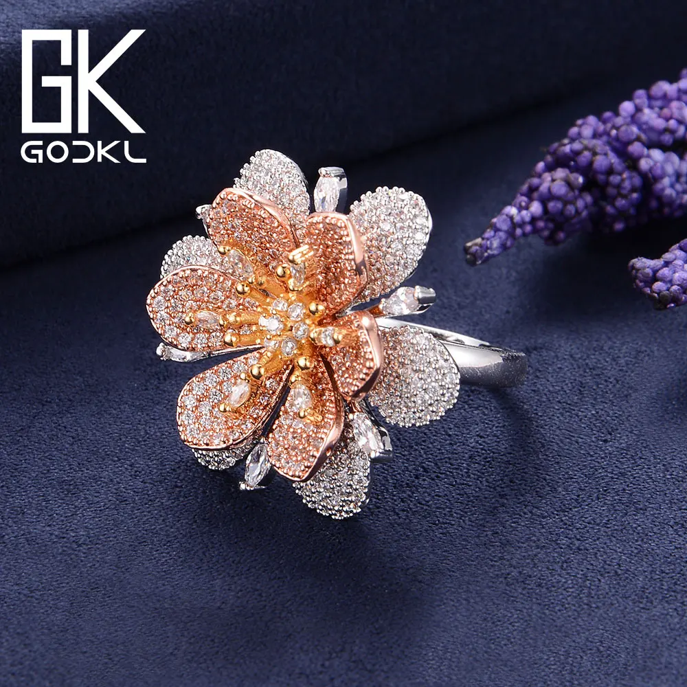 GODKI Luxury Flowers Cubic Zironia Engagement Dubai Nigerian Bridal Statement Finger Rings For Women Wedding Trendy Jewelry 2018