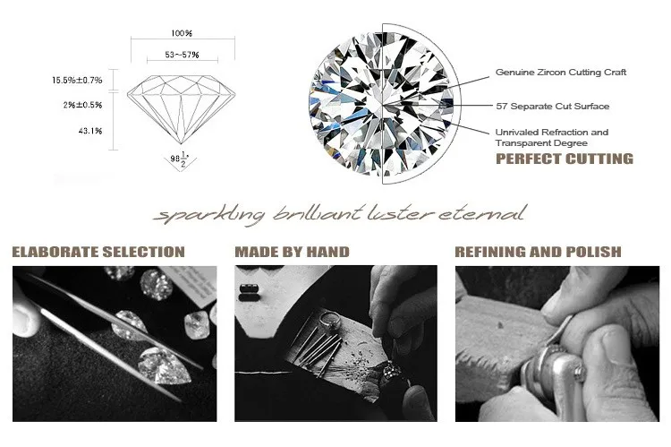 Material: 100% AAA Cubic Zirconia Diamond