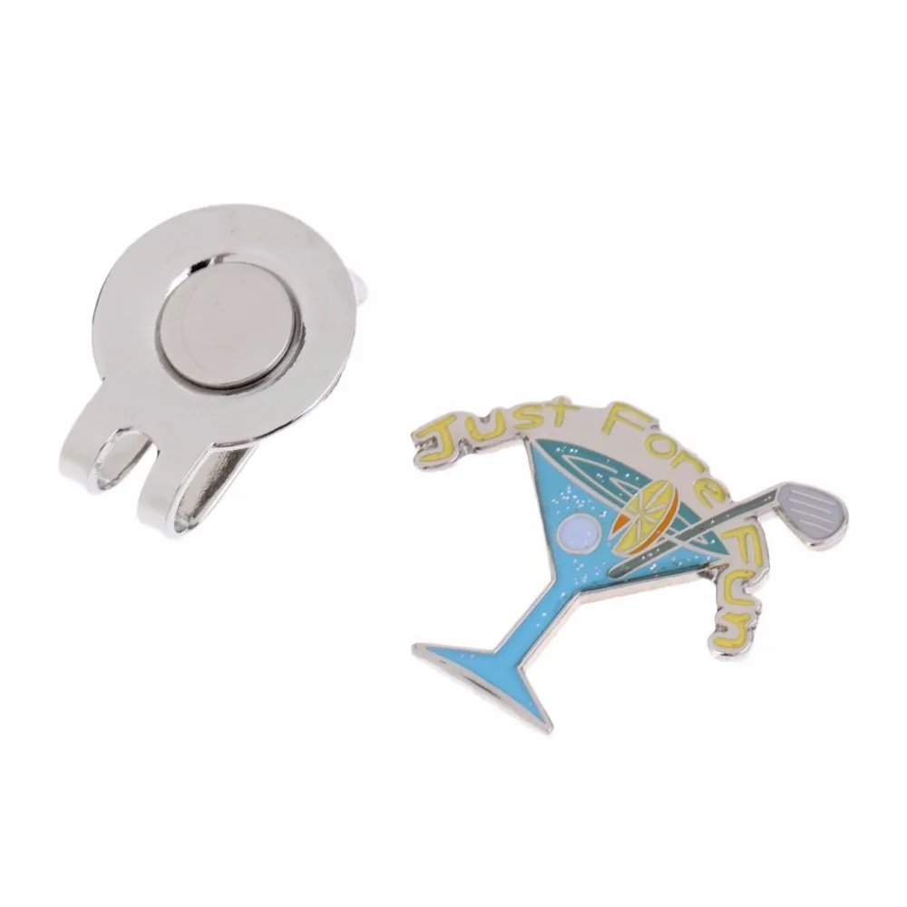 GOG 1pcs Golf Ball Markers with Magnetic Hat Clip Assorted Patterns Lightweight Strong Alloy 1 blue Wine glass