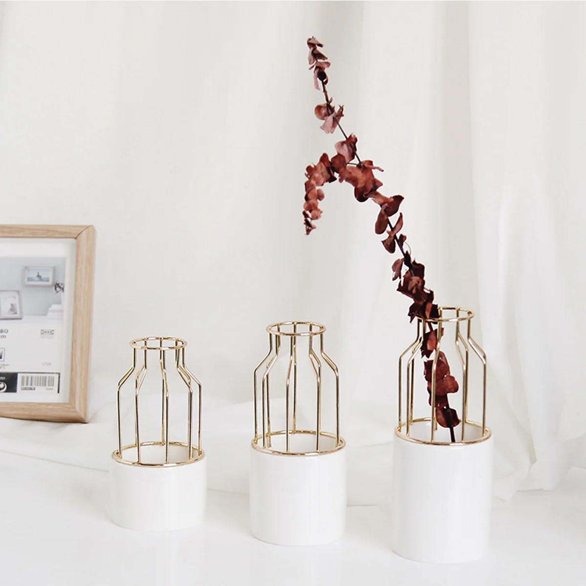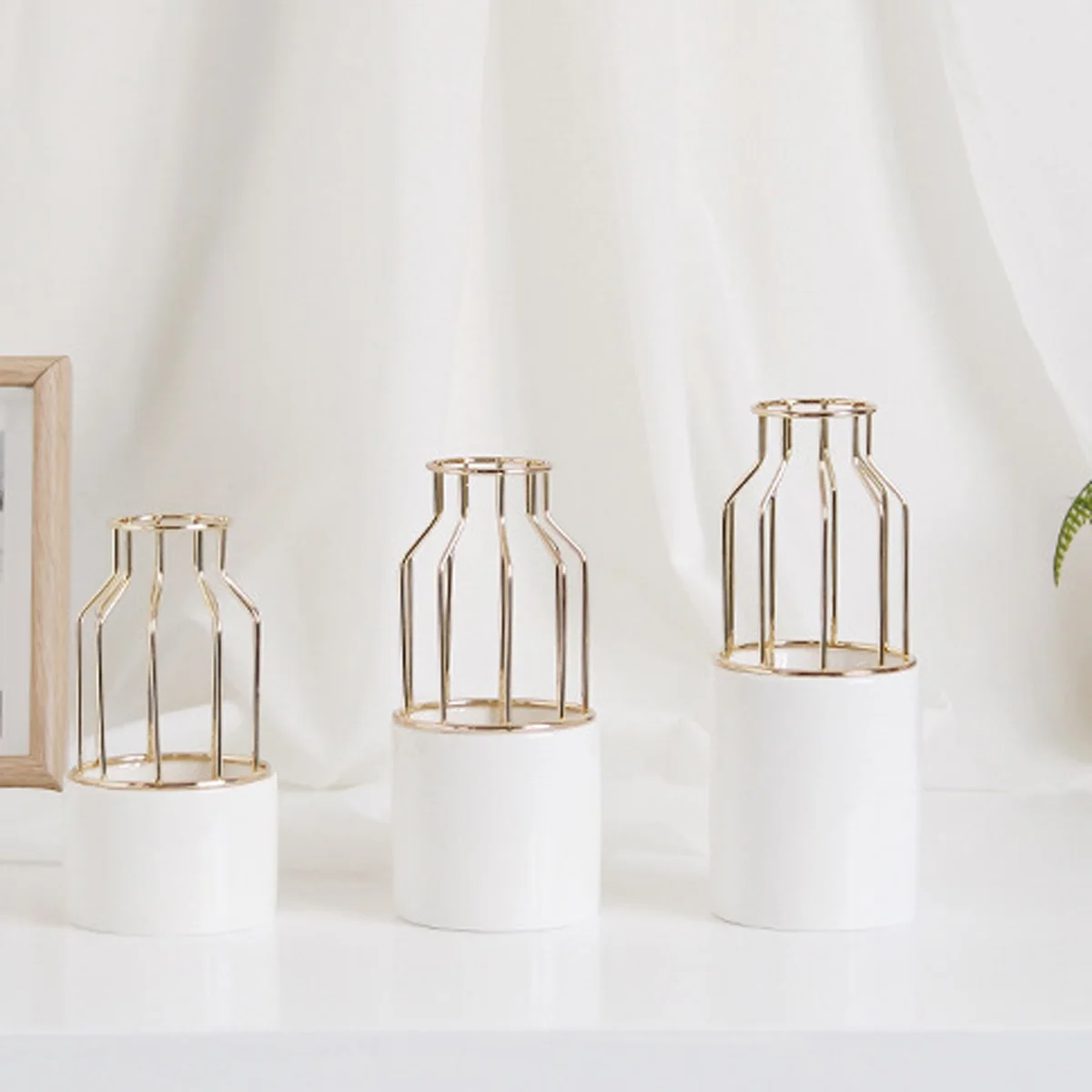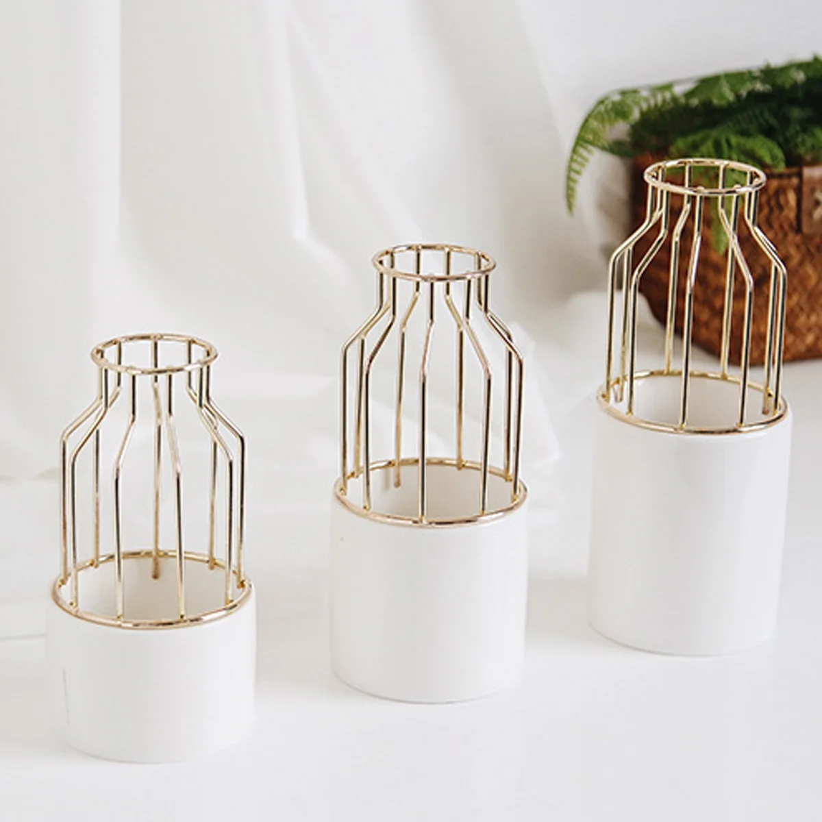 Gold Color Ceramic Flower Pot Vase Garden Plant Succulent Flowerpot with Iron Flower Display Stand Metal Rack Home Decorative