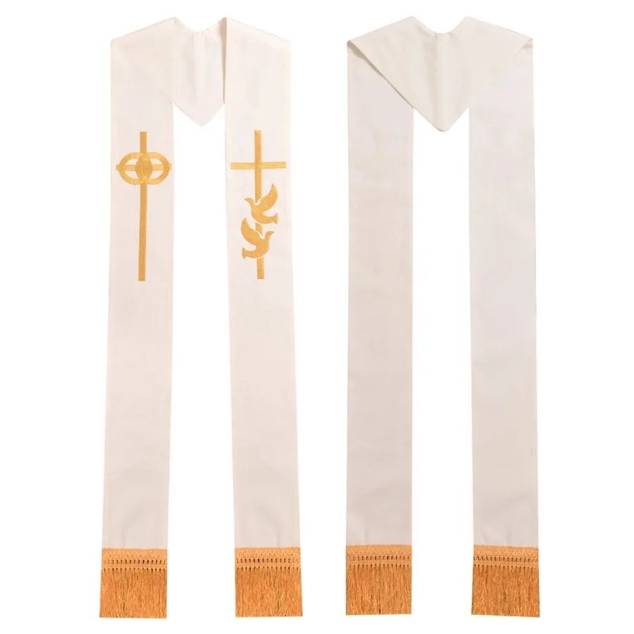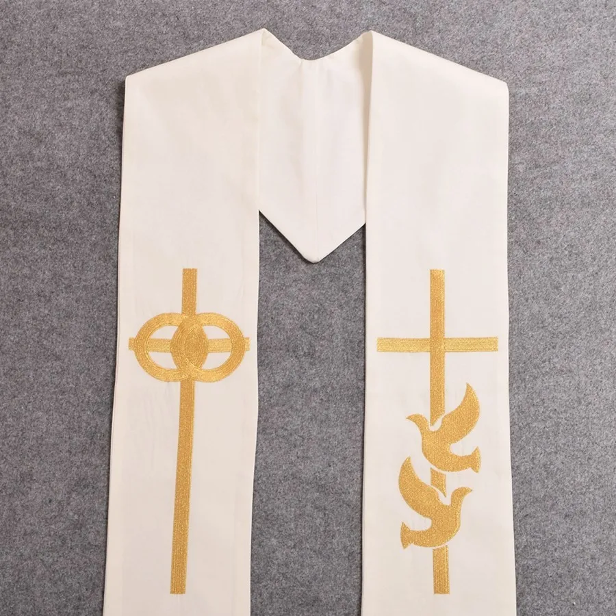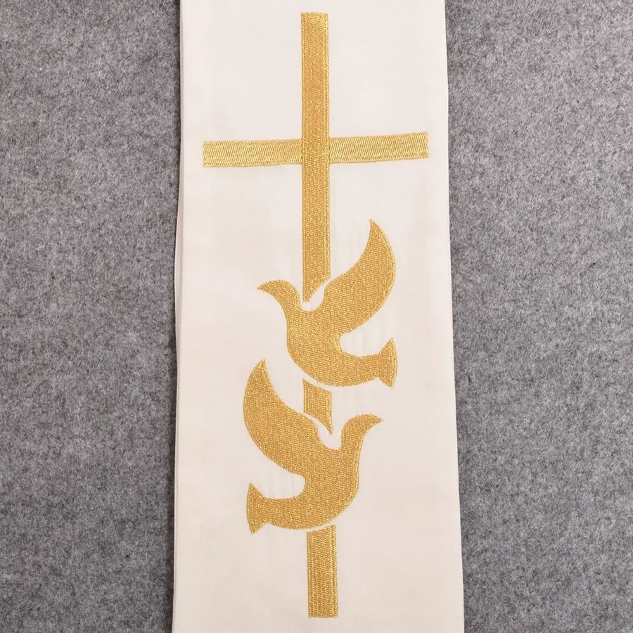 Gold Cross w Wedding Rings Rmbroidered Holy Dove Minister Clergy Stole