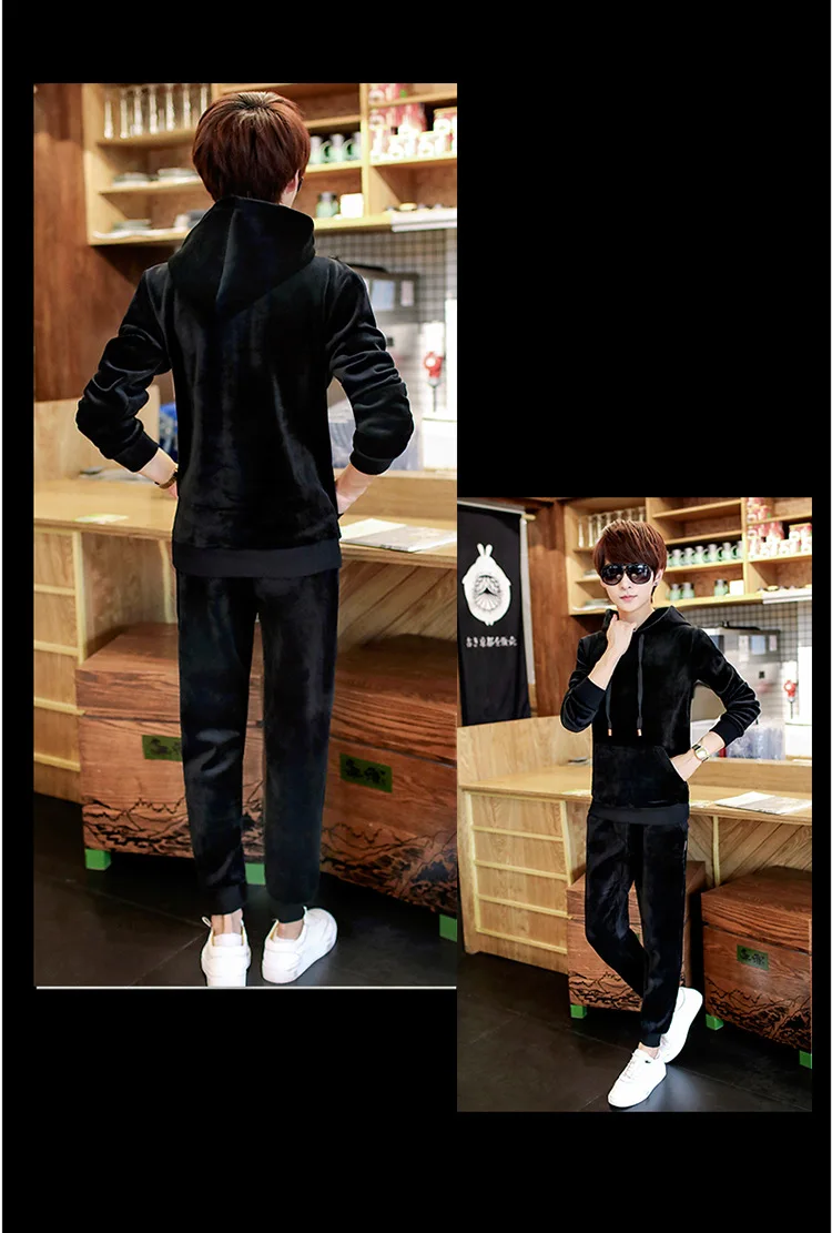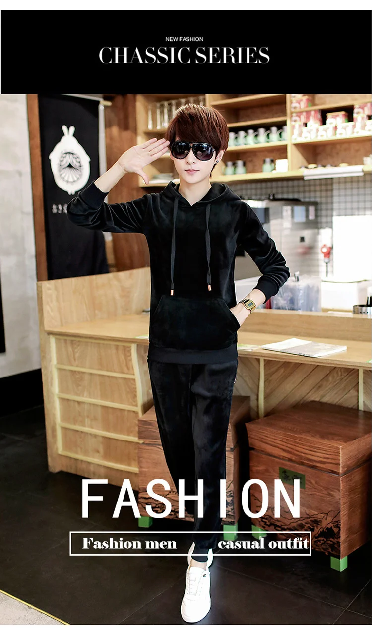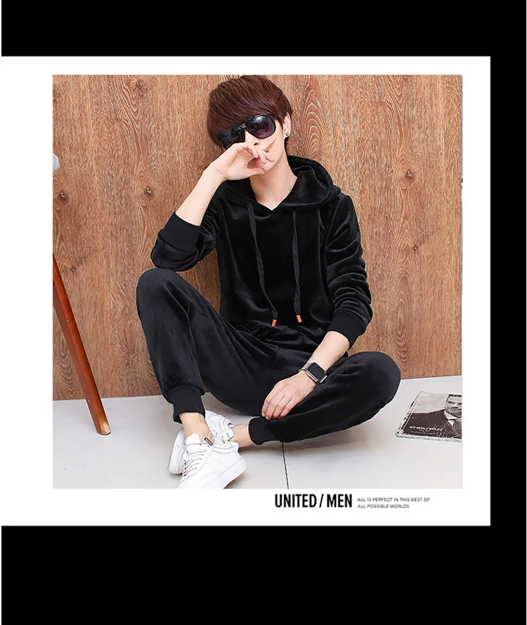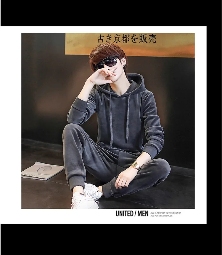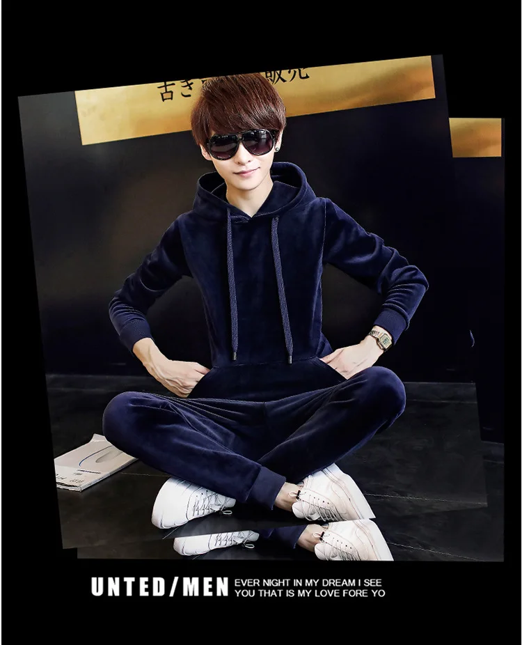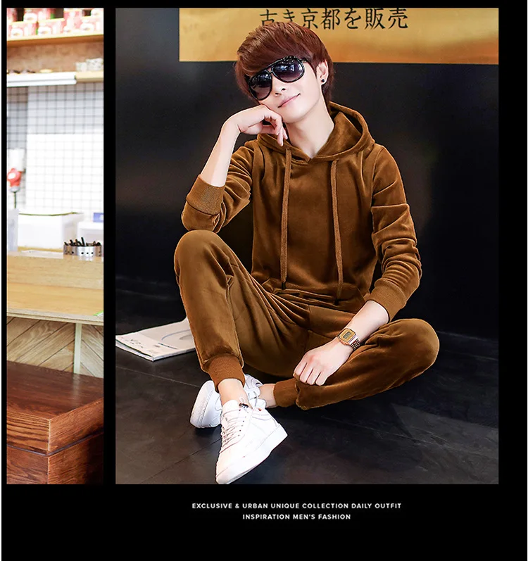 Gold Velvet Tracksuit Men 2018 Autumn Fashion Mens Track Suit Long Sleeve Hoodies Sweatshirt+Pants Casual Mens 2 Piece Set