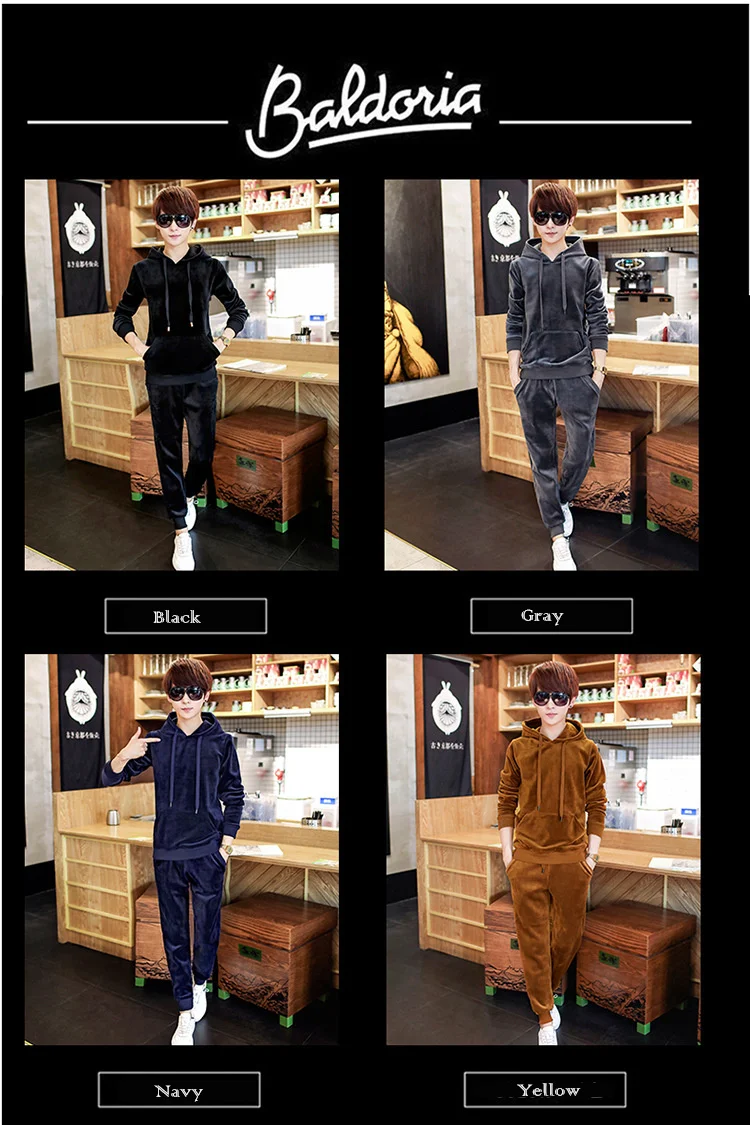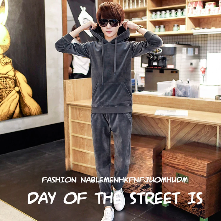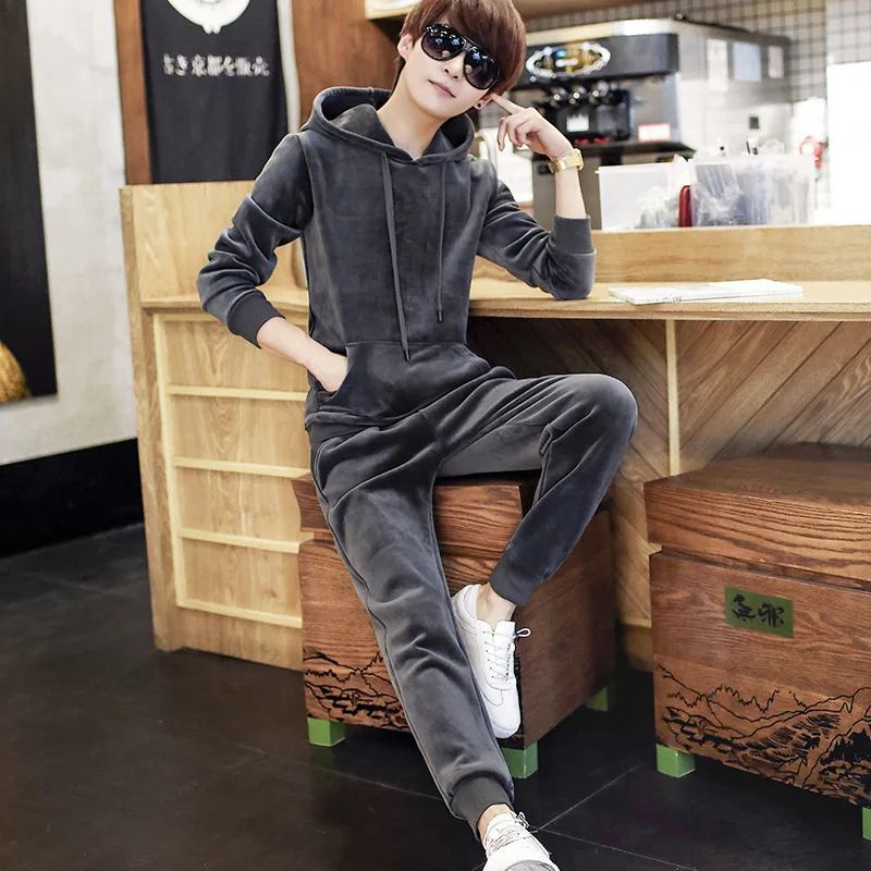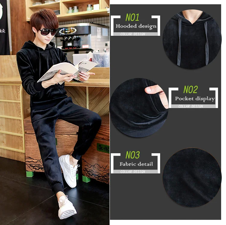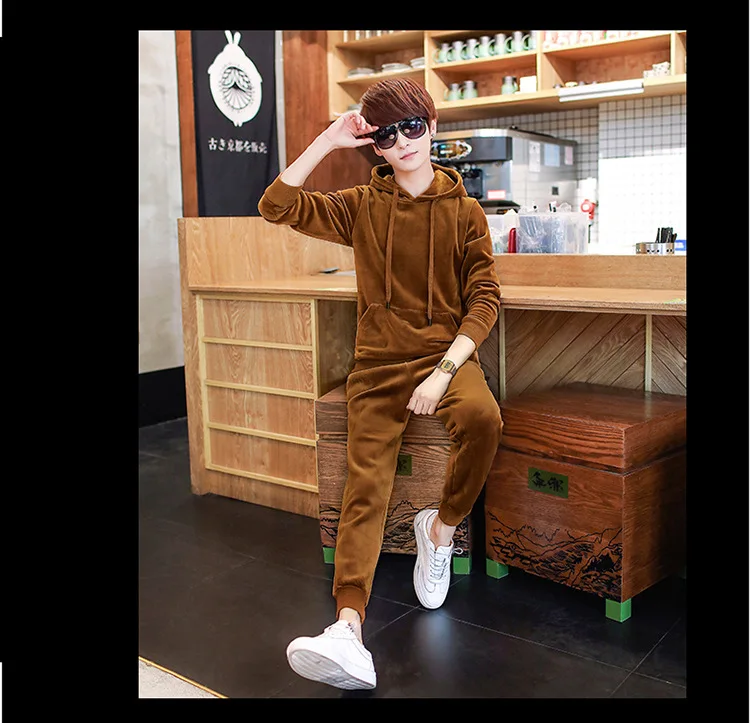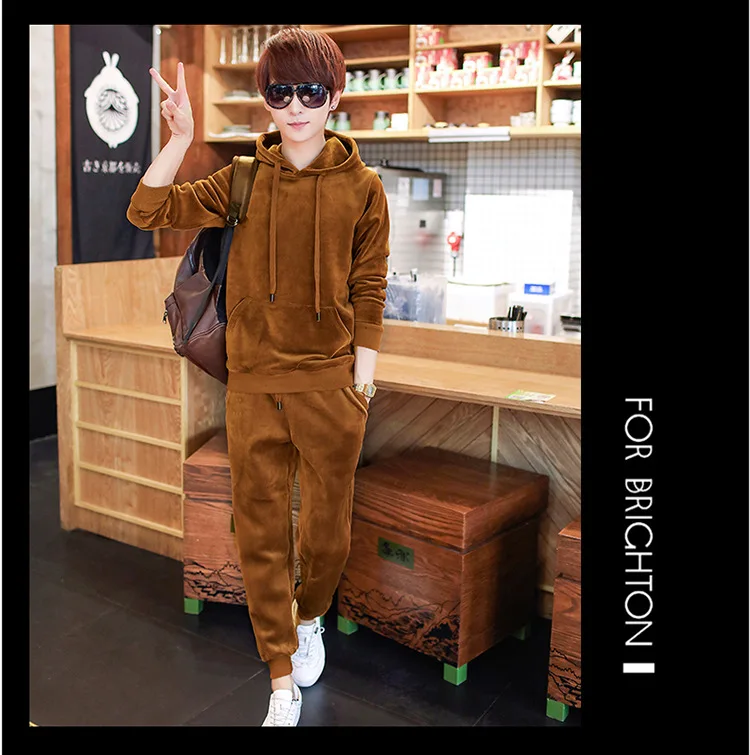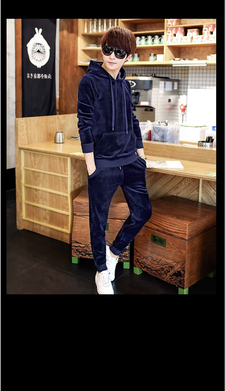 Gold Velvet Tracksuit Men 2018 Autumn Fashion Mens Track Suit Long Sleeve Hoodies Sweatshirt+Pants Casual Mens 2 Piece Set