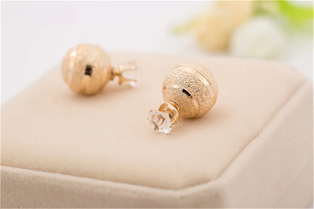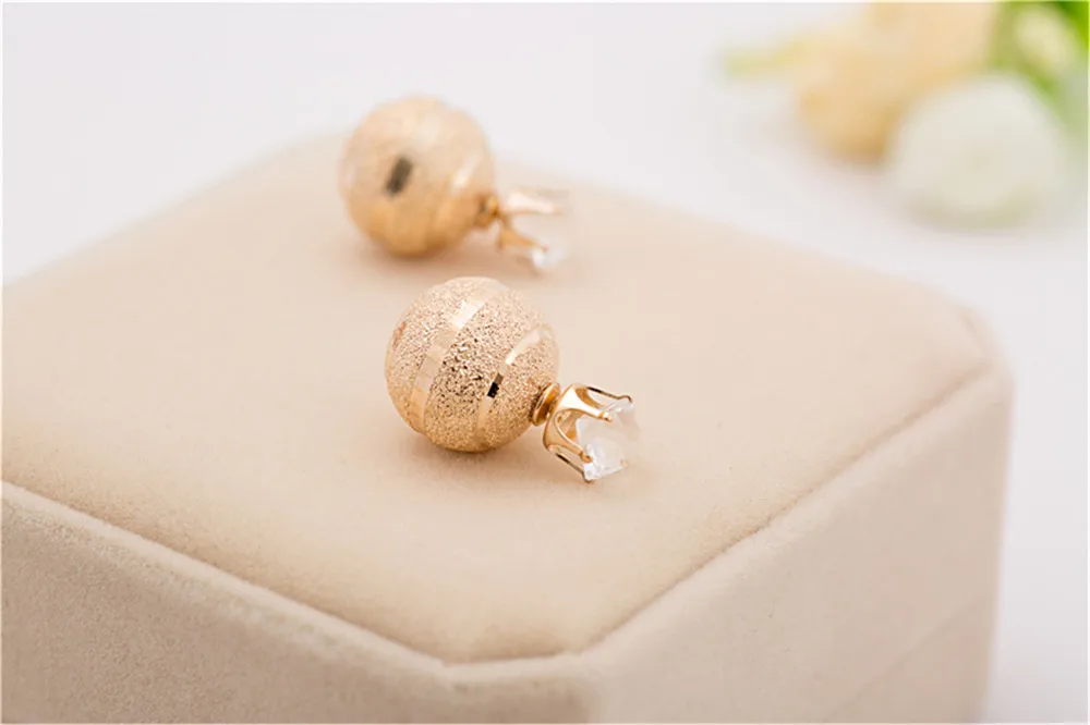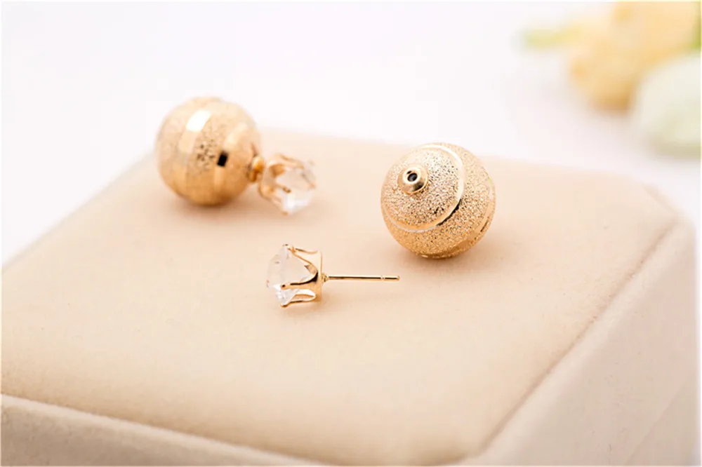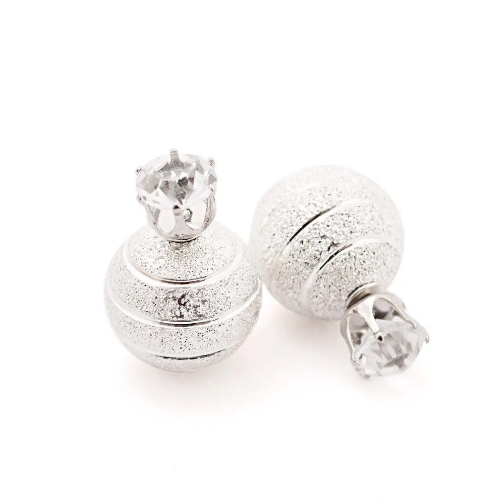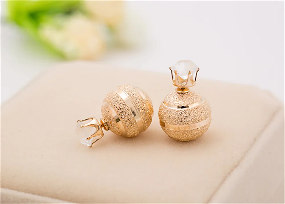 Golden Silver Plated Metal Ball Stud Earring Luxury Scrub Crystal Crown Double Sides Big Pearl Earrings For Women Party Jewelry