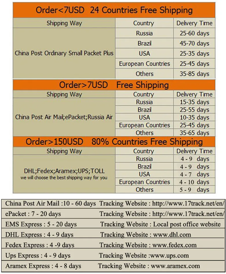 Packages from our warehouse in China will be shipped by ePacket or EMS depending on the weight and size of the product. Packages shipped from our US warehouse are shipped through USPS.