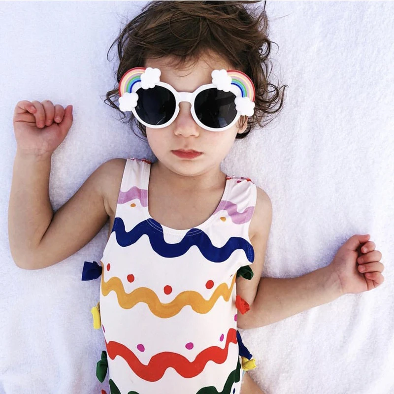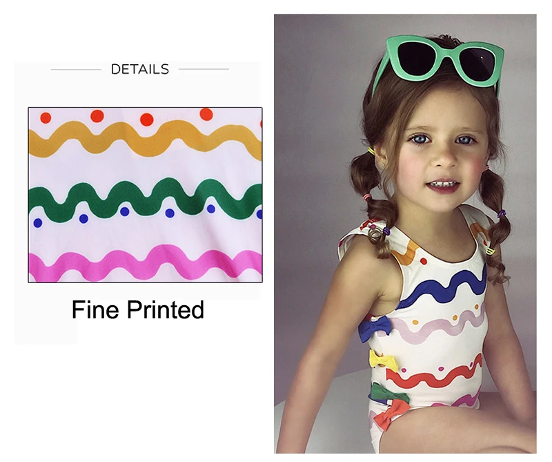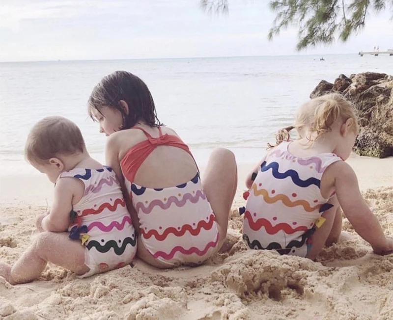 Rainbow Wave Stripe Kids Swimwear bow-tie one piece swimsuit girls baby Swim pool train bathing Suit Child 2018 mayo