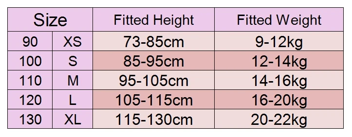 Please chose the size as kids’ height/weight firstly.